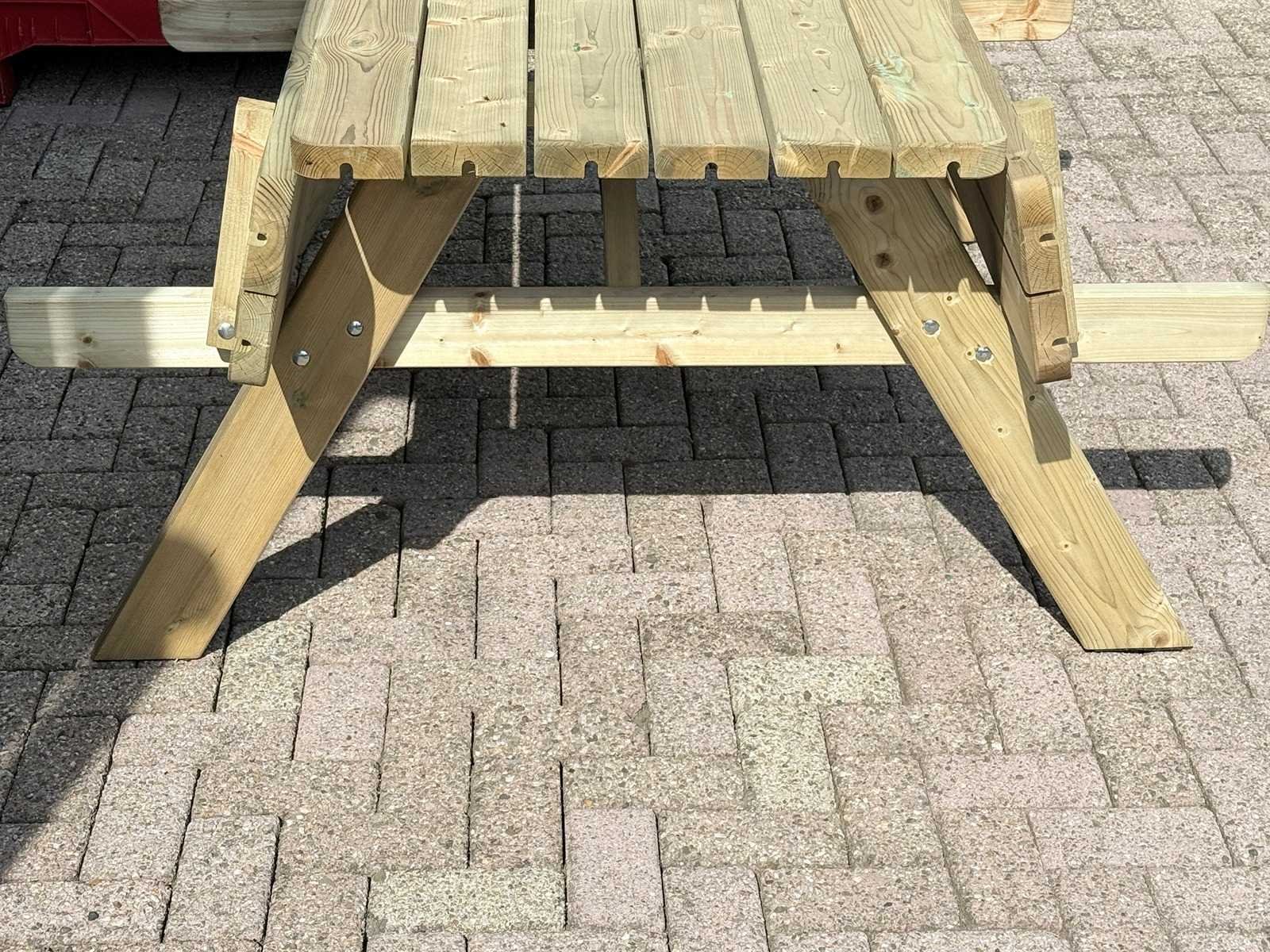 Degelijke Picknicktafel. zware kwaliteit 38mm dik hout. Geimpregneerd. Ongebruikt! Zitgedeelte is opklapbaar. Lengte ±1780mm / Hoogte ±760mm / Totale breedte ±1520mm Word als bouwpakket meegeleverd. Zie laatste foto. Lengte: 177cm Breedte: 152cm Hoogte: 76cm