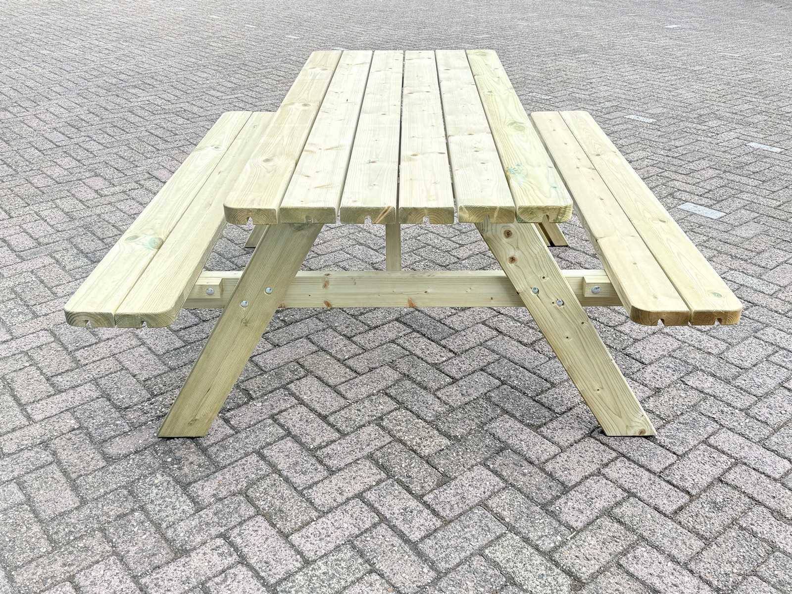 Degelijke Picknicktafel. zware kwaliteit 38mm dik hout. Geimpregneerd. Ongebruikt! Zitgedeelte is opklapbaar. Lengte ±1780mm / Hoogte ±760mm / Totale breedte ±1520mm Word als bouwpakket meegeleverd. Zie laatste foto. Lengte: 177cm Breedte: 152cm Hoogte: 76cm