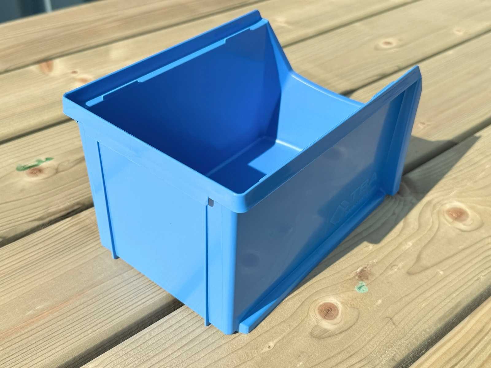 Grote partij nette ongebruikte magazijnbakken ±230x150x125mm. Gestapeld op pallets in dozen. Let op juiste vervoer om palletst zo te vervoeren. Totaal 1 partij van 680 bakken. Afmeting l: 230mm Afmeting b: 150mm Afmeting h: 125mm Kunststof: true