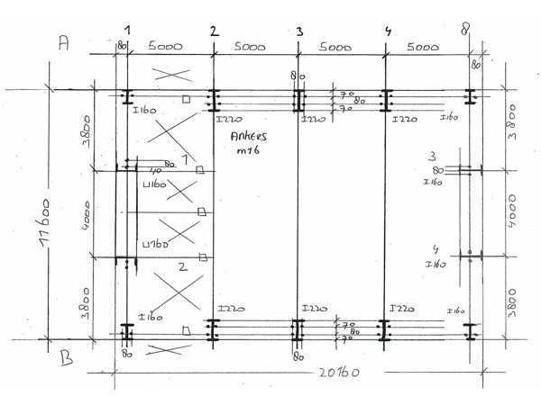 Dakhelling 20 graden Constructie bestaat uit: 3 tussenspanten: 2x kolom I220 en 2x dakligger I220 1 eindspant: 2x hoekkolom I160: 2x dakligger I140 en 2x tussenkolom I160 1 eindspant: 2x hoekkolom I160: 2x dakligger I140: 2x tussenkolom U160 en 1x deurbalk U160 à 4 meter 5 koppelbuizen 70x70x3 mm 12 windverbandstrippen plat 50x6 mm met spanner M16 Verzinkt Schroeven 8.8 Inclusief NEN 1090 CE Markering Certificaat Kavel wordt met een heftruck gratis geladen Materiaal: staal verzinkt Bouwjaar: 2026 Goot hoogte: 4300.00mm Nok hoogte: 6411.00mm Totale afmeting L: 20000mm Totale afmeting Breedte: 11600mm