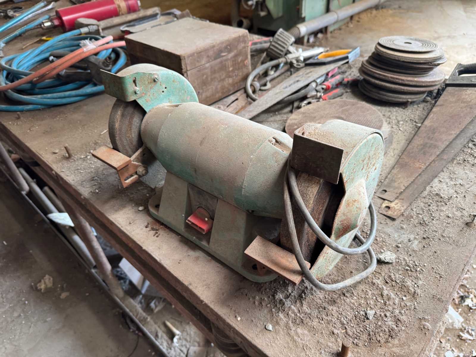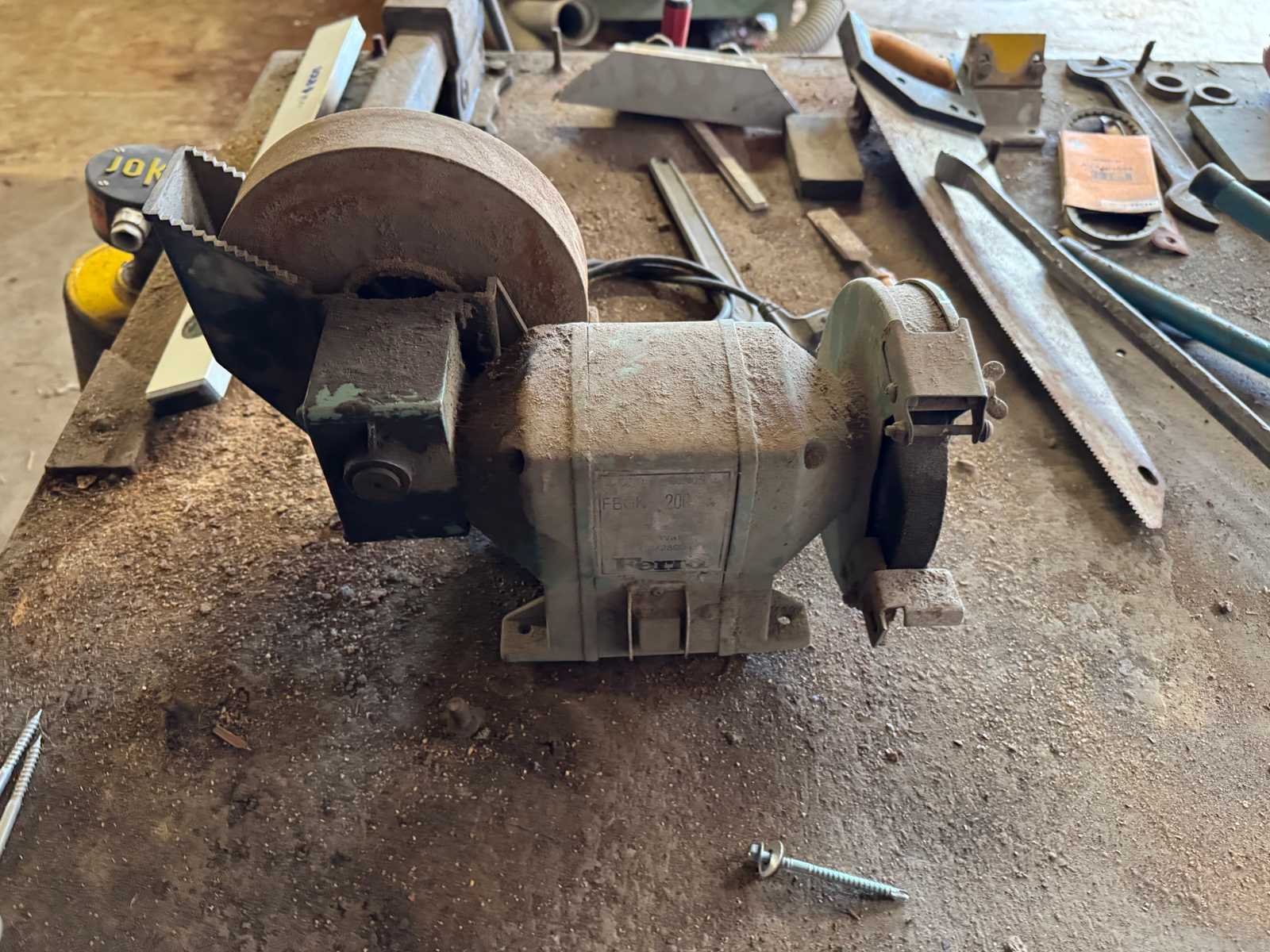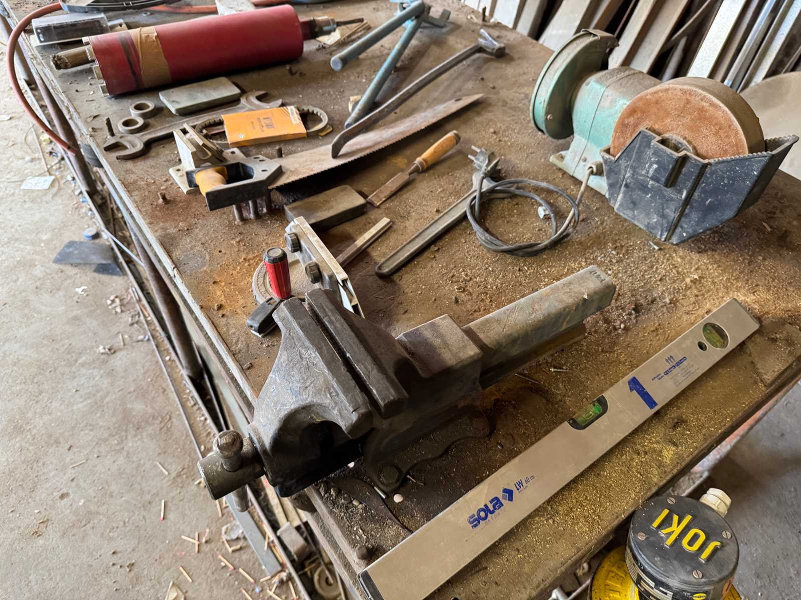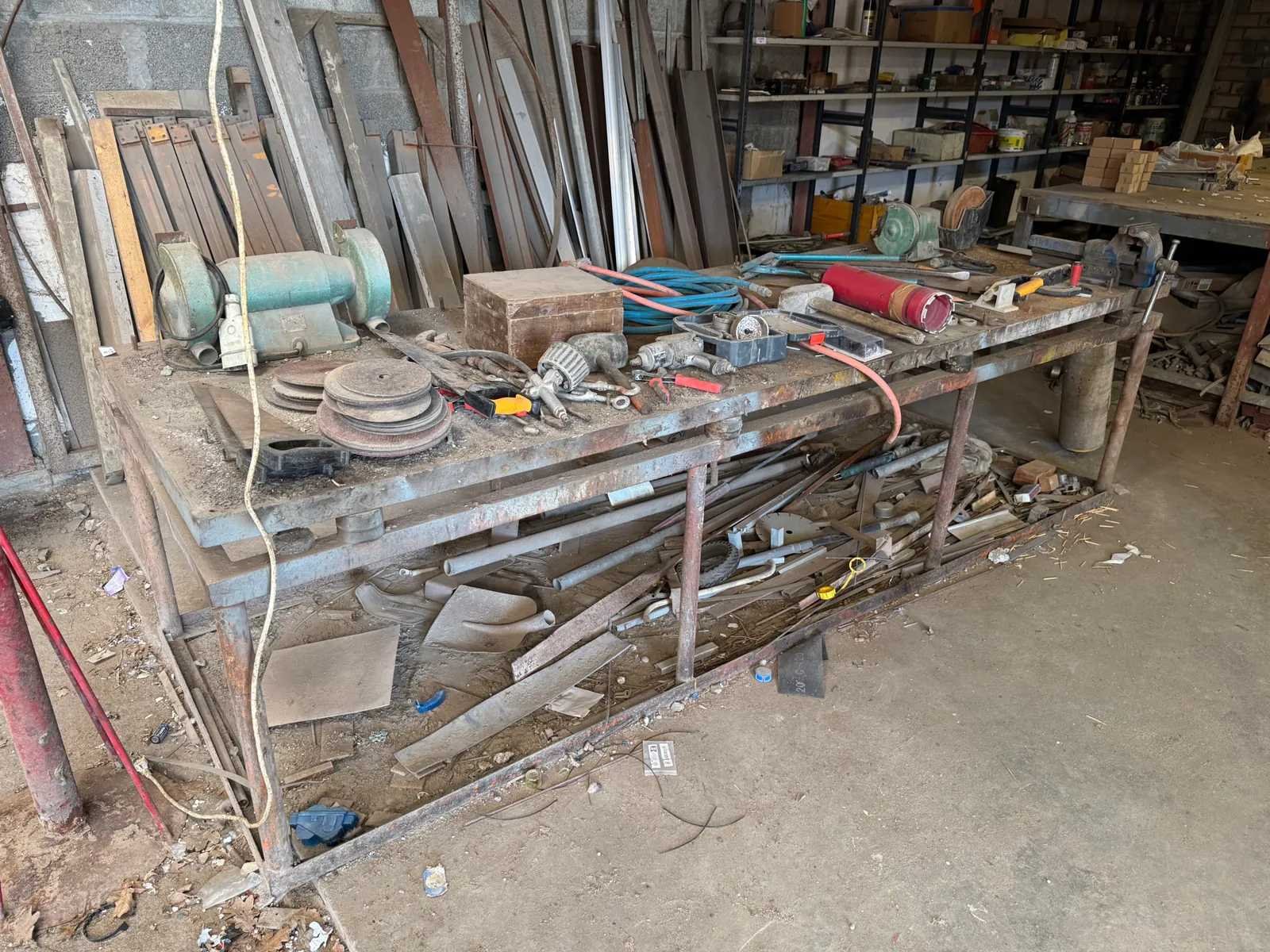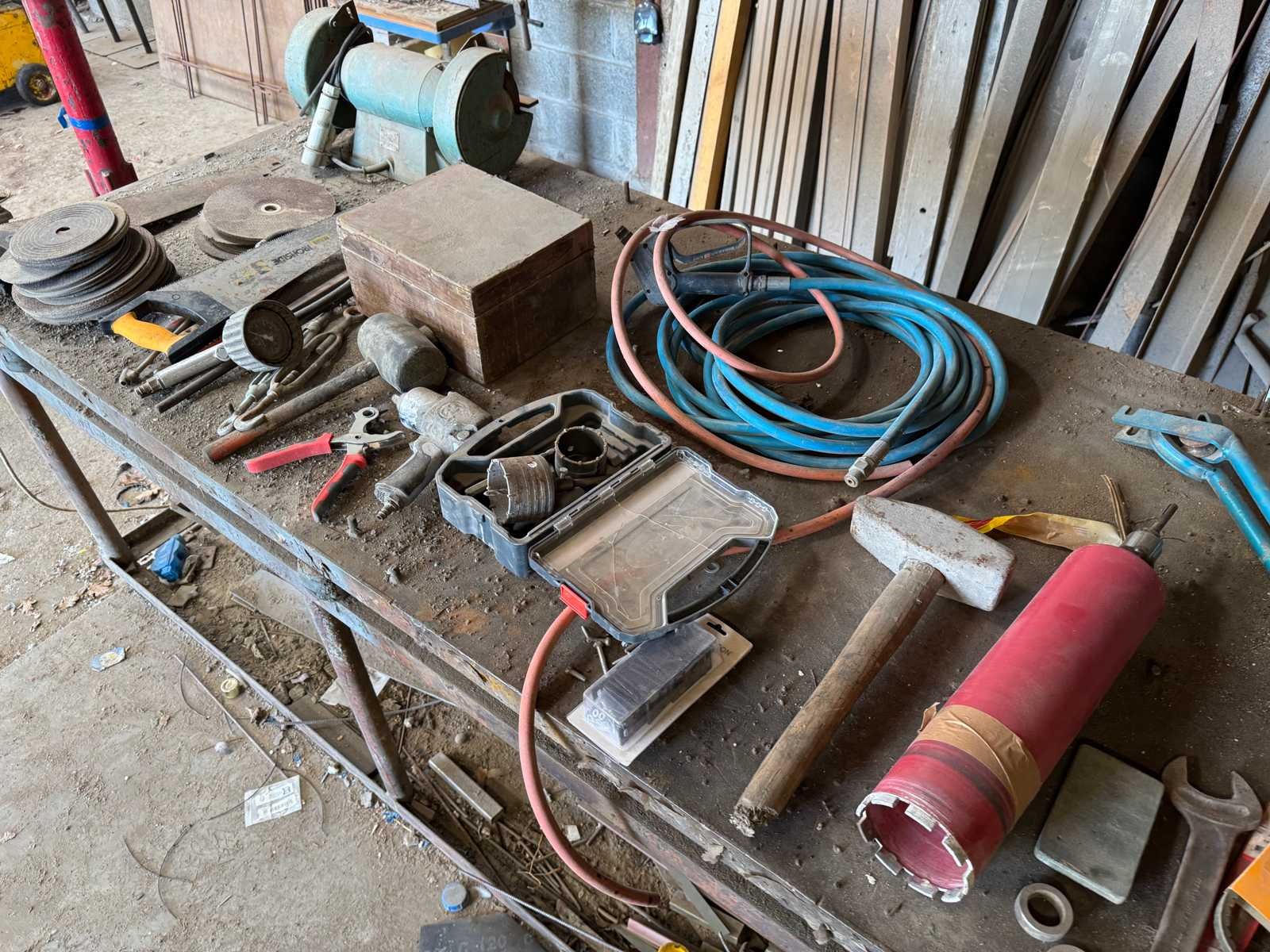 Circa 300x100x80 cm. Inclusief het erop liggende gereedschap.