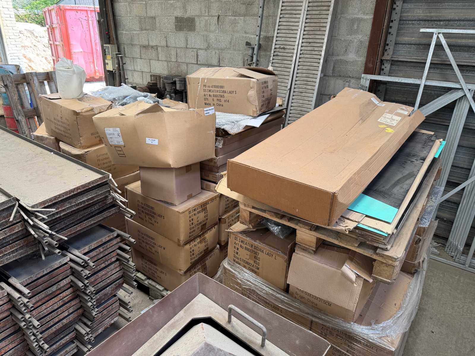 Krijtborden, kleding, stressballen. 3 pallets met diverse dozen. Merk: Pallets bier reclame artikelen