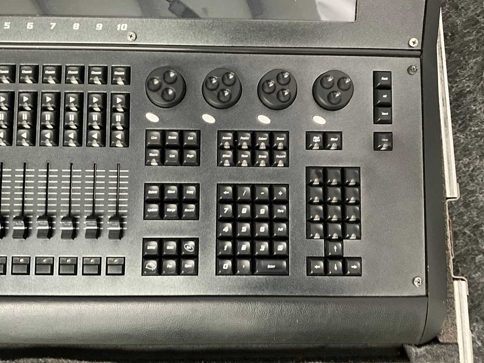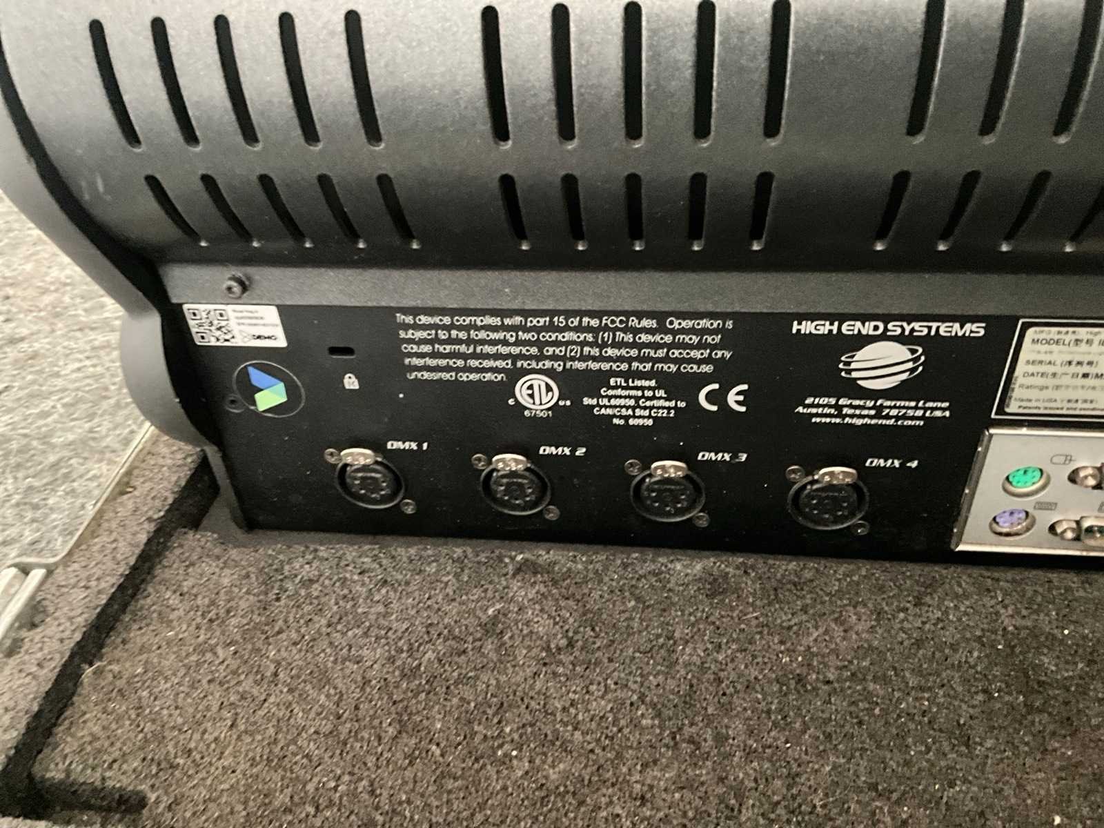 4x DMX uitgang, 2x netwerk aansluiting, 5x USB Merk: Highend Type: Roadhog Aantal kanalen: 4096 Met flightcase: true Aansluiting: 230V Totale afmeting L: 701mm Totale afmeting Breedte: 678mm Totale afmeting Hoogte: 206mm Eigen gewicht: 17.5kg