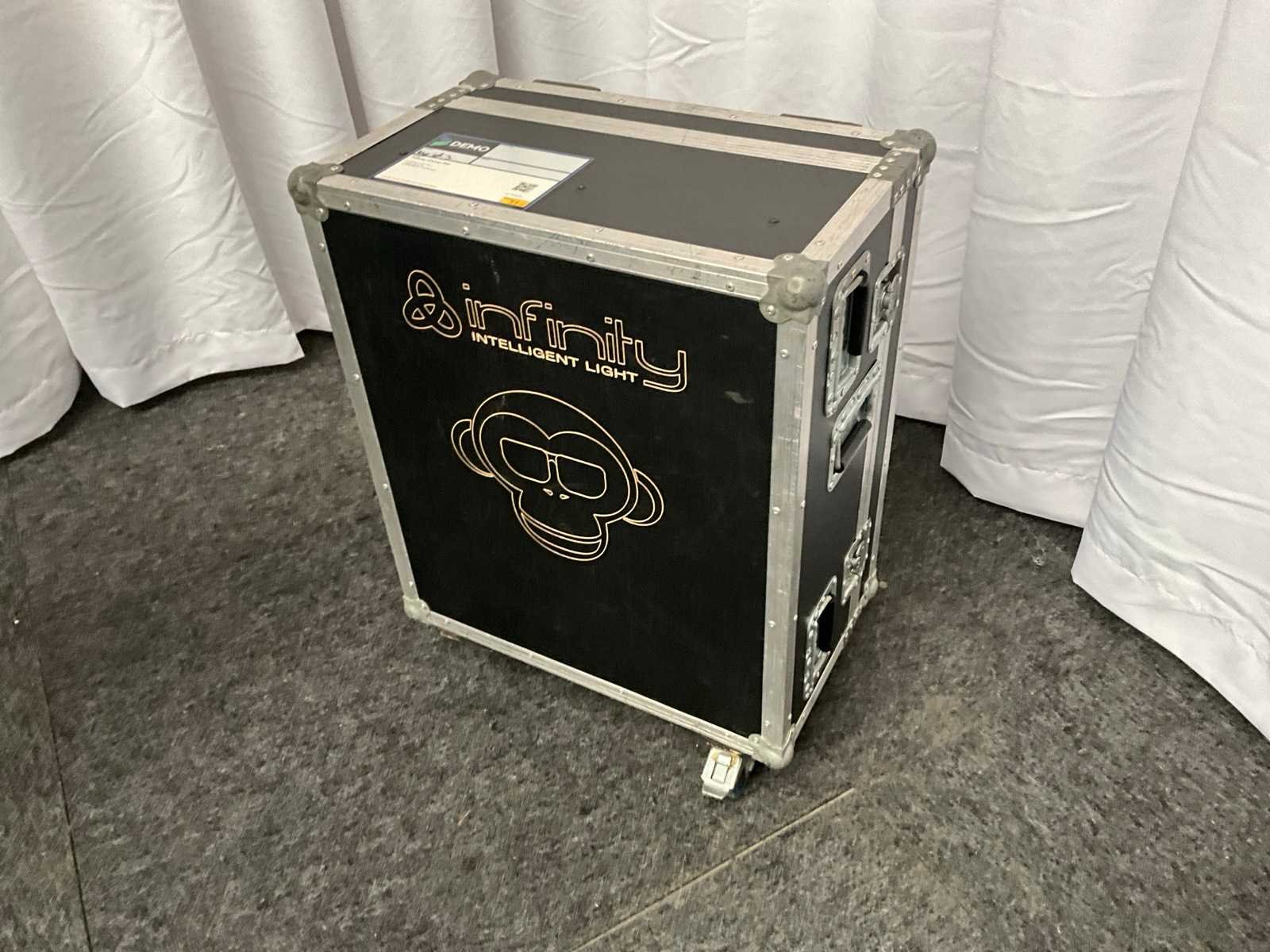 4x DMX aansluiting, netwerk aansluiting, USB, HDMI, MIDI aansluitingen, In tourcase Merk: Infinity Type: Chimp 300 Aantal kanalen: 2048 Met flightcase: true Aansluiting: 240V Totale afmeting L: 647mm Totale afmeting Breedte: 575mm Totale afmeting Hoogte: 279mm Eigen gewicht: 18kg