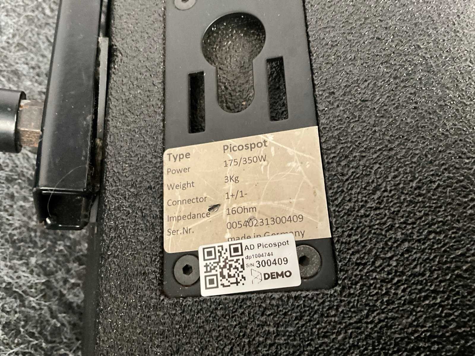 Met klem, Merk: AD Model: Picospot Impedantie: 16O Wattage: 175W Gewicht: 3000g Lengte: 15.5cm Breedte: 16.5cm Hoogte: 15.5cm