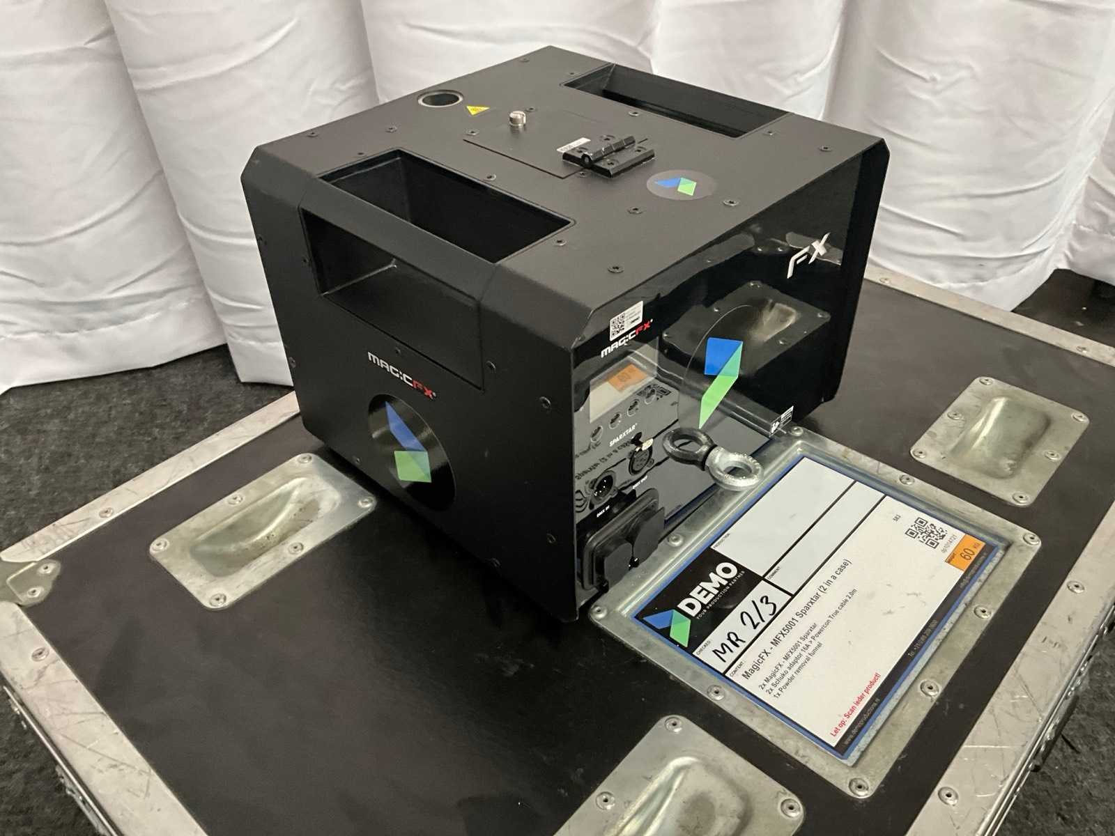 DMX 5-pin in en uit, In Flightcase. Merk: MagicFX Type: MFX5001 Met flightcase: true Aansluiting: 230V