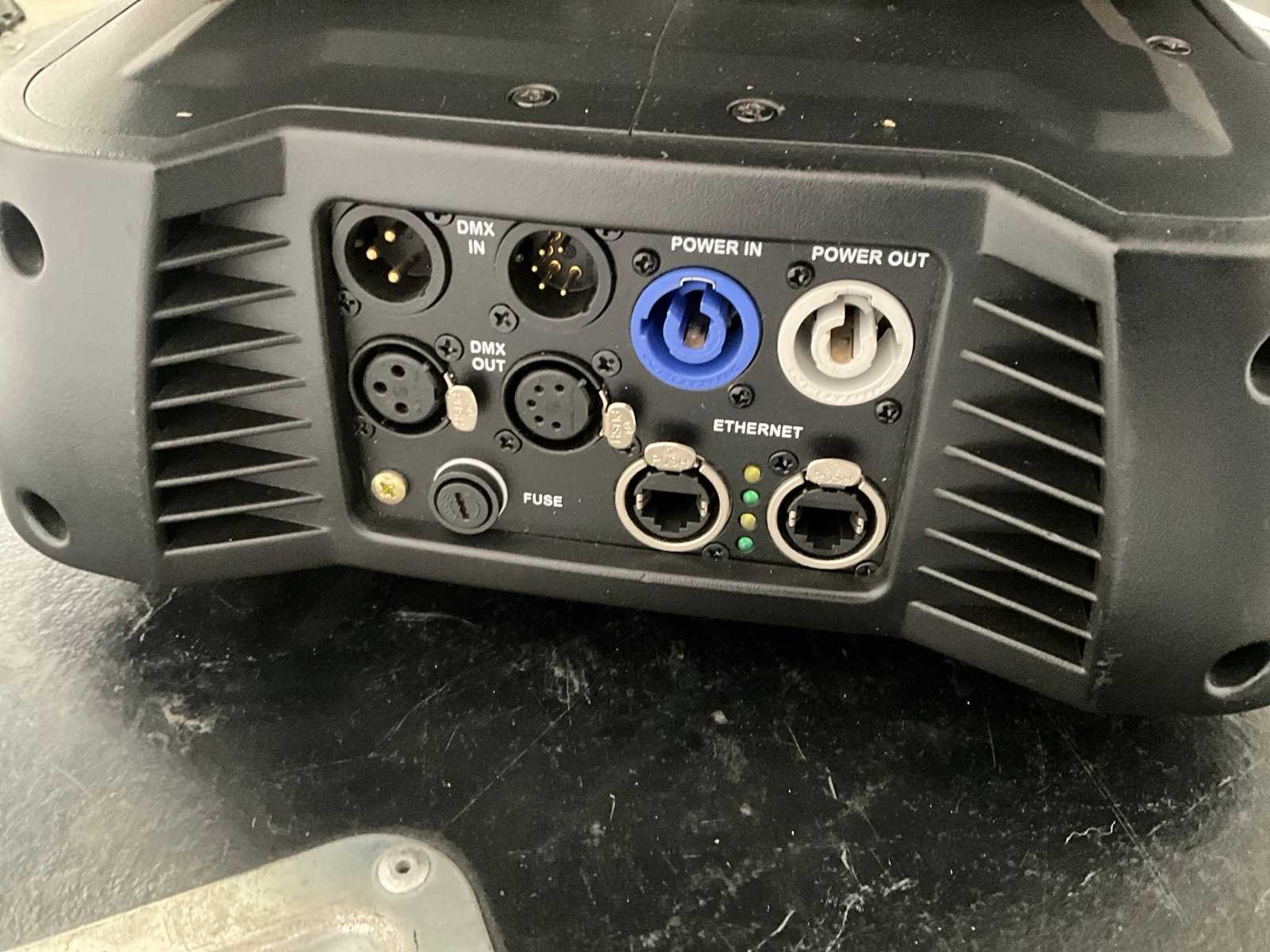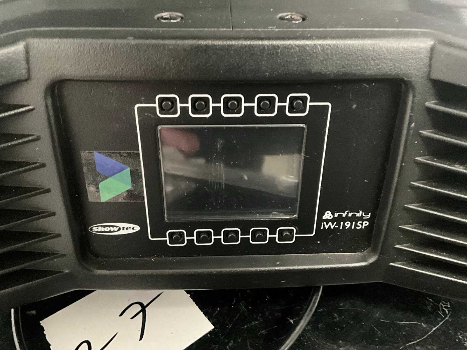 DMX in en uit ( 3 en 5 pin), power in en uit, 2x netwerk aansluiting Merk: Infinity Type: IW-1915P DMX: true Met flightcase: true Aansluiting: 230V Eigen gewicht: 14.4kg