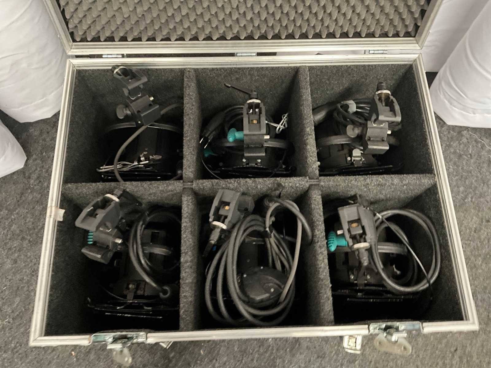 Inclusief superclamp Fresnel, 650 W, 6 stuks in flightcase Merk: Strand Type: Bambino Aansluiting: 230V Eigen gewicht: 2.7kg