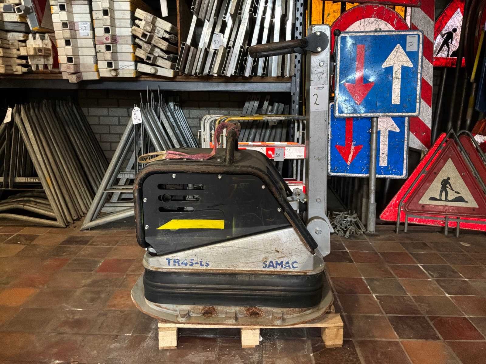 Merk: Samac Type: TR45-DE Bouwjaar: 2020 Serienummer: 451915152 Bedrijfsgewicht: 360kg Grondplaat afm. l: 800mm Grondplaat afm. b: 600mm Merk motor: Hatz Motorvermogen (kW): 5.6kW Brandstof: Diesel Eigen gewicht: 360kg Totale afmeting L: 950mm Totale afmeting Breedte: 600mm Totale afmeting Hoogte: 125mm