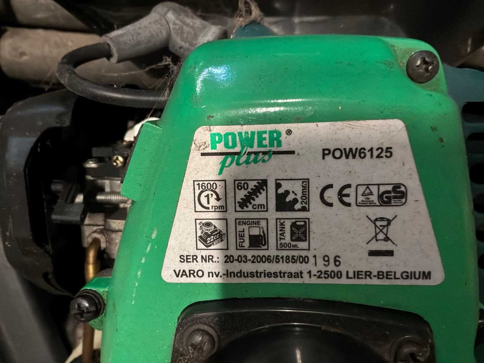 Voorzien van benzinemotor Merk: Power plus Type: POW6125 Bouwjaar: 2006 Serienummer: 20032006518500 Lengte: 650mm Brandstofmotor aangedreven: true Brandstof: Benzine Aansluiting: 230V Totale afmeting L: 1050mm Totale afmeting Breedte: 250mm Totale afmeting Hoogte: 250mm