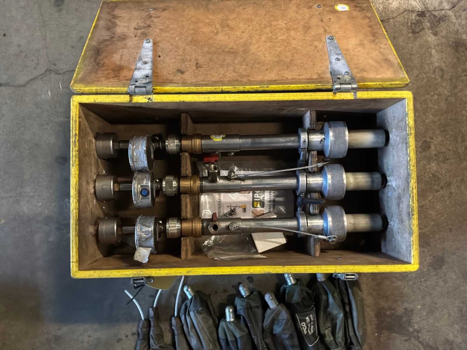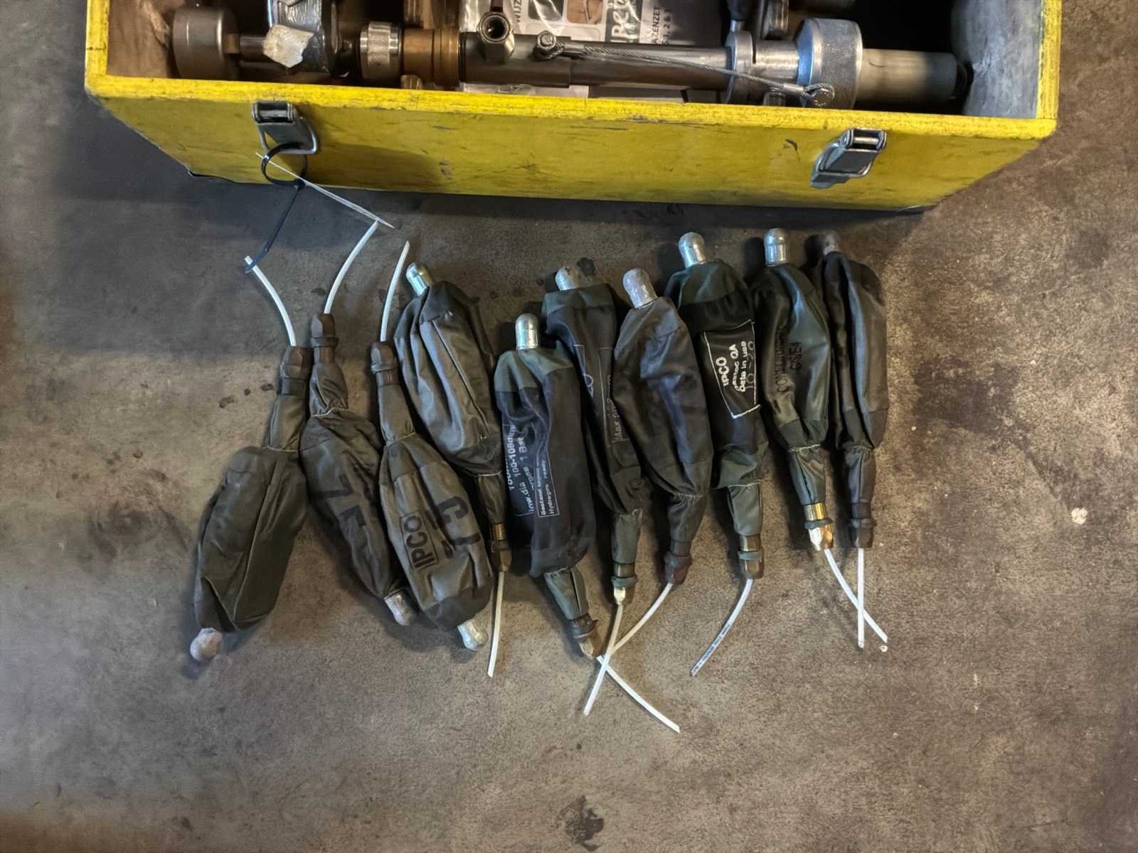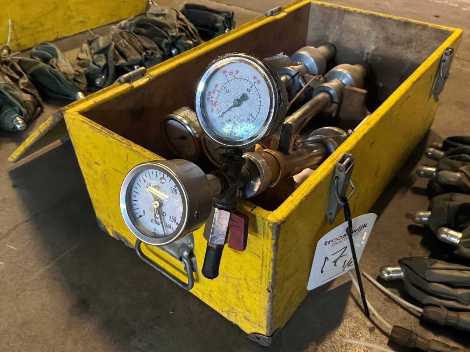 Bestaande uit 2x koffers. 6x drukmeterstations 10x kleine blazen (50/125) 9x grote blazen(150/200) Merk: IPCOSAFE Type: 50/125 en 150/200
