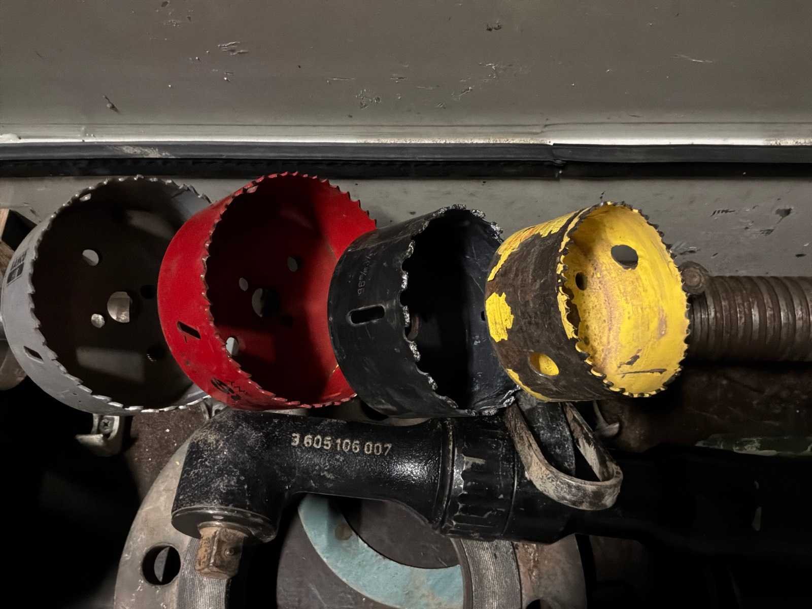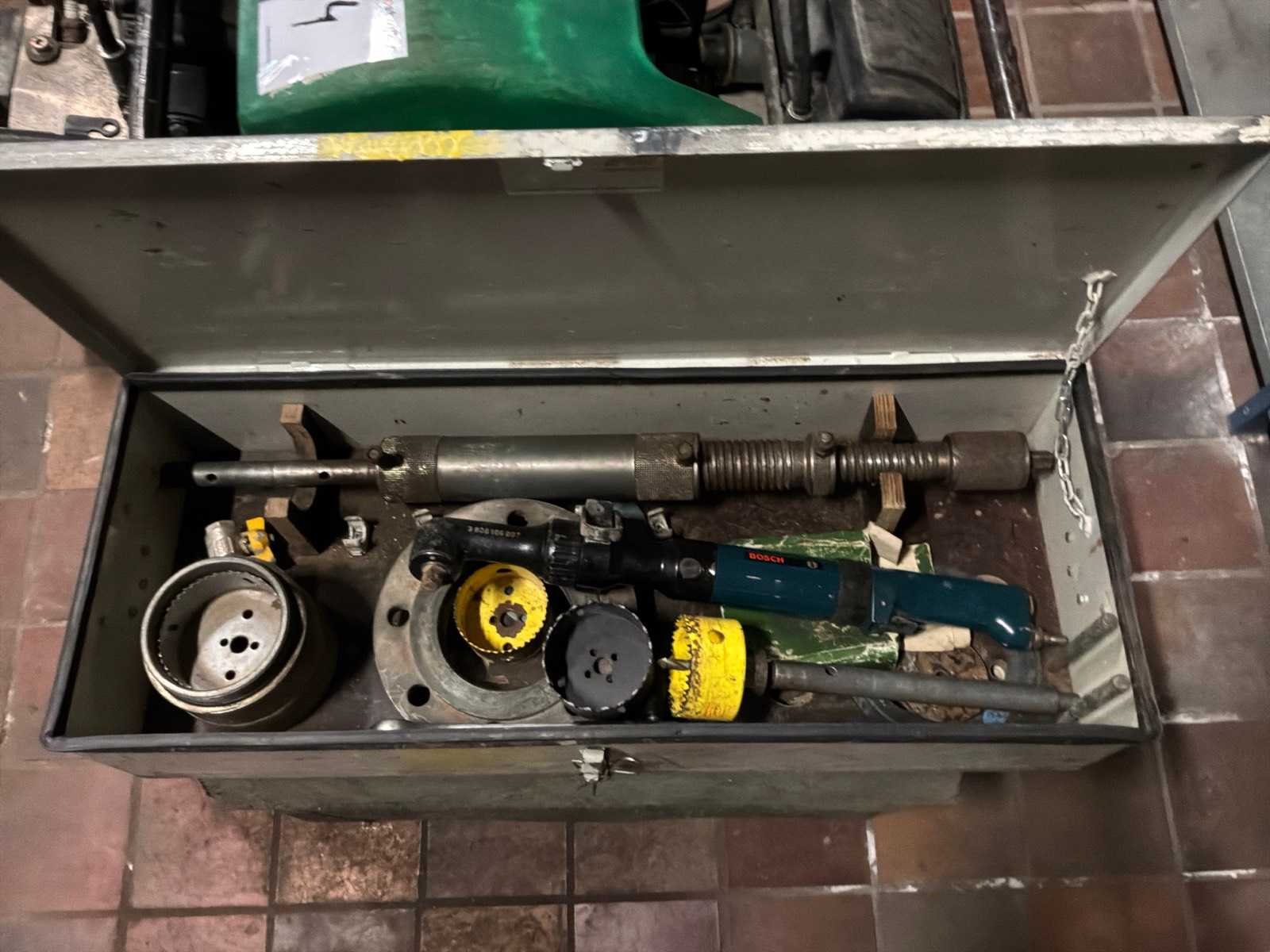 Met gatenzaag 2x 98mm, 2x 79mm, 1x 86mm. Inclusief Bosch pneumatische haakse ratel. In koffer. Merk: IPCO Afmeting l: 800mm Afmeting b: 320mm Afmeting h: 160mm