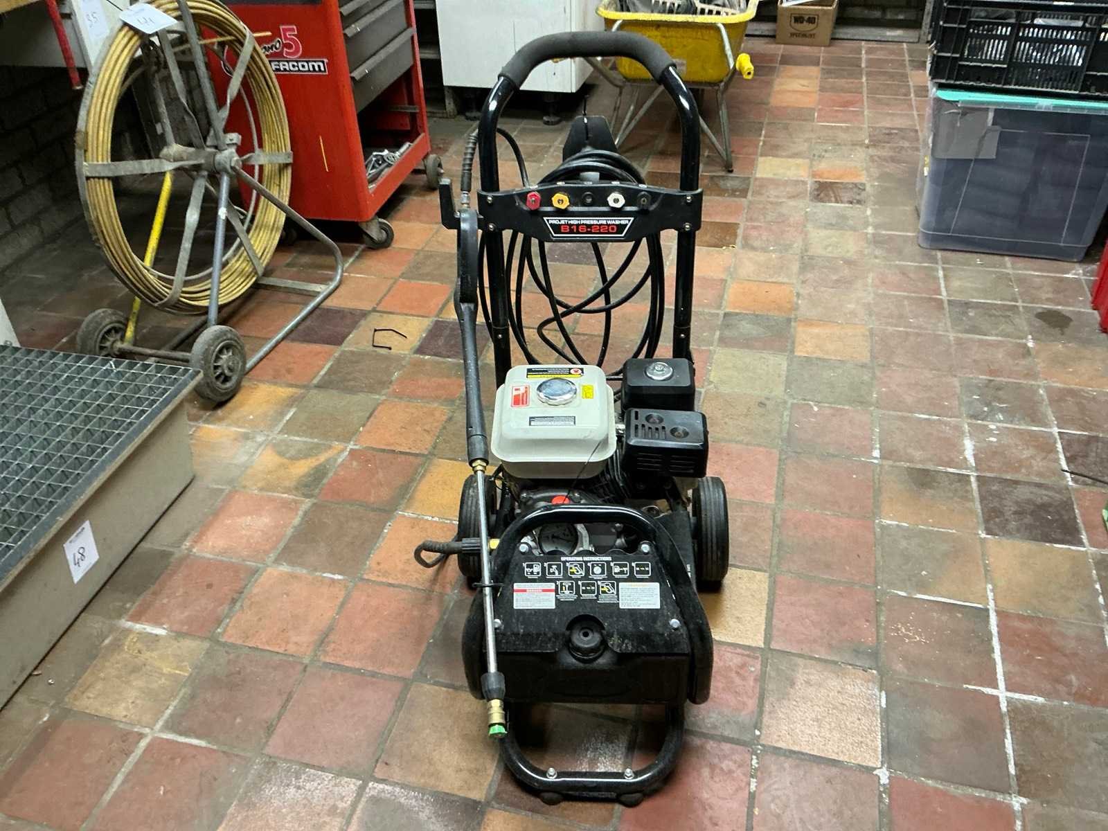 Voorzien van OHV 7.0 Benzinemotor, Waterverbruik ca 16lpm Merk: PROJET Type: B16-220 Maximale werkdruk: 220bar Temperatuurbereik min.: 0°c Temperatuurbereik max.: 60°c Mobiel: true Totale afmeting L: 900mm Totale afmeting Breedte: 510mm Totale afmeting Hoogte: 950mm