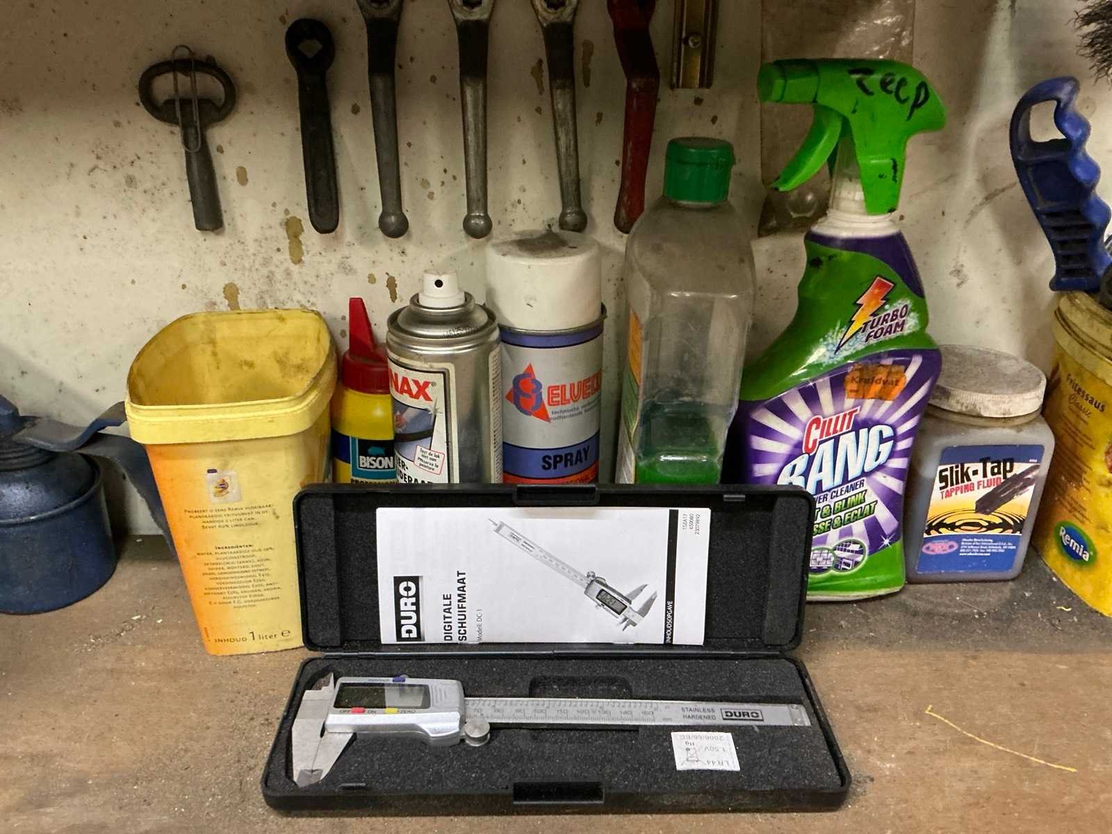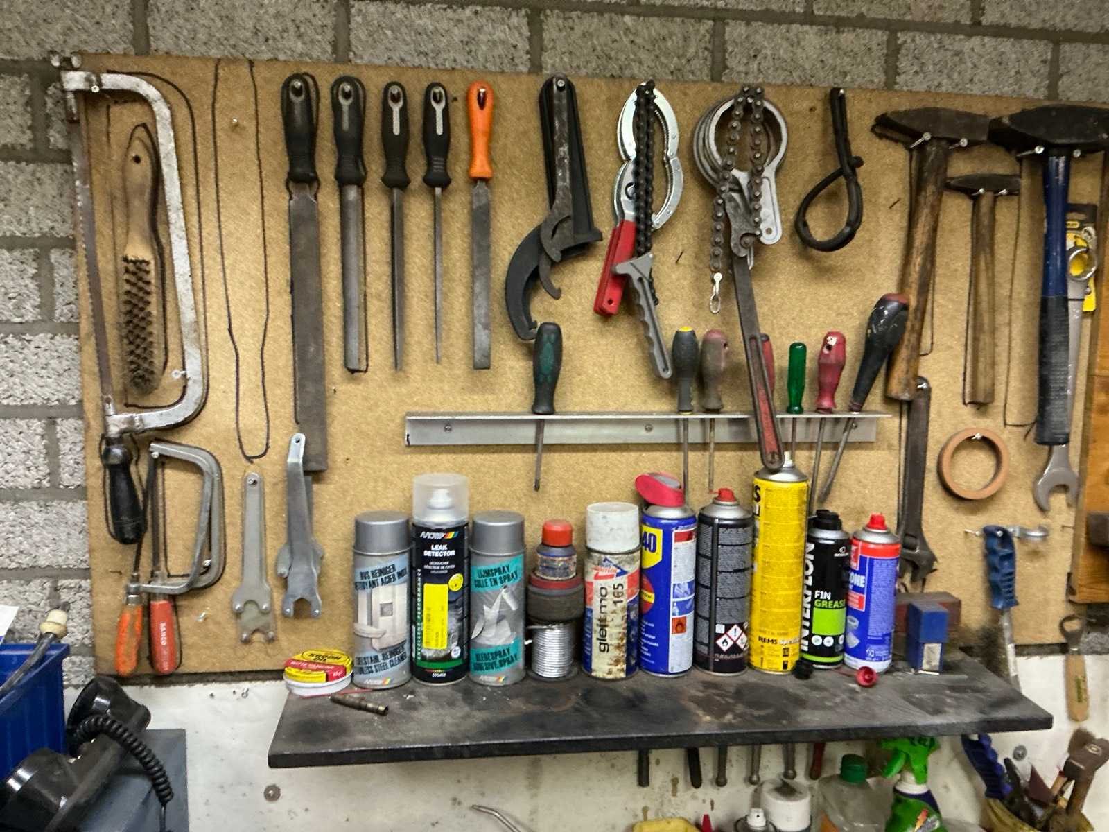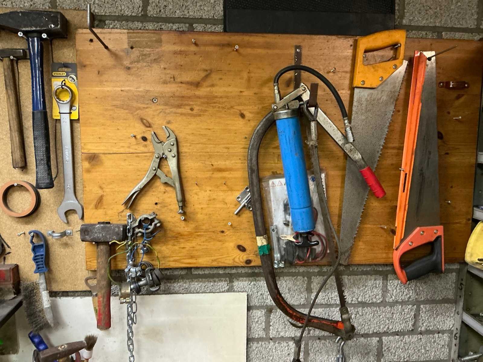 In hoogte verstelbaar, Stalen onderstel met houten werkblad, HEUER bankschroef, Diverse gereedschappen Breedte: 2000mm Lengte: 700mm Hoogte: 950mm