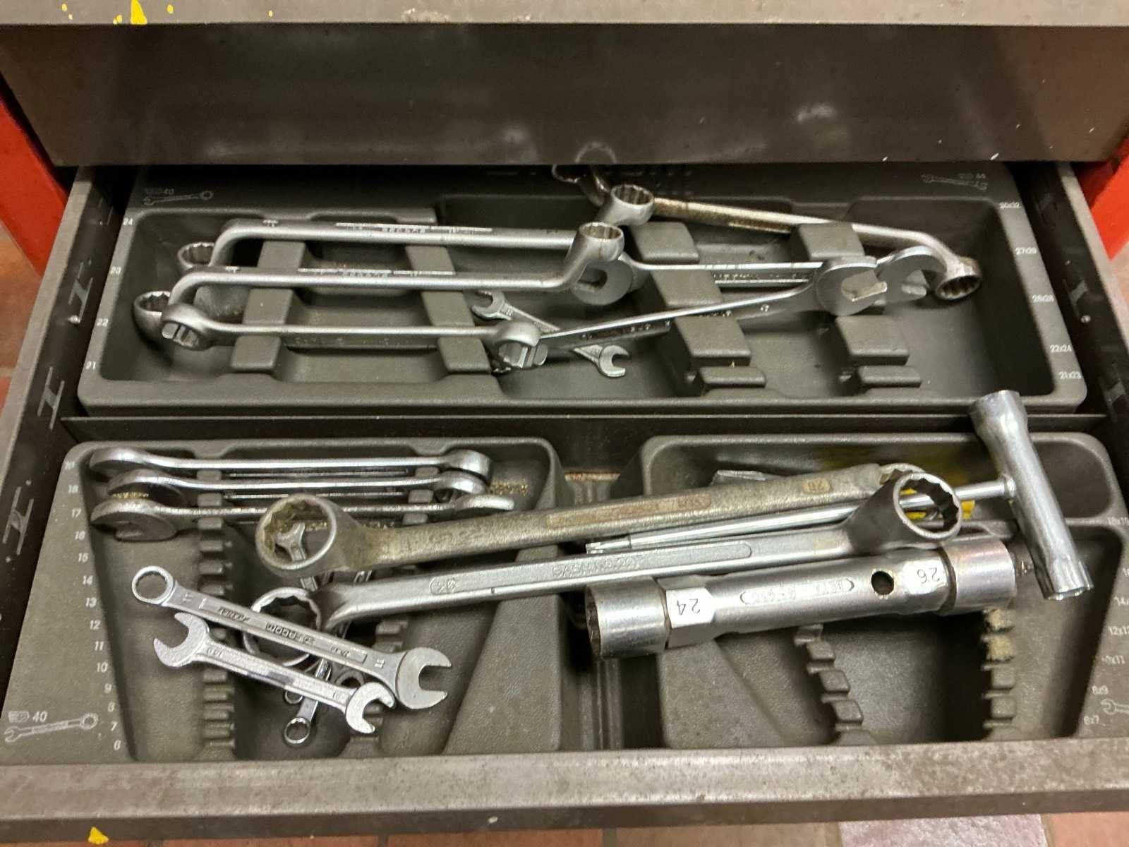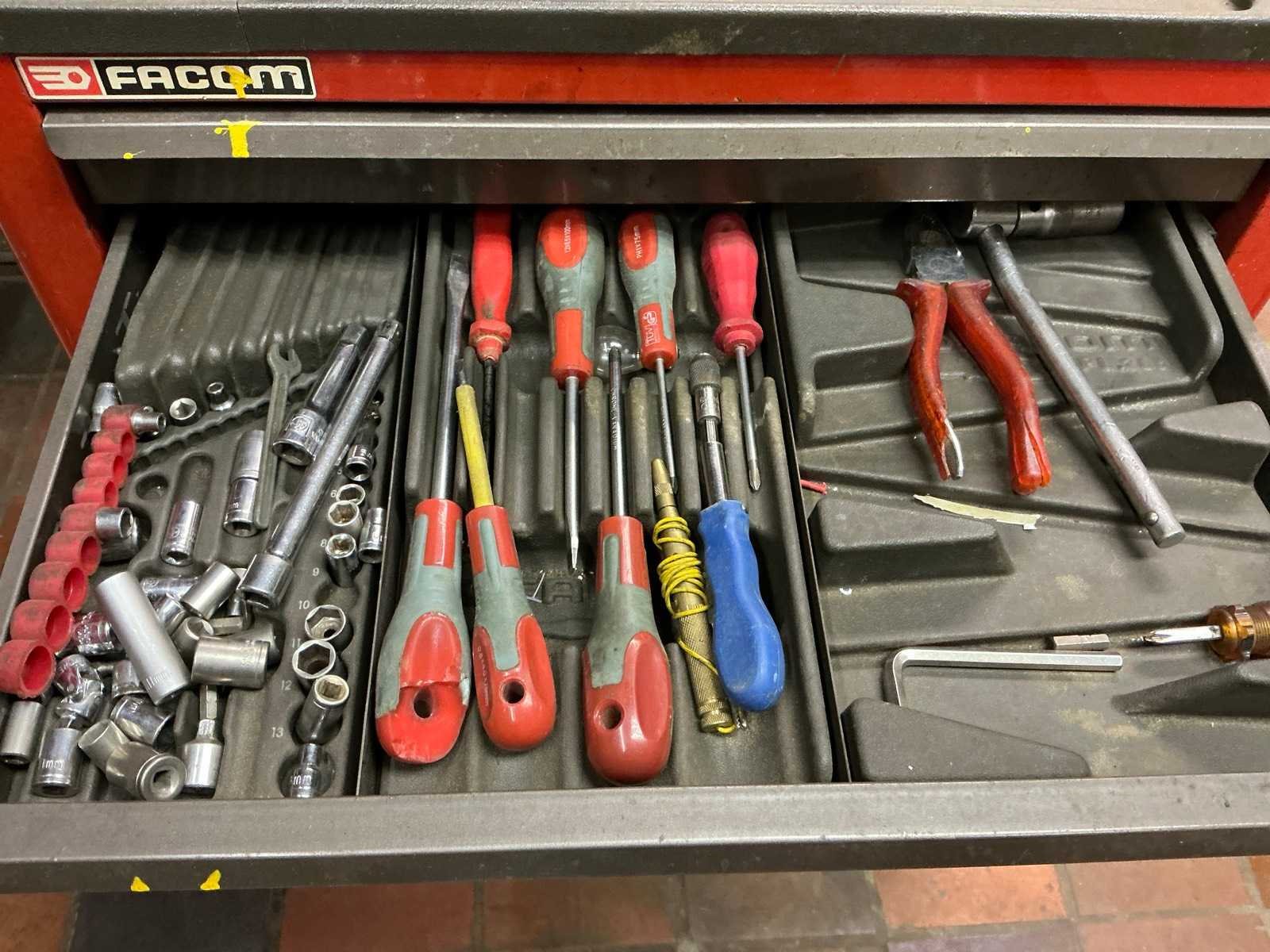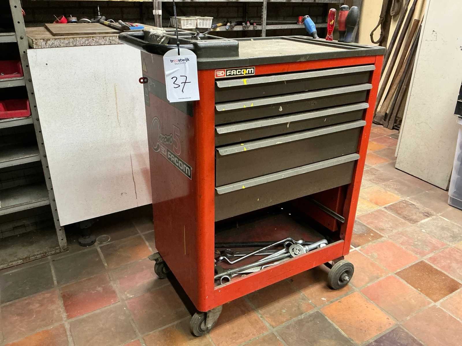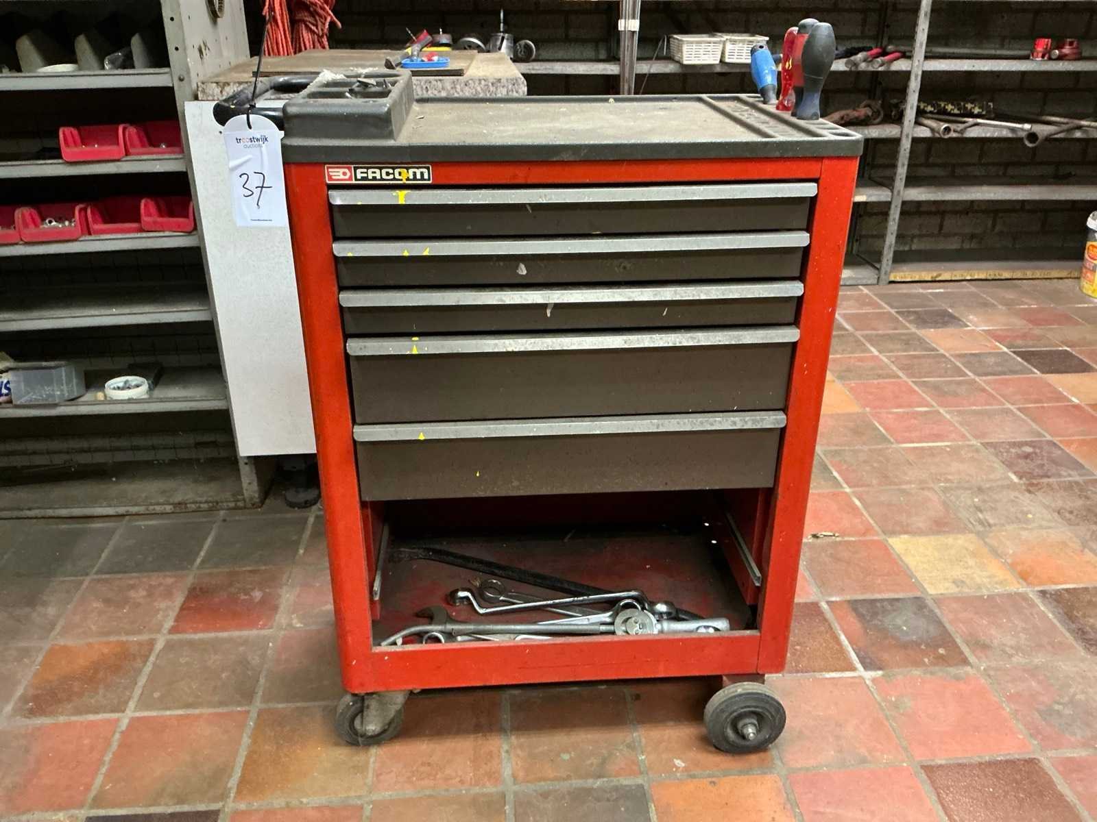 Voorzien van divers gereedschap waaronder steeksleutels, doppen set en schroevendraaiers Merk: FACOM Type: Chrono 5 Aantal laden: 5 Met inhoud: true Totale afmeting L: 440mm Totale afmeting Breedte: 760mm Totale afmeting Hoogte: 950mm
