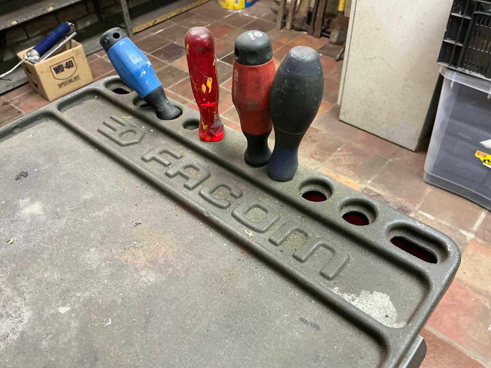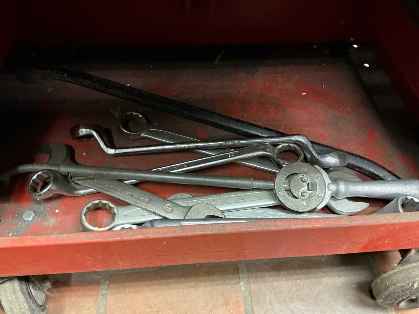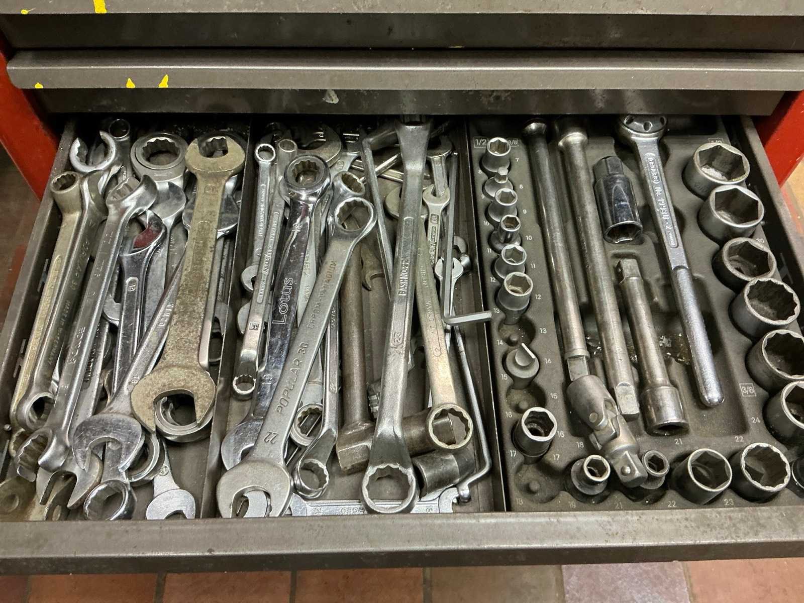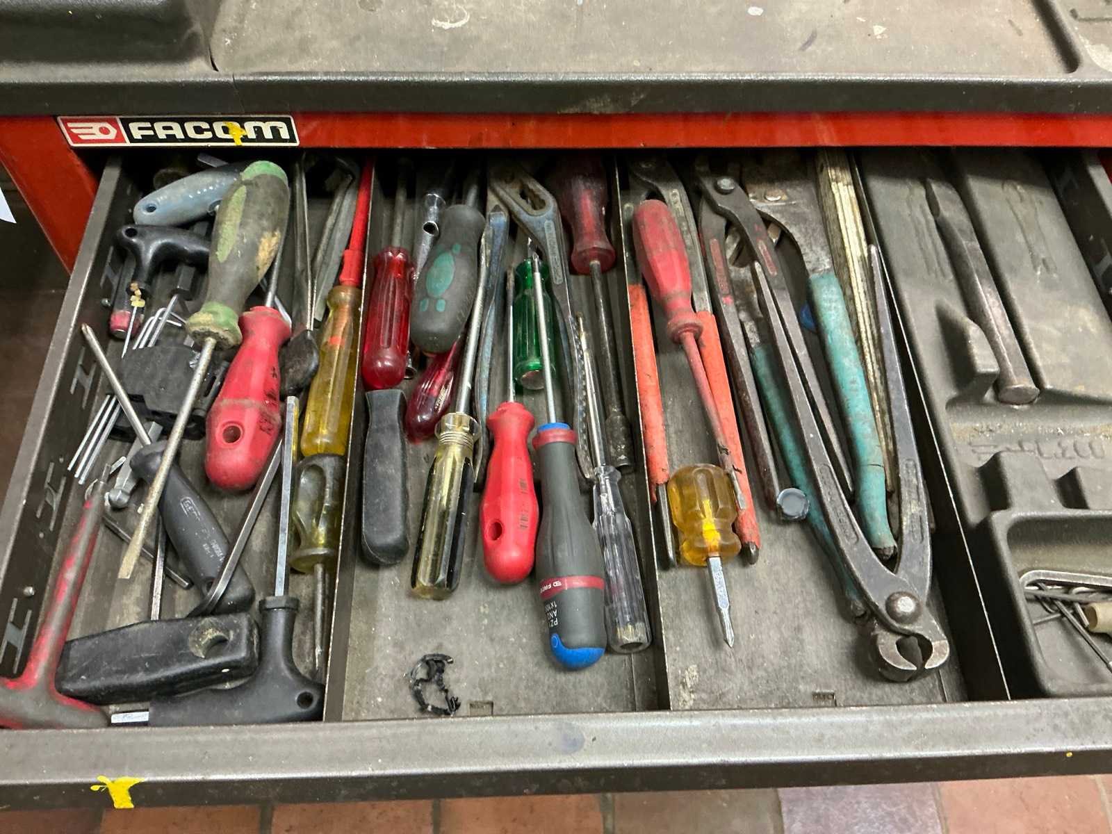 Voorzien van divers gereedschap waaronder steeksleutels, doppen set en schroevendraaiers Merk: FACOM Type: Chrono 5 Aantal laden: 5 Met inhoud: true Totale afmeting L: 440mm Totale afmeting Breedte: 760mm Totale afmeting Hoogte: 950mm