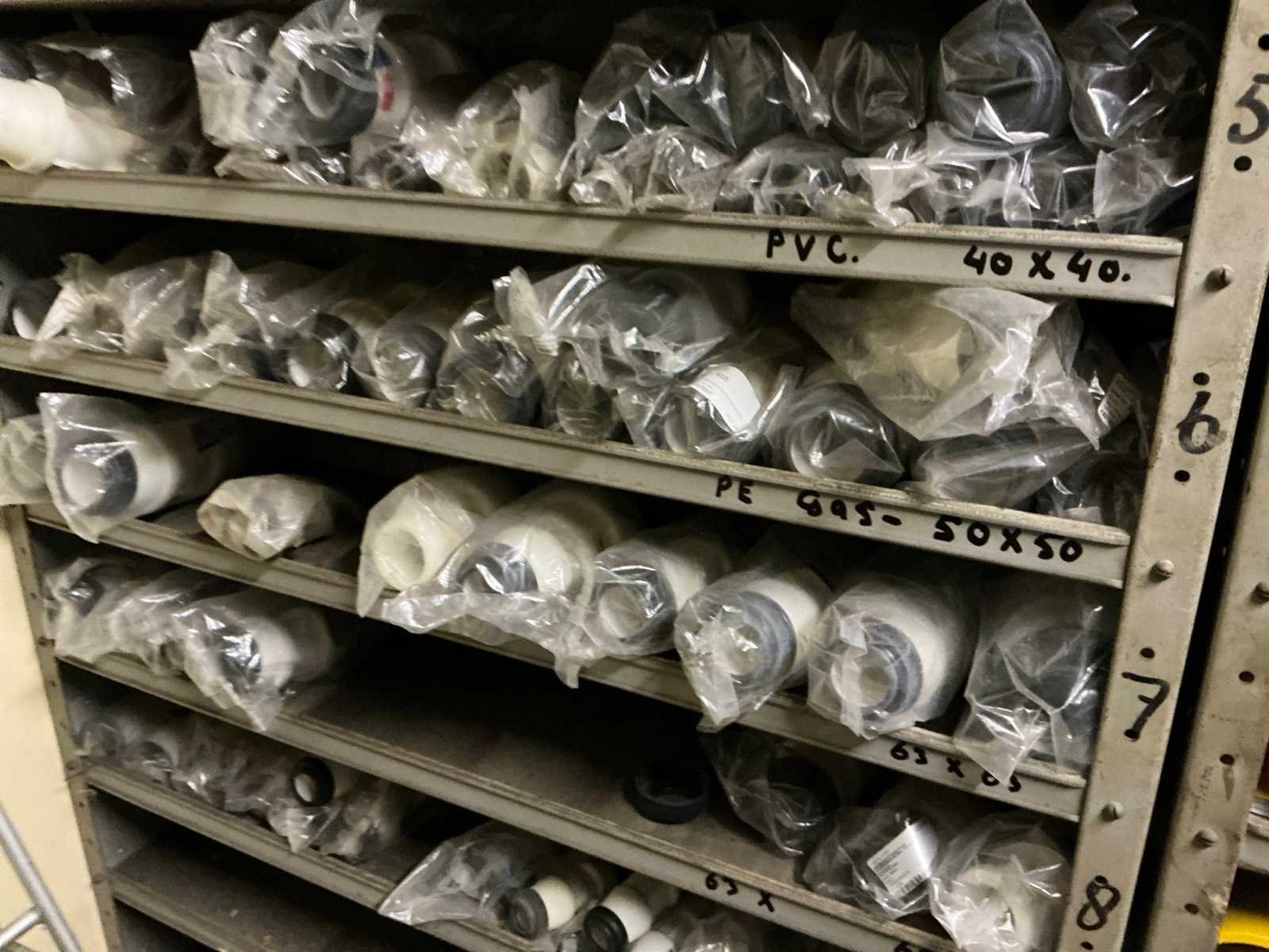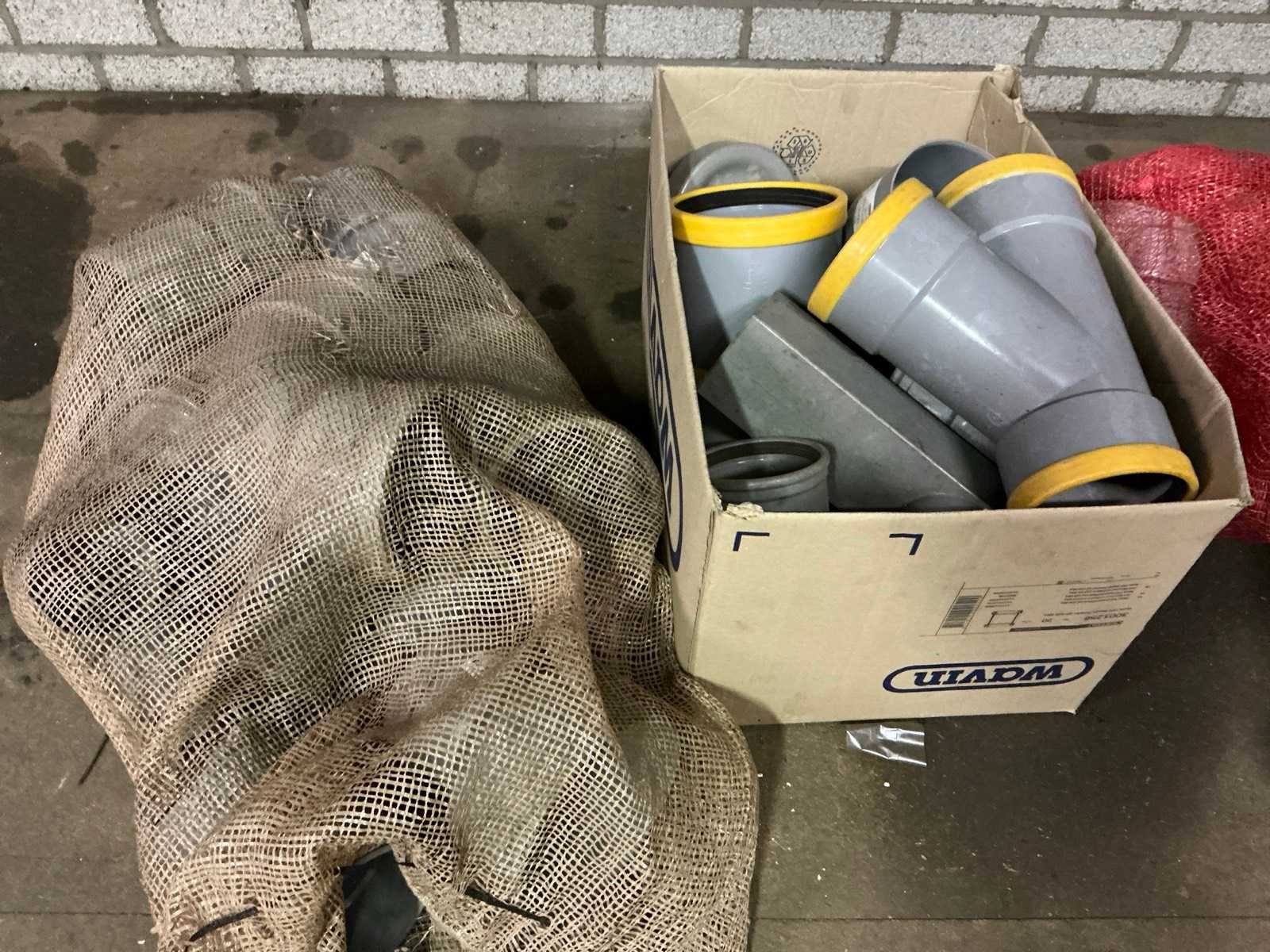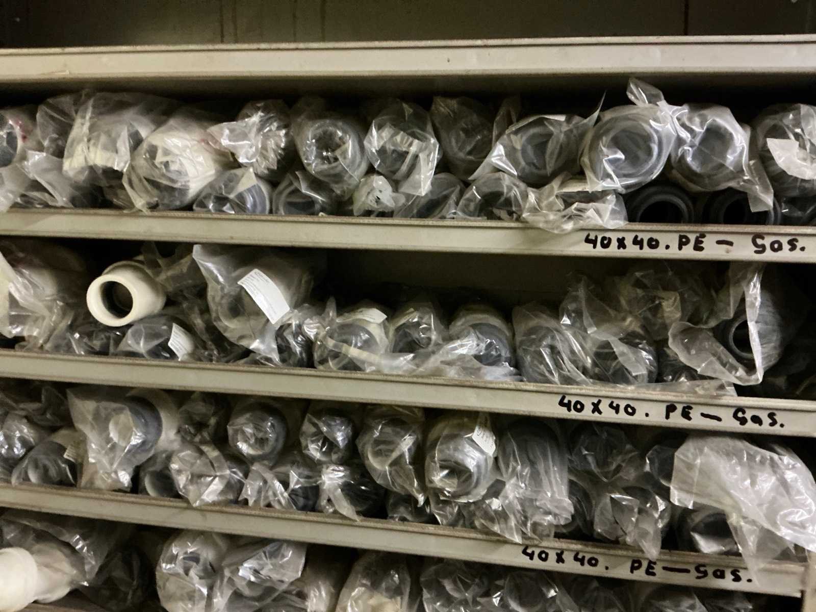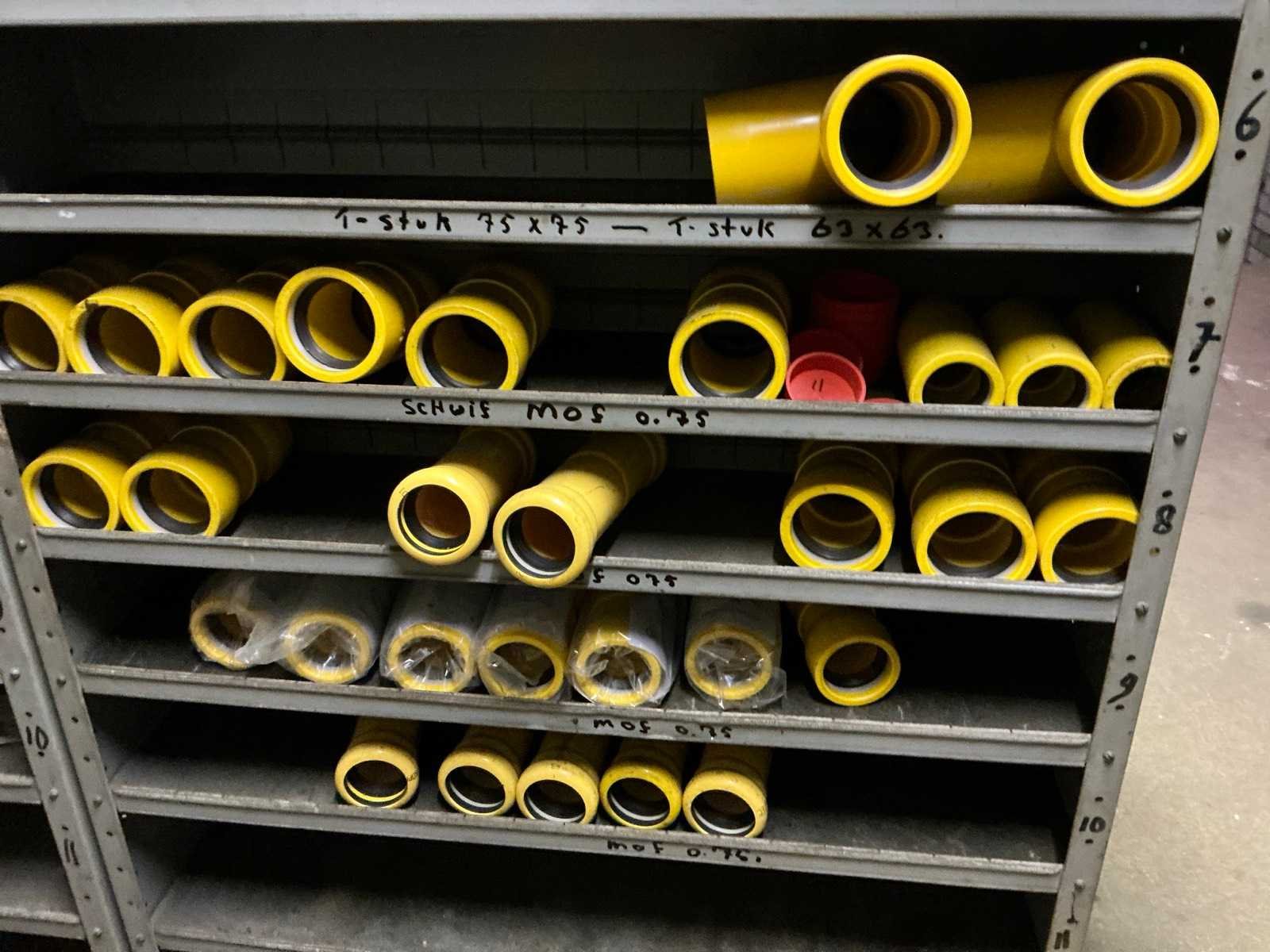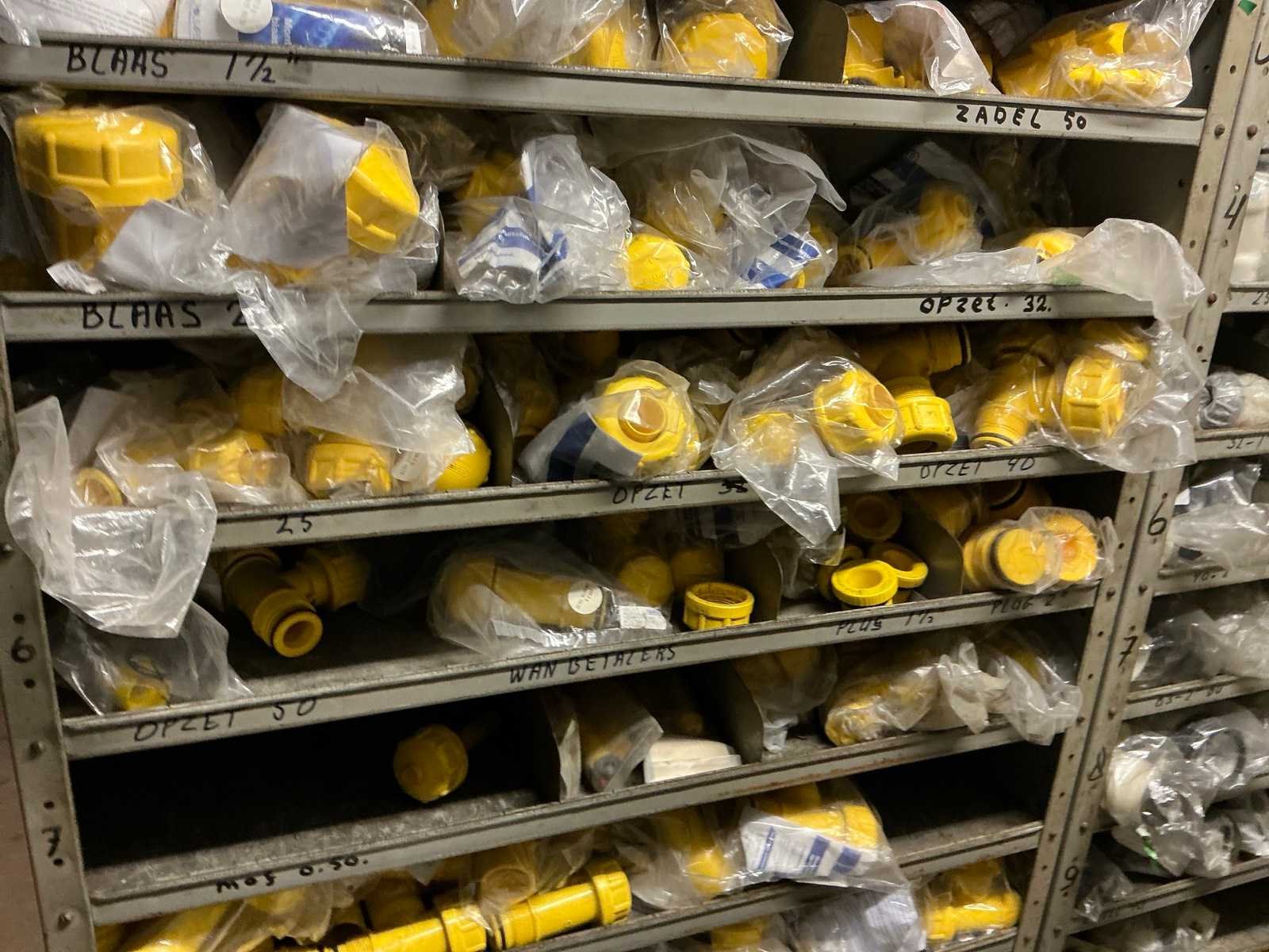 Bestaande uit de inhoud van de kasten waaronder: Gaas bakken met inhoud (Wavin), 40x40 PE-gas, Zadel32mm tot 110mm M20x80 bouten, Kranen en divers