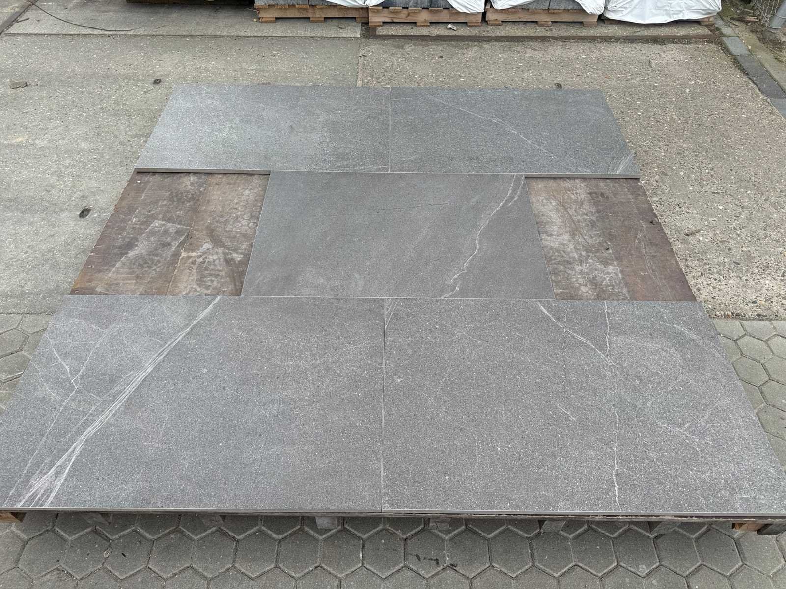 Afmetingen circa: 90 cm x 60 cm x 20 mm. Keramiektegel Naturelook Dark Grey. A-Kwaliteit. Aantal pallets: 2. U kunt deze kavel afhalen in Hulst op 27 mei. Daarvoor moet u uiterlijk 20 mei uw factuur van Troostwijk betaald hebben. Bij betaling ná deze datum blijft uw kavel bij de verkoper staan en is afhalen in Hulst enkel mogelijk op afspraak. U kunt deze kavel ook laten bezorgen. De kosten bedragen voor dit kavel €110,00 exclusief BTW. Wilt u meerdere kavels laten bezorgen? Vanaf het tweede tot en met de vijfde kavel betaalt u €75,00 euro ex BTW per kavel. Voor 6 kavels of meer betaalt u een vast bedrag van €450,00 ex BTW. Levering vindt alleen plaats in Nederland. Kosten bezorging op de Waddeneilanden en België op aanvraag. Voor het laten bezorgen van uw kavel(s) dient u zelf uiterlijk 20 mei contact op te nemen via e-mail, Veiling@dbtrading.nl . Bezorginformatie: Het losadres moet goed bereikbaar zijn voor een vrachtwagen met trailer waarop een kraan is bevestigd. Deze kraan kan de pallets maximaal 4 meter vanaf de wagen lossen. Hiermee dient u rekening te houden i.v.m. het vrijhouden van de losplaats. De chauffeur heeft geen palletwagen tot zijn beschikking. Kleur: Dark Grey Lengte: 90cm Breedte: 60cm Dikte: 20mm Materiaal: Keramische tuintegels Aantal pakken: 2