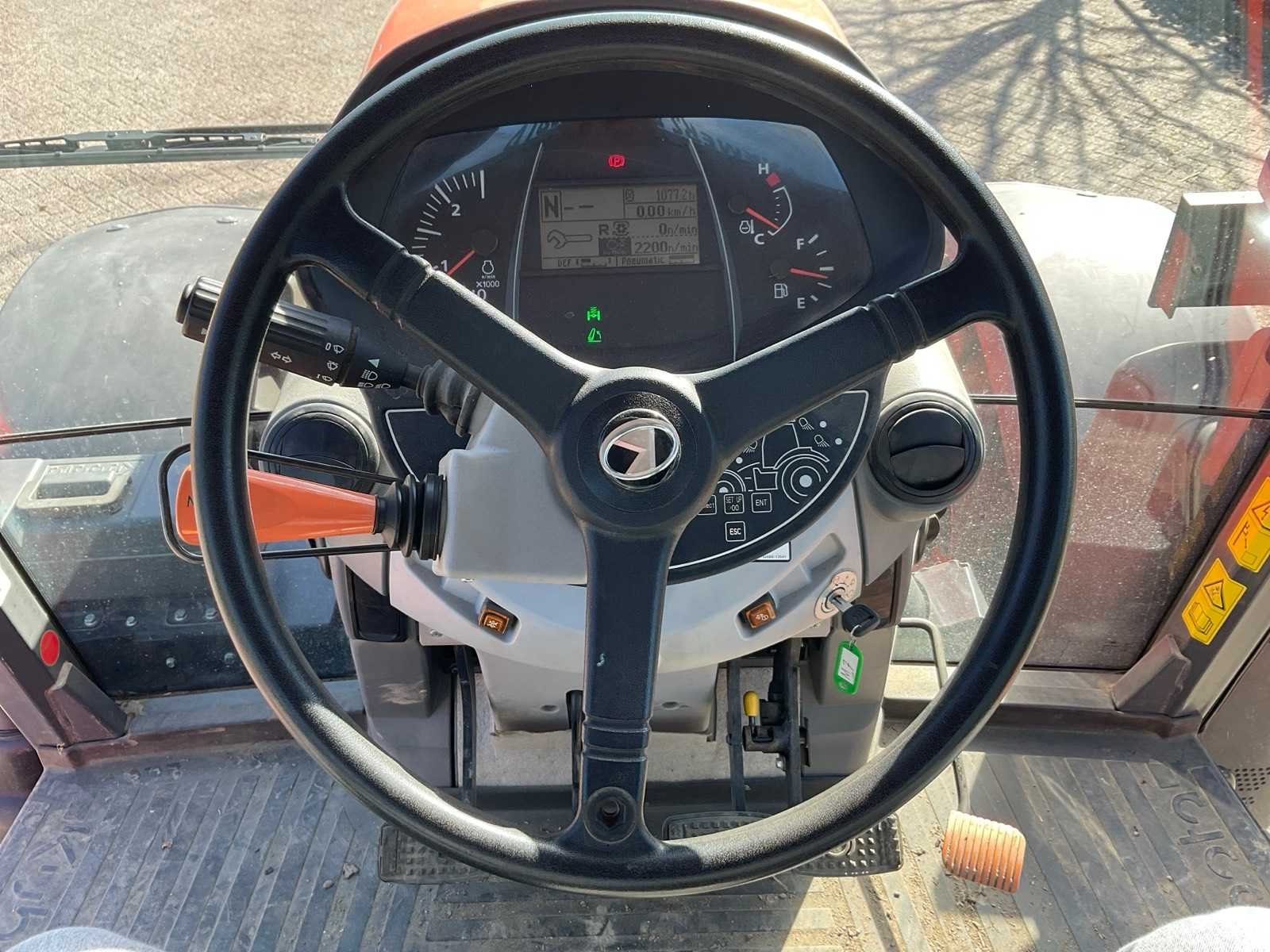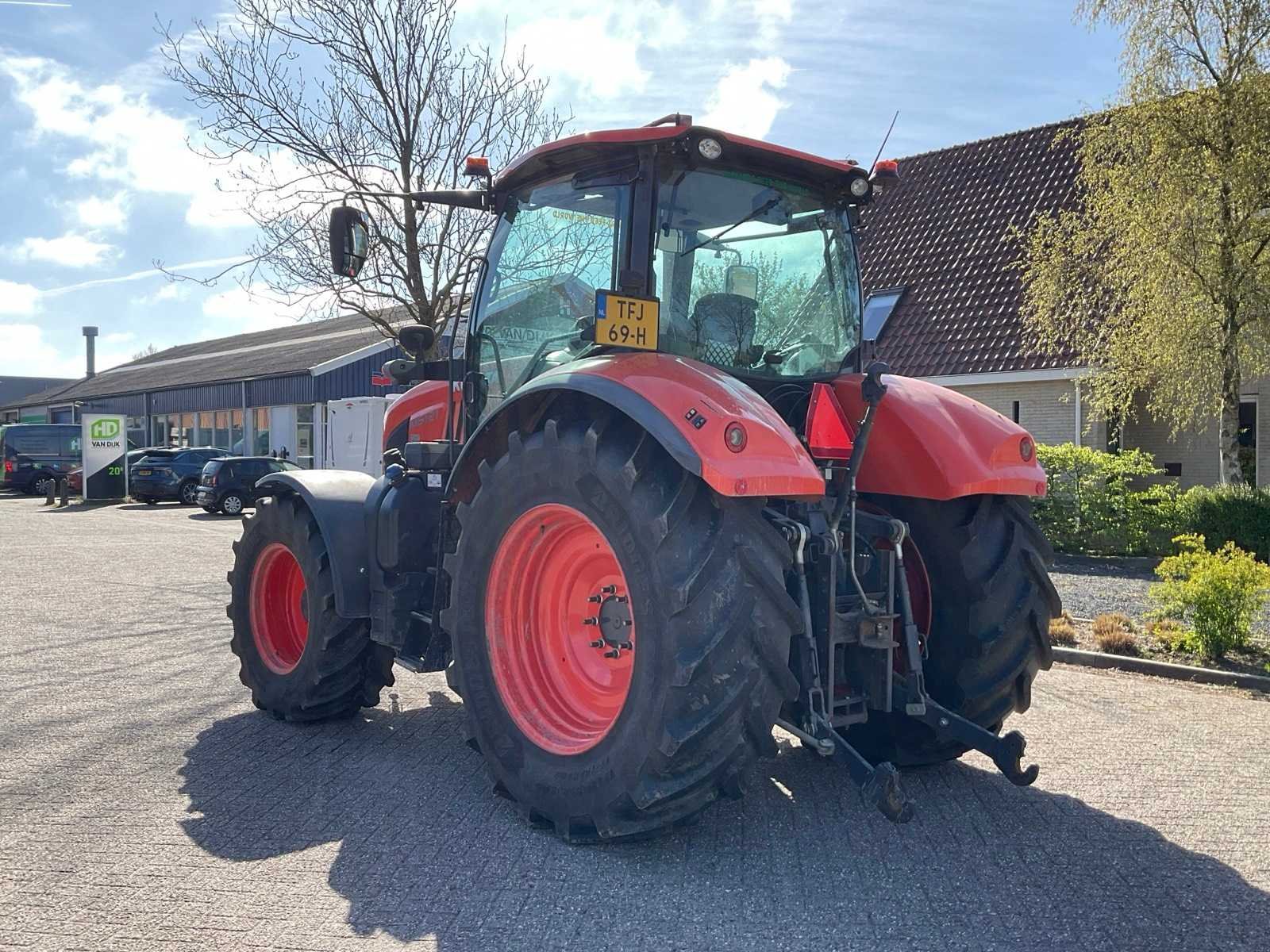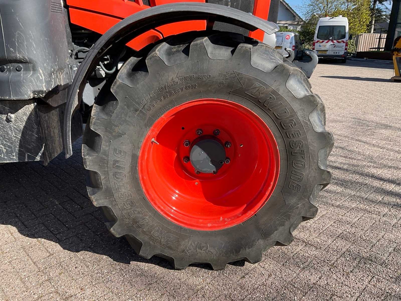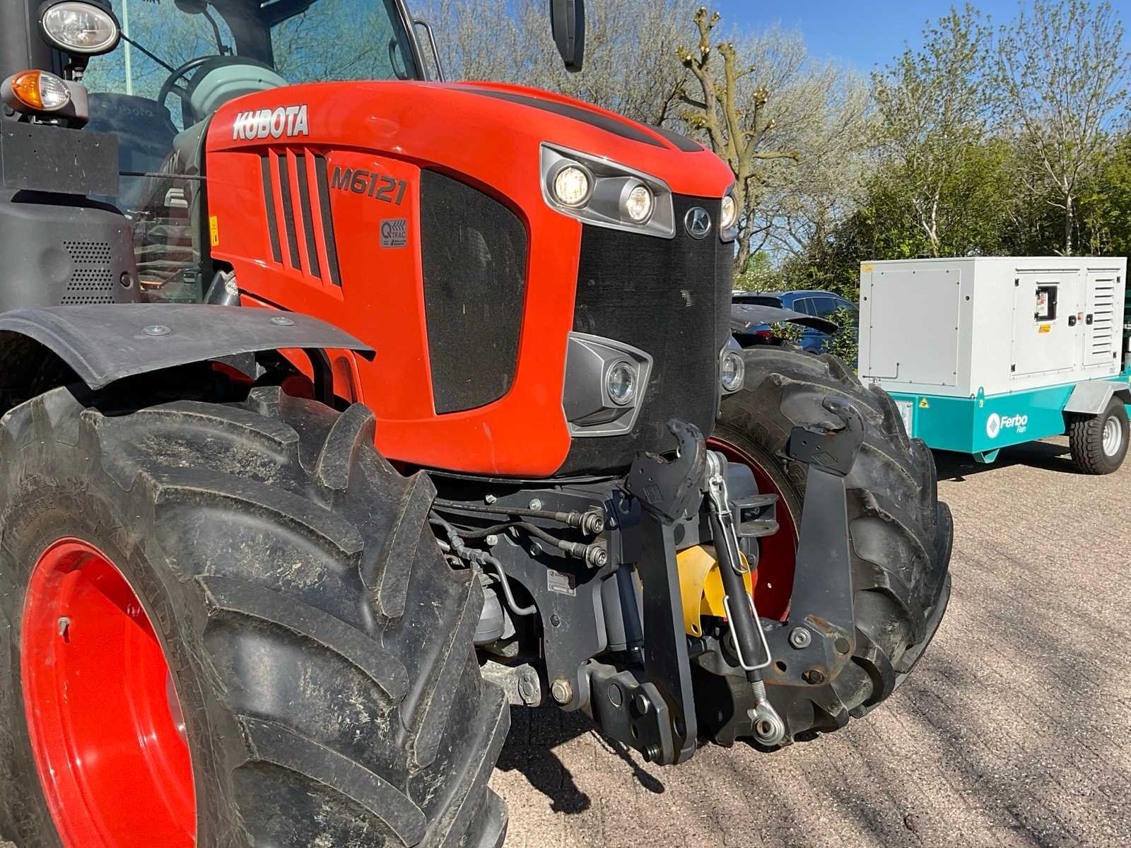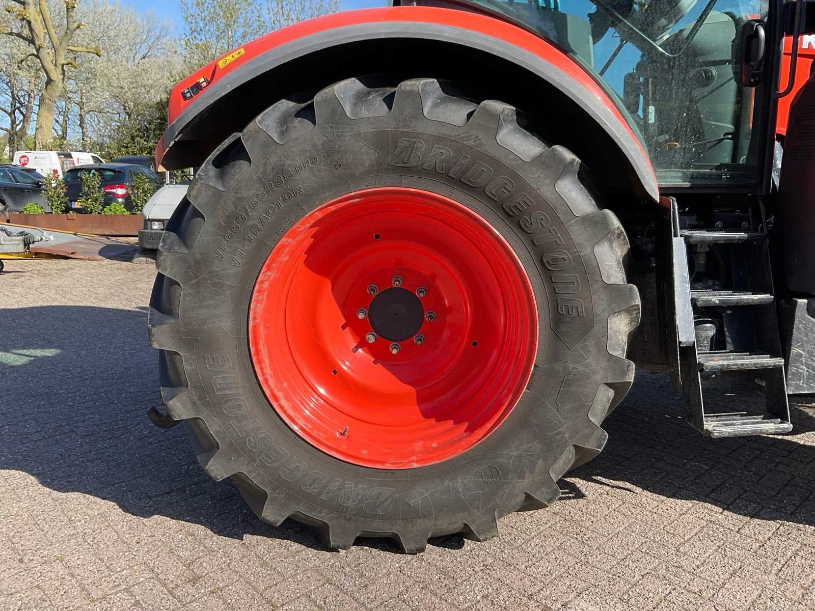 Aftakas toerental 540 / 540E / 1000 / 1000E RPM; airconditioning; radio etc. Merk: Kubota Type: M6121 Bouwjaar: 2018 Kenteken: TFJ-69-H Motorvermogen (kW): 85kW Afgelezen urenstand: 1077 Versnellingsbaktype: Powershift K POWER+ Aantal hydraulische ventielen voor: 2 Aantal hydraulische ventielen achter: 3 Bandenmaat voor: VF540/65R28 Bandenmaat achter: VF650/65R38NRO Load sensing: true Fronthefinrichting: true Cabine: true Luchtgeveerde stoel: true Eigen gewicht: 6900kg Kentekenpapieren compleet?: true Datum eerste toelating: 2018-06-30 Nationaliteit documenten: Nederlandse Zelf rijdend exporteren: Mogelijk