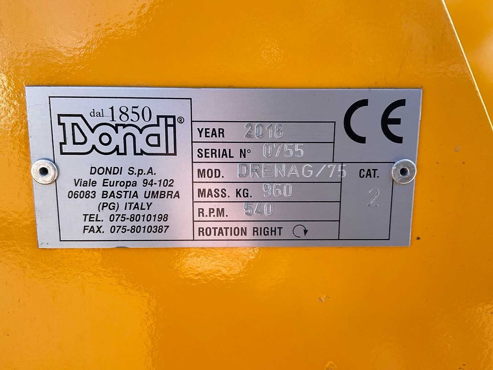 Aftakas toerental 540 RPM; v.v. driepunt aansluiting; incl. aftakas Merk: Dondi Type: Drenag 75 Bouwjaar: 2018 Serienummer: 0755 Werkbreedte: 200mm Werkdiepte: 750mm Eigen gewicht: 960kg Totale afmeting L: 2750mm Totale afmeting Breedte: 1500mm Totale afmeting Hoogte: 2100mm