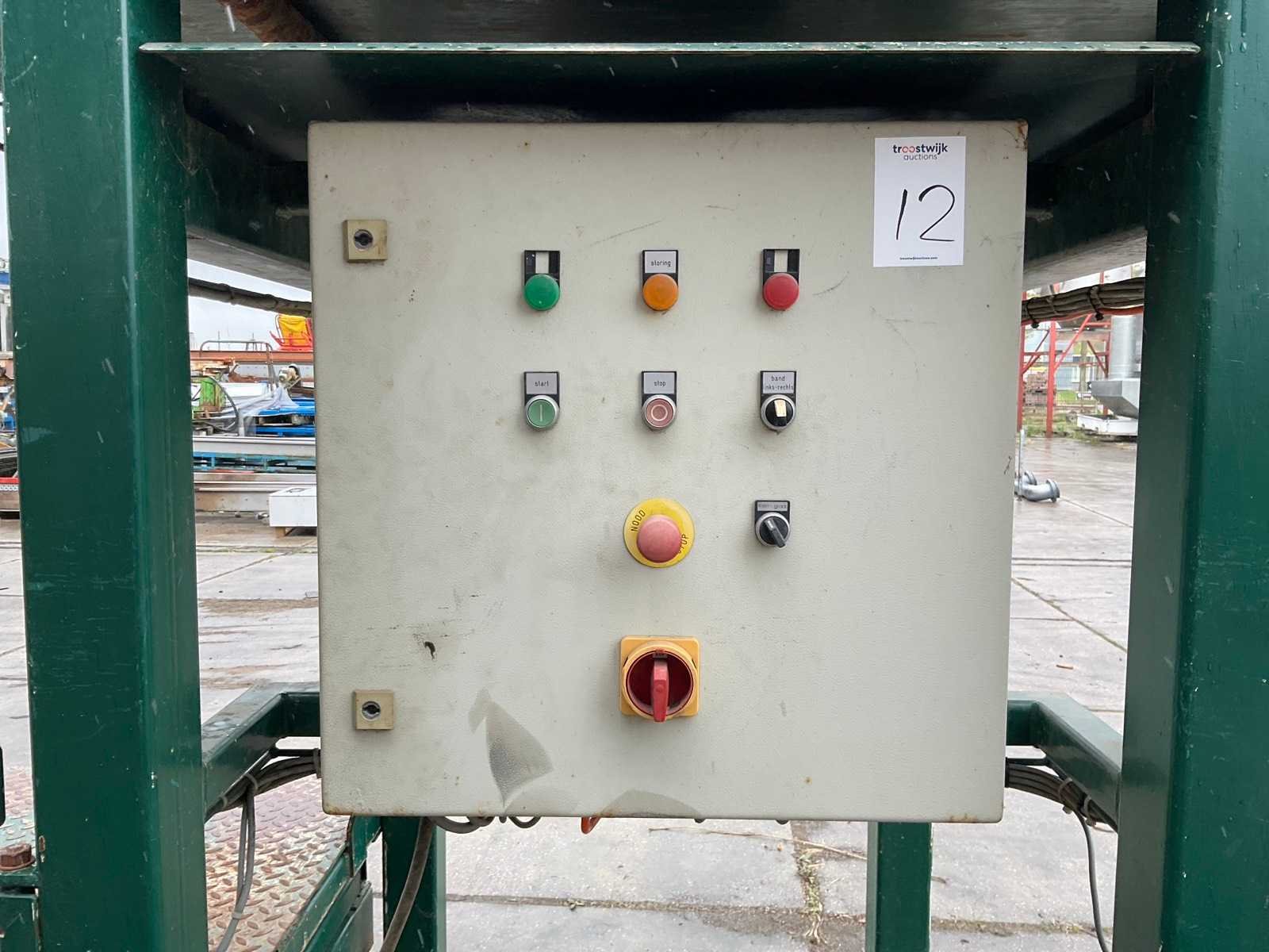 V.v. trilfunctie en schakelkast Merk: Abresh Bouwjaar: 2002 Aansluiting: 400V Transportband: true Totale afmeting L: 3150mm Totale afmeting Breedte: 1250mm Totale afmeting Hoogte: 2650mm