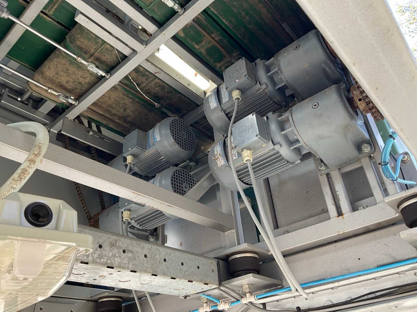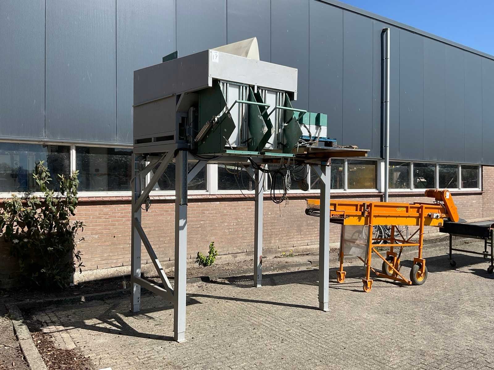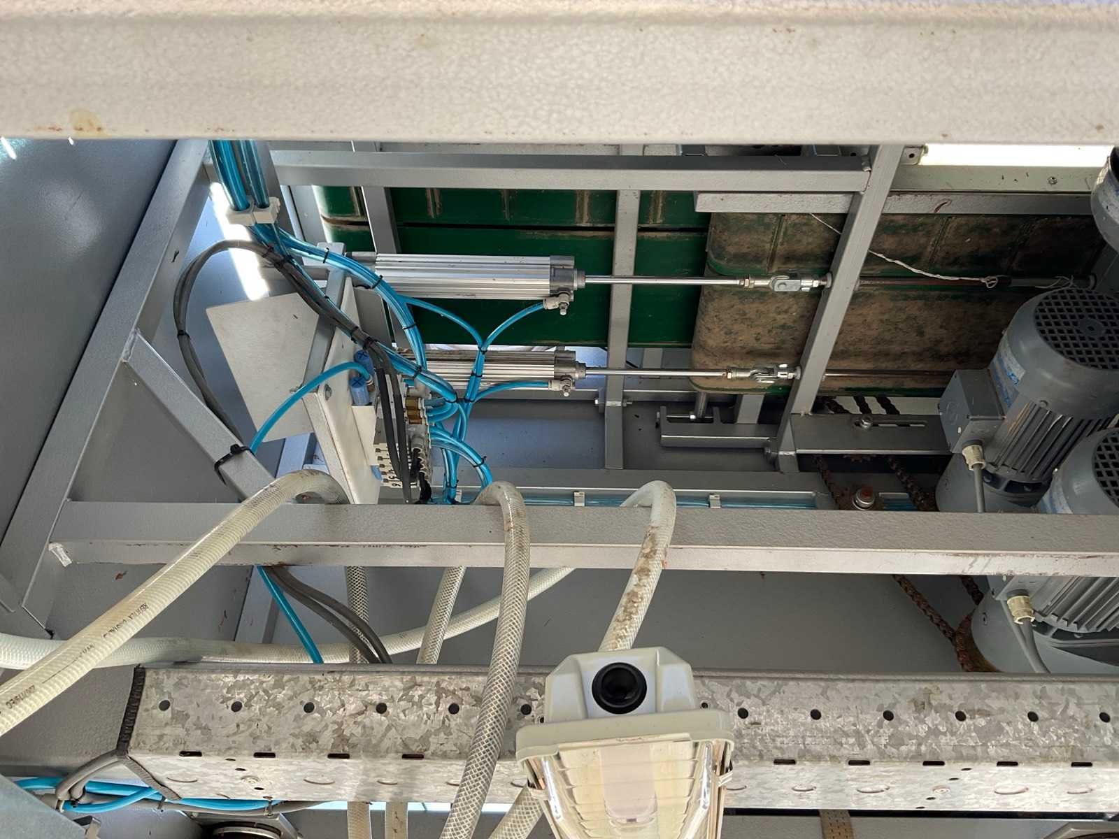 Dubbelvoudig; pneumatisch; gemonteerd op stalen frame Merk: Pro-Pak Type: EW-2 Aansluiting: 400V Totale afmeting L: 2300mm Totale afmeting Breedte: 1560mm Totale afmeting Hoogte: 3180mm
