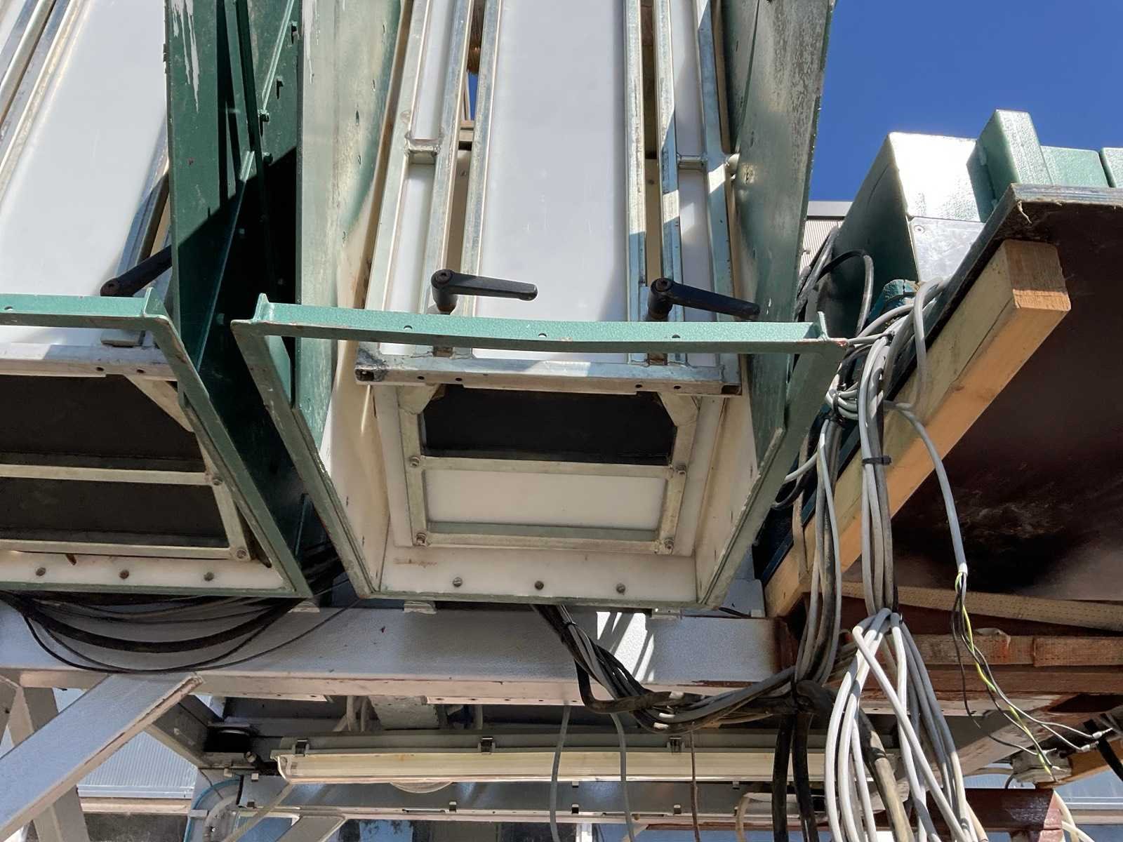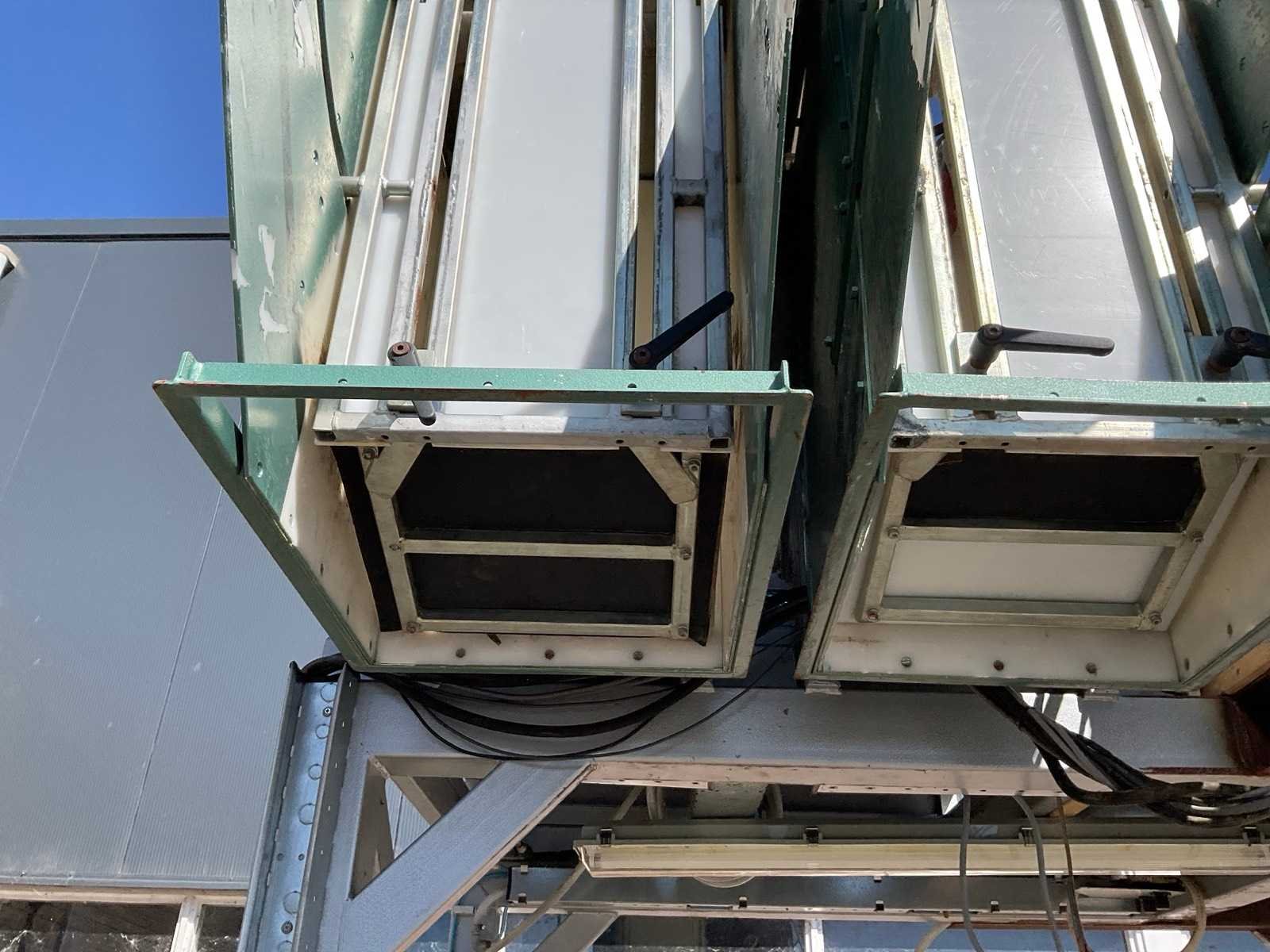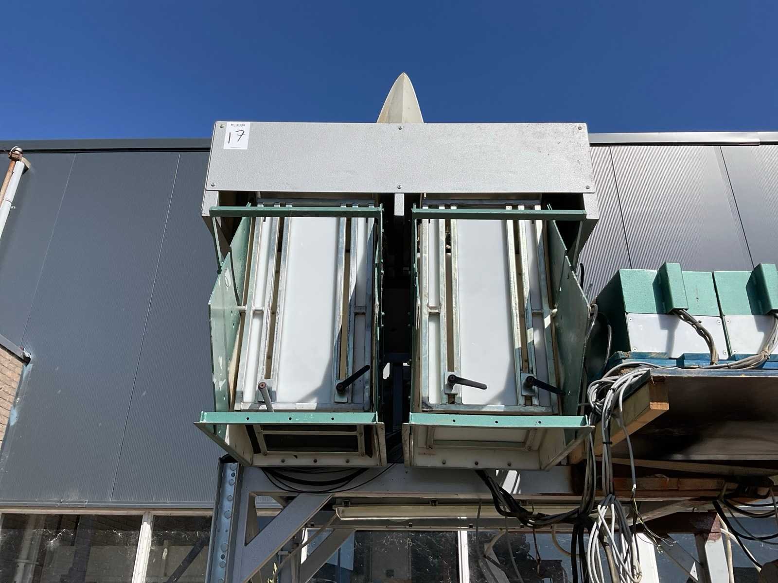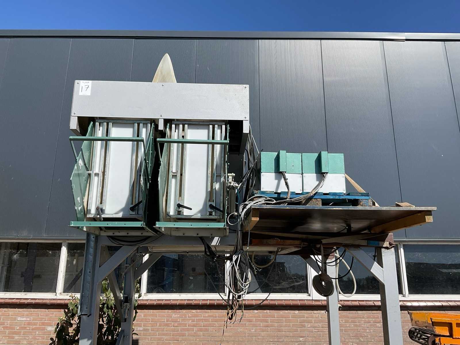 Dubbelvoudig; pneumatisch; gemonteerd op stalen frame Merk: Pro-Pak Type: EW-2 Aansluiting: 400V Totale afmeting L: 2300mm Totale afmeting Breedte: 1560mm Totale afmeting Hoogte: 3180mm