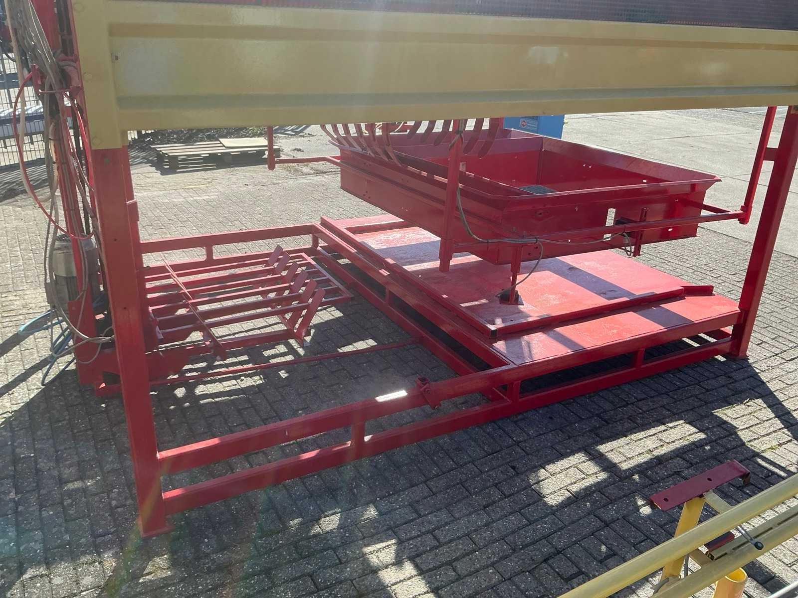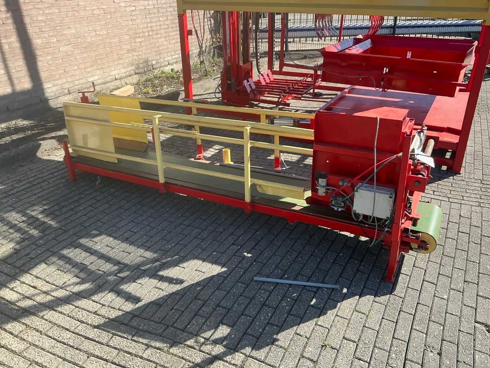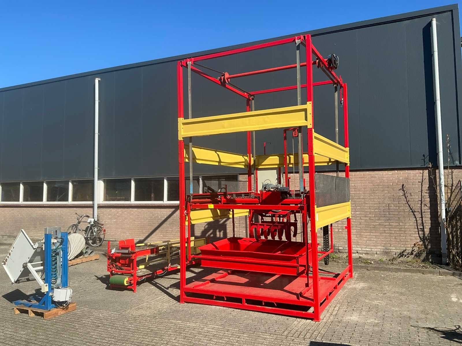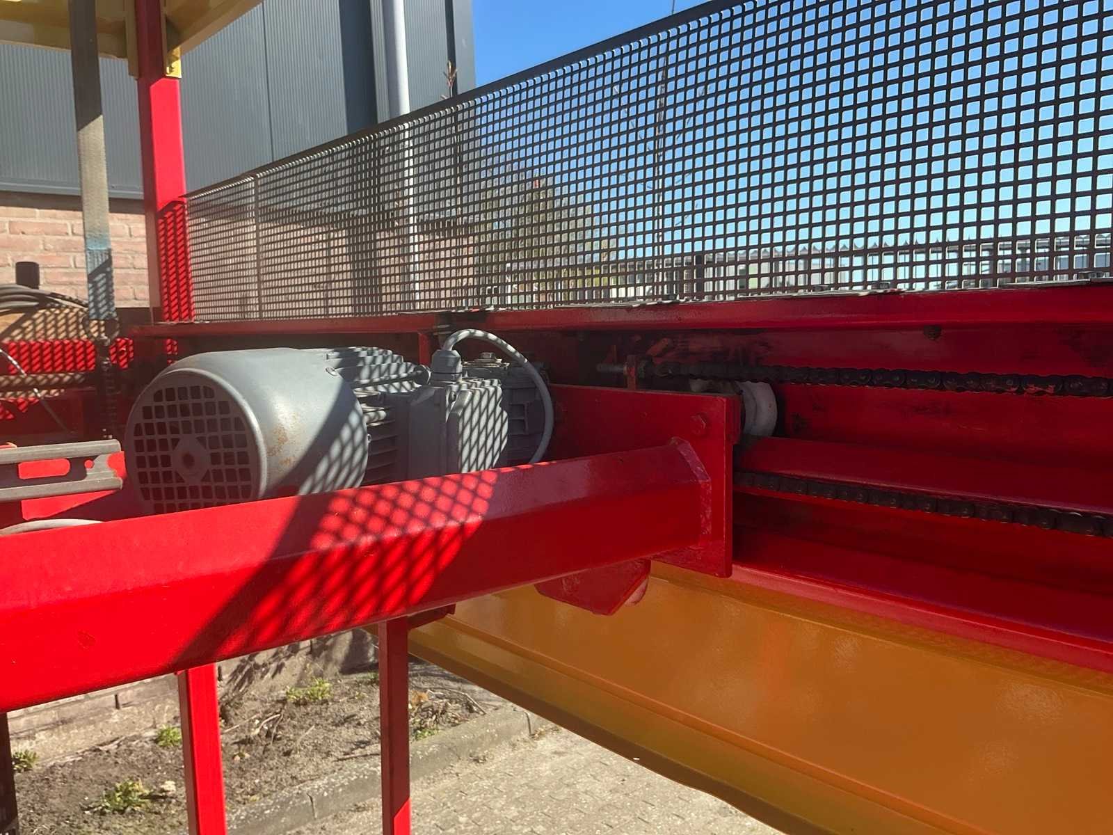 Voorzien van onder andere: lepelkokers, en invoerband. Lengte: 3000mm, breedte band: 350mm Merk: Wibo Type: 6 Aansluiting: 400V Totale afmeting L: 3150mm Totale afmeting Breedte: 3000mm Totale afmeting Hoogte: 4050mm