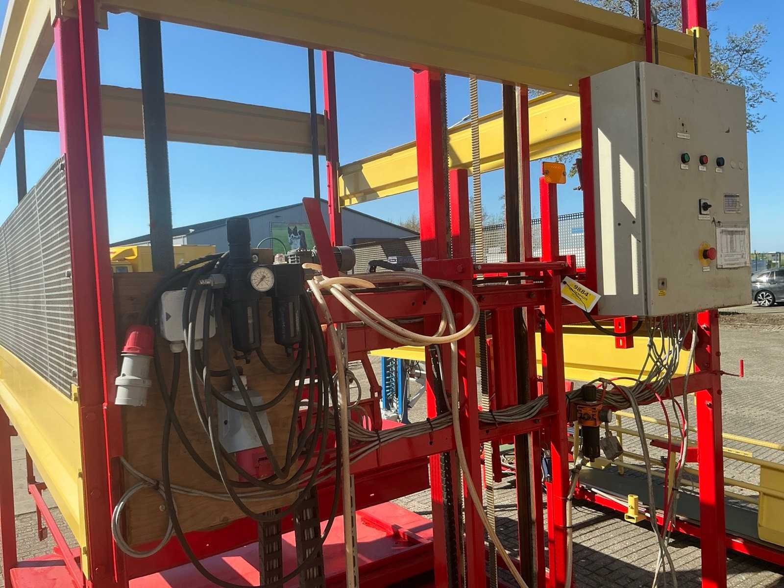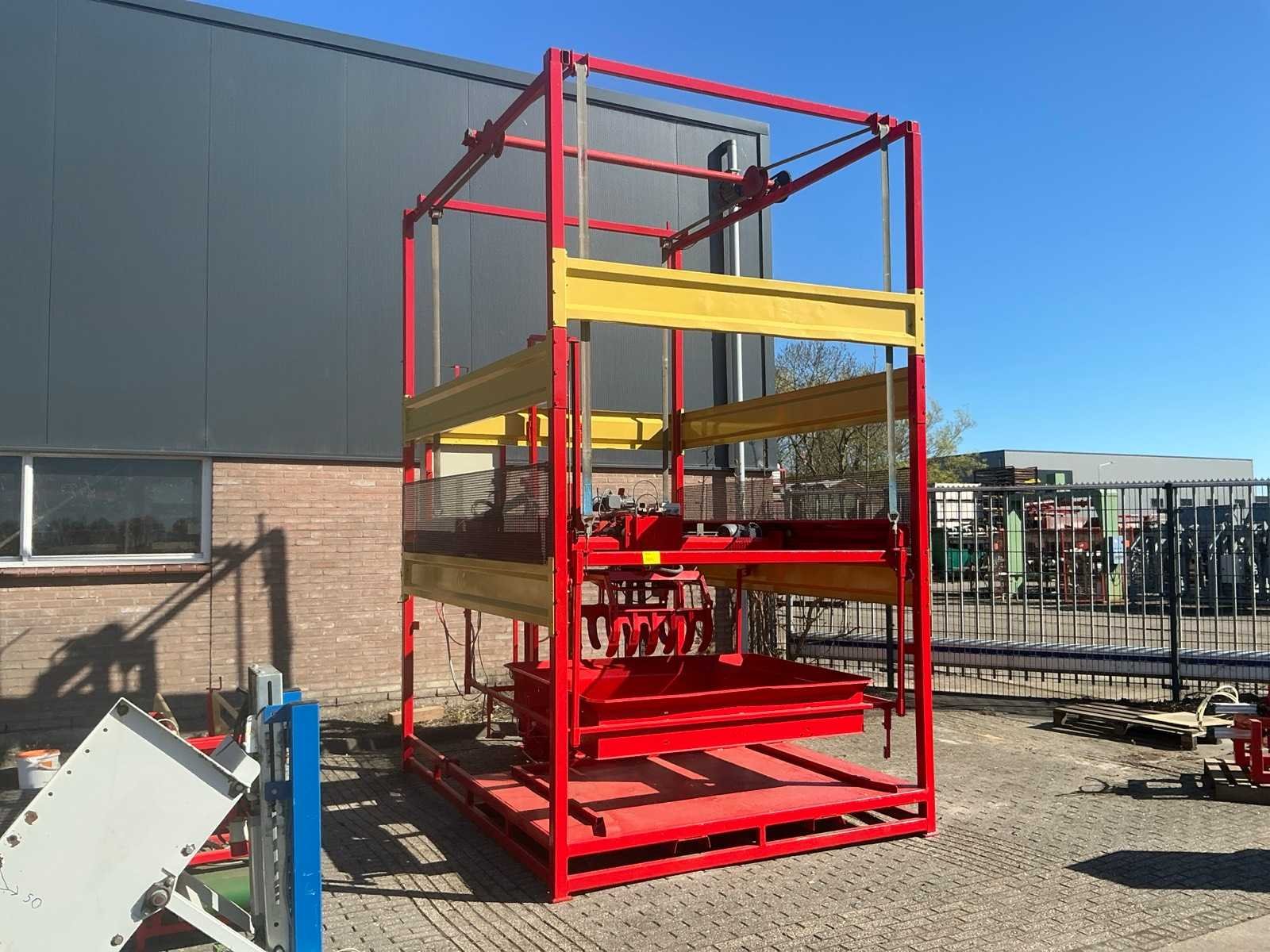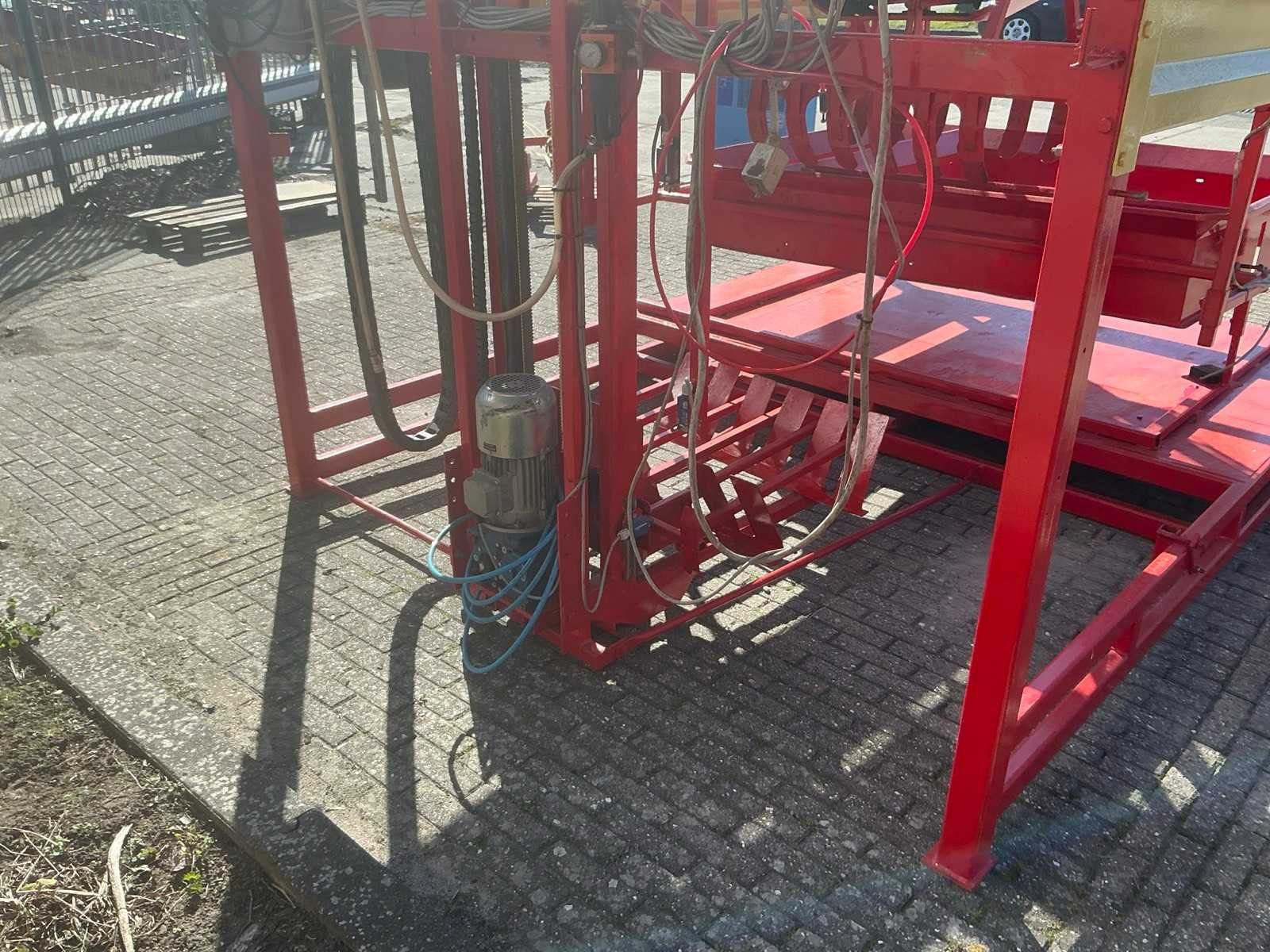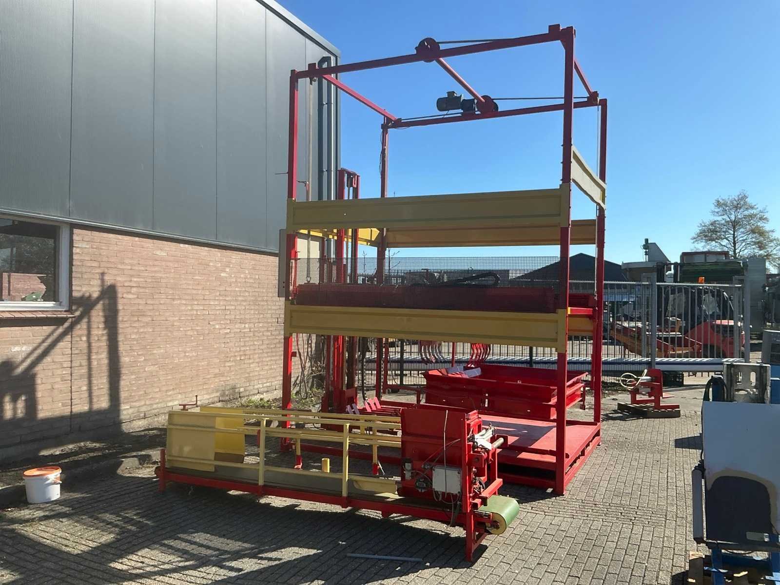 Voorzien van onder andere: lepelkokers, en invoerband. Lengte: 3000mm, breedte band: 350mm Merk: Wibo Type: 6 Aansluiting: 400V Totale afmeting L: 3150mm Totale afmeting Breedte: 3000mm Totale afmeting Hoogte: 4050mm