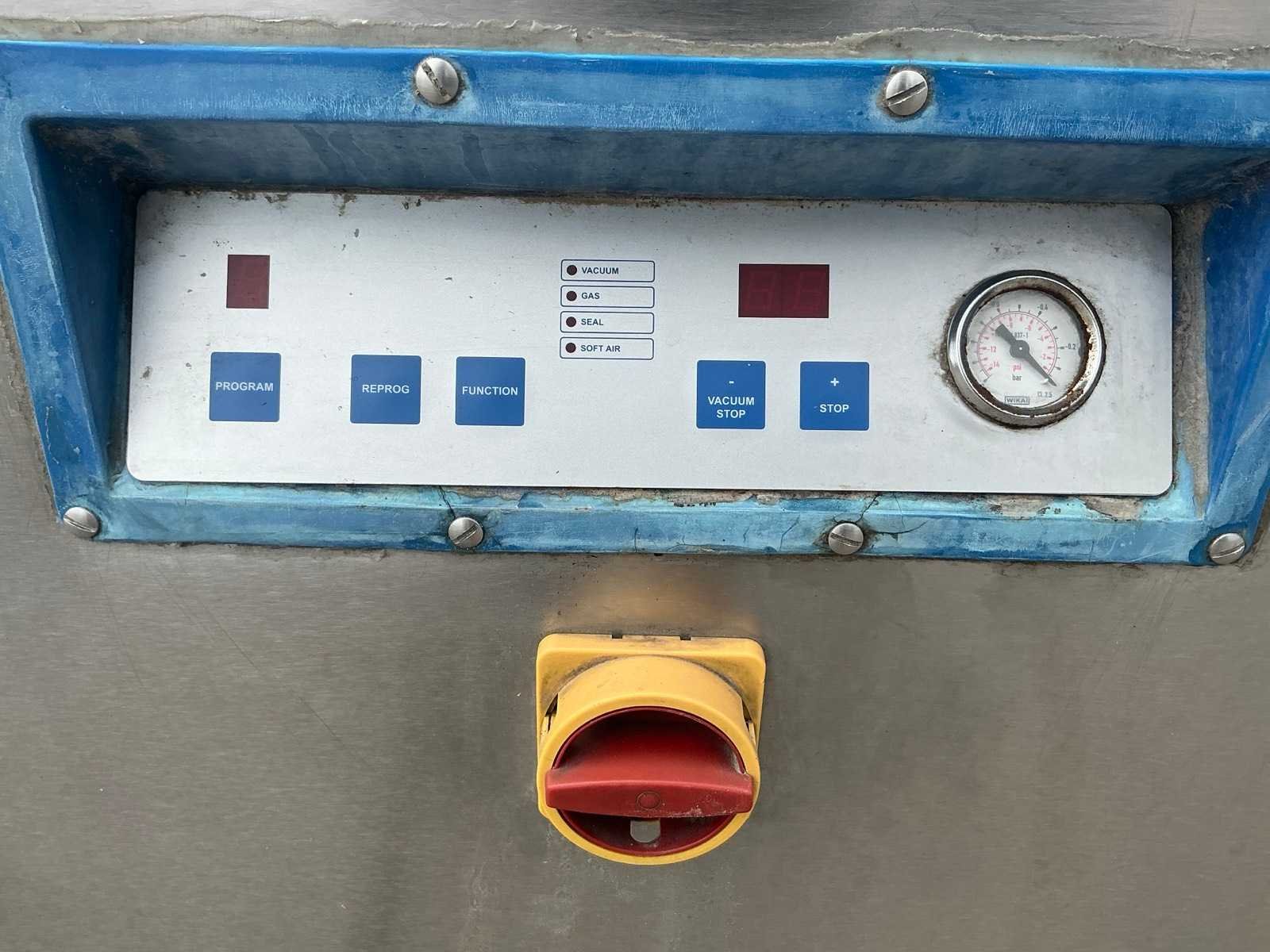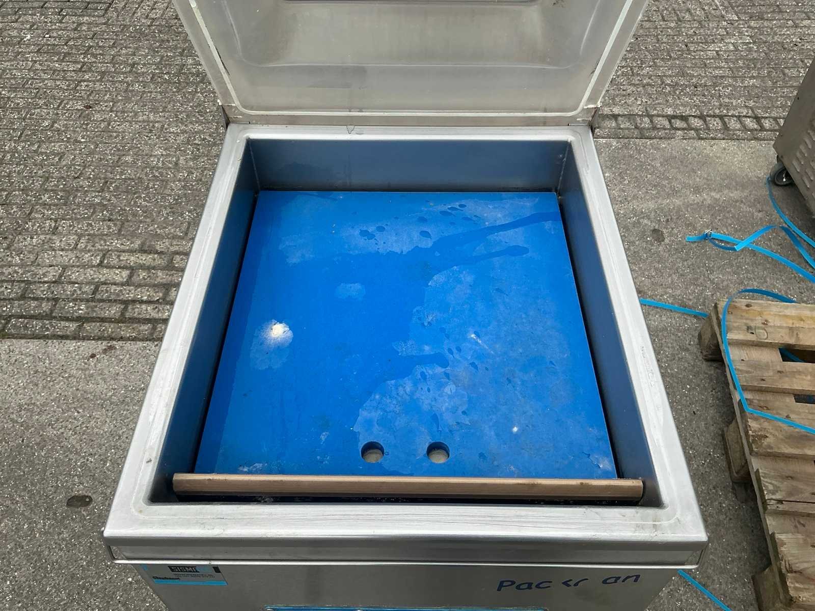 Merk: Stephan alvac Type: Packman Bouwjaar: 2012 Serienummer: 1022-5349 Aantal sealbalken: 1 Kamer afmeting l: 550mm Kamer afmeting b: 510mm Verrijdbaar: true Aansluiting: 400V Totale afmeting L: 800mm Totale afmeting Breedte: 600mm Totale afmeting Hoogte: 2200mm