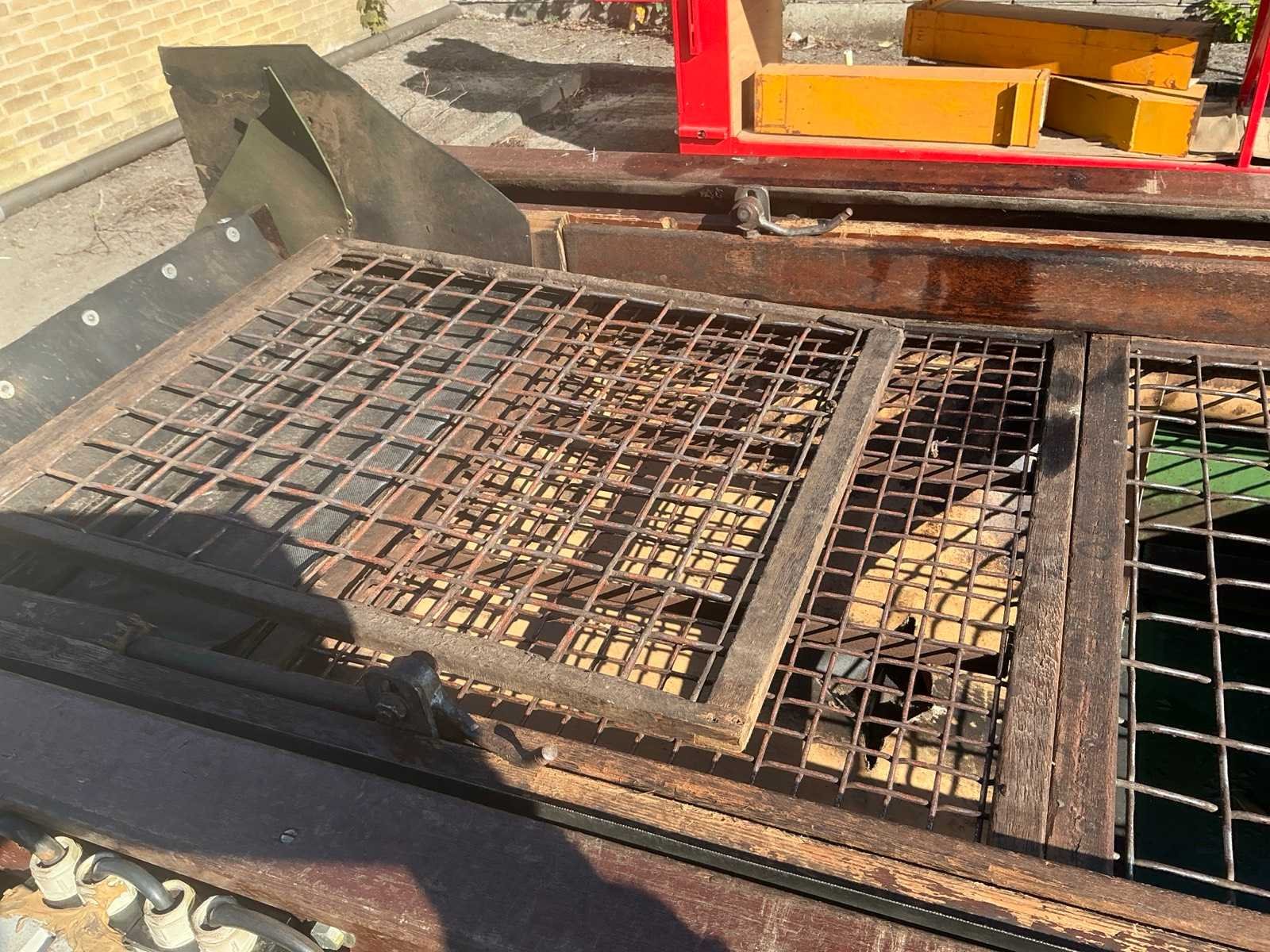 3 banden. Diverse sorteerzeven. Variërend van 25 tot 55mm. Merk: Schouten Totale afmeting L: 3950mm Totale afmeting Breedte: 1650mm Totale afmeting Hoogte: 1350mm