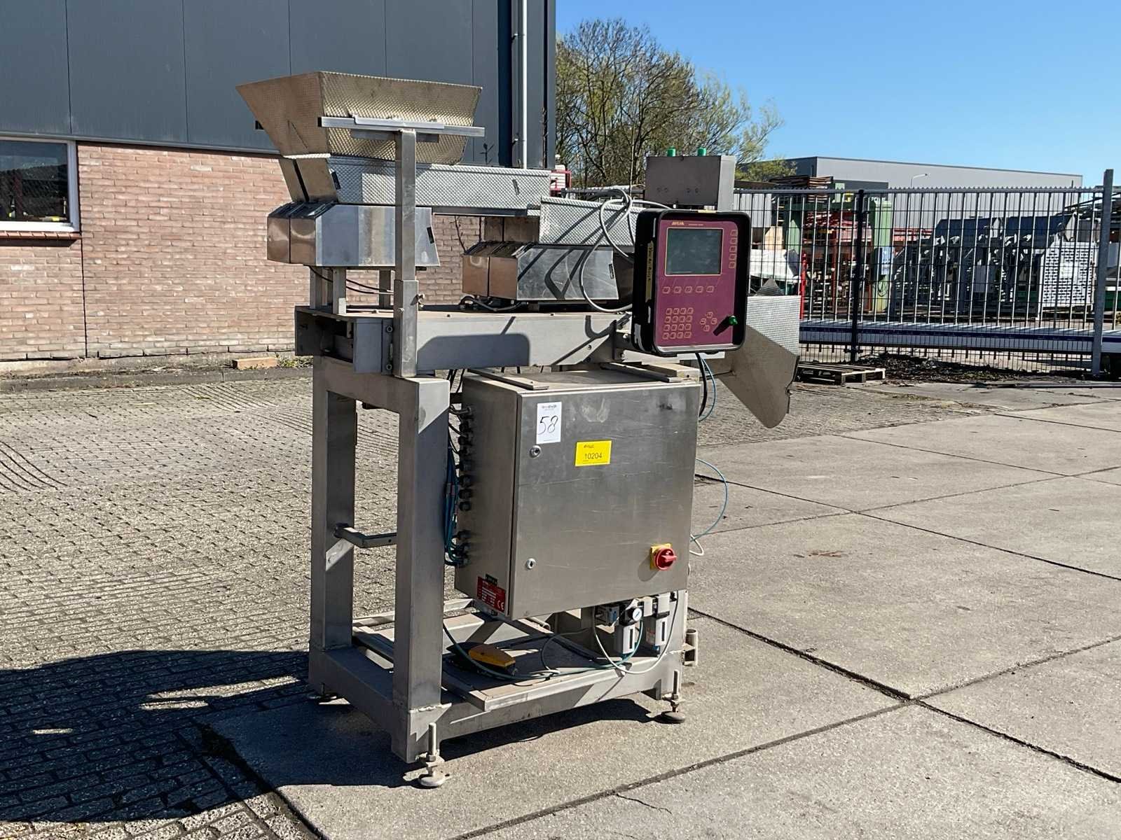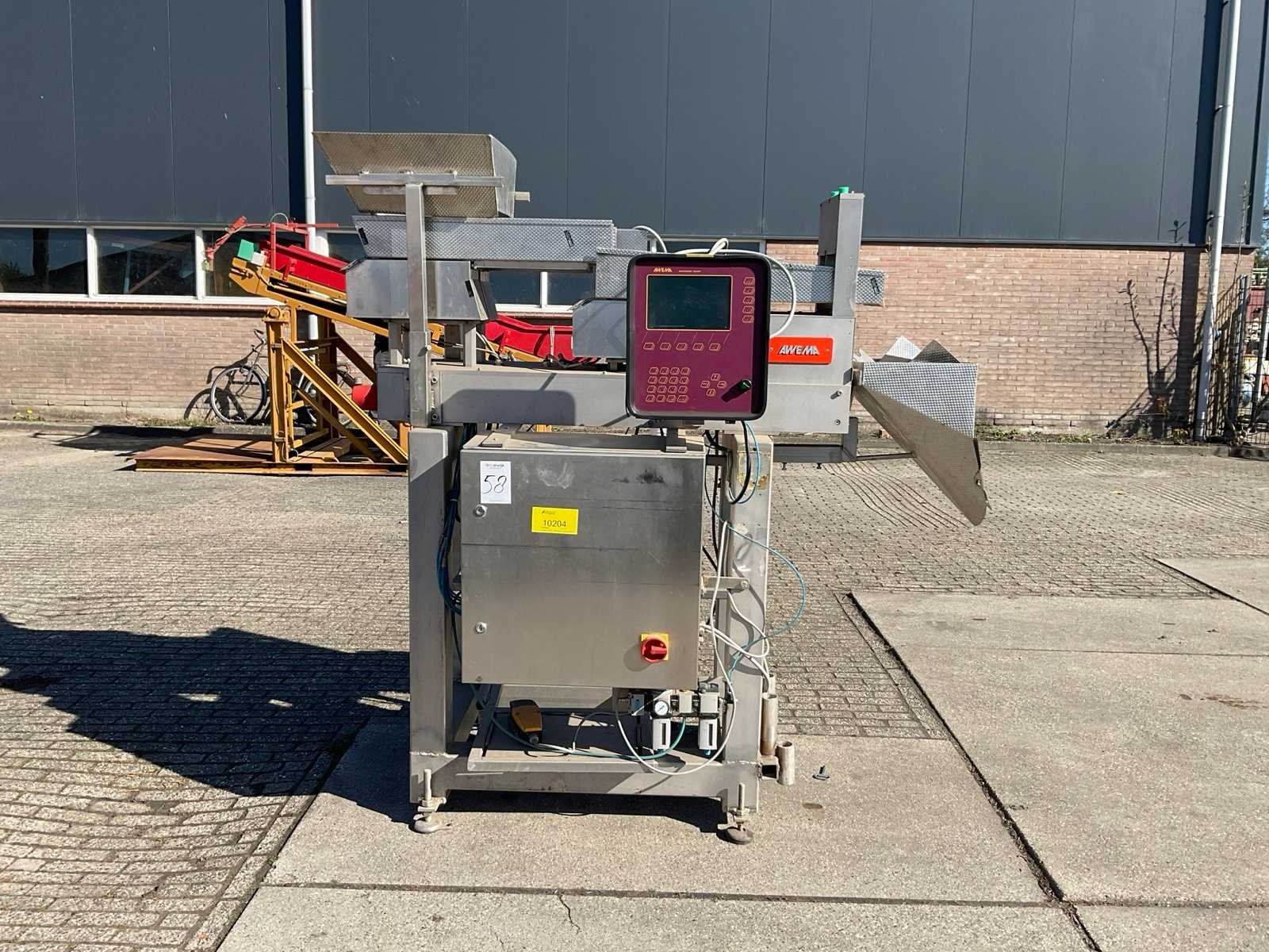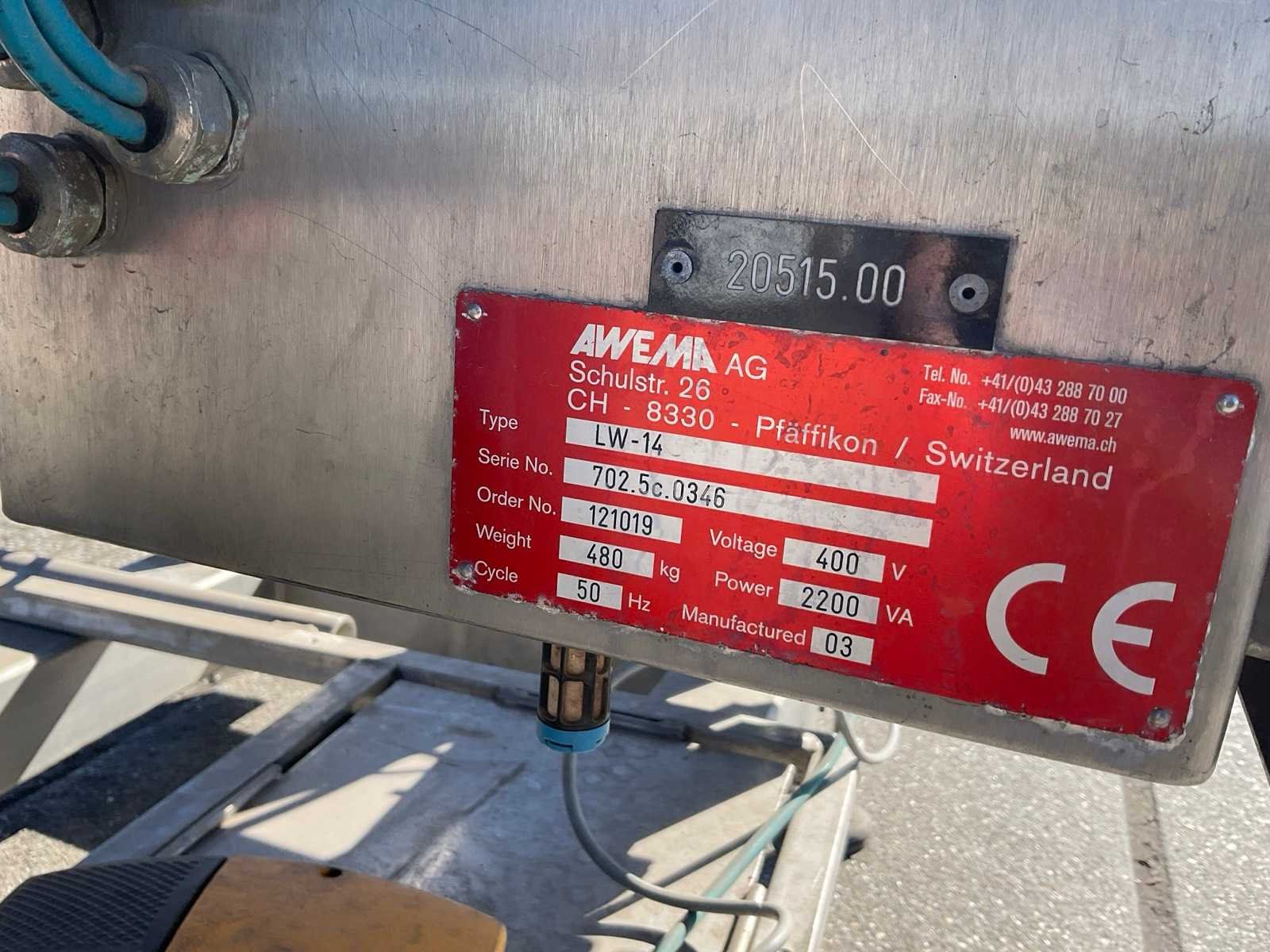 Rvs; kleinverpakker; cap. 1 - 5 kg; v.v. digitale uitlezing met tip-toetsbediening Merk: Awema Type: LW-14 Bouwjaar: 2003 Aansluiting: 400V Eigen gewicht: 480kg Totale afmeting L: 1800mm Totale afmeting Breedte: 900mm Totale afmeting Hoogte: 1900mm