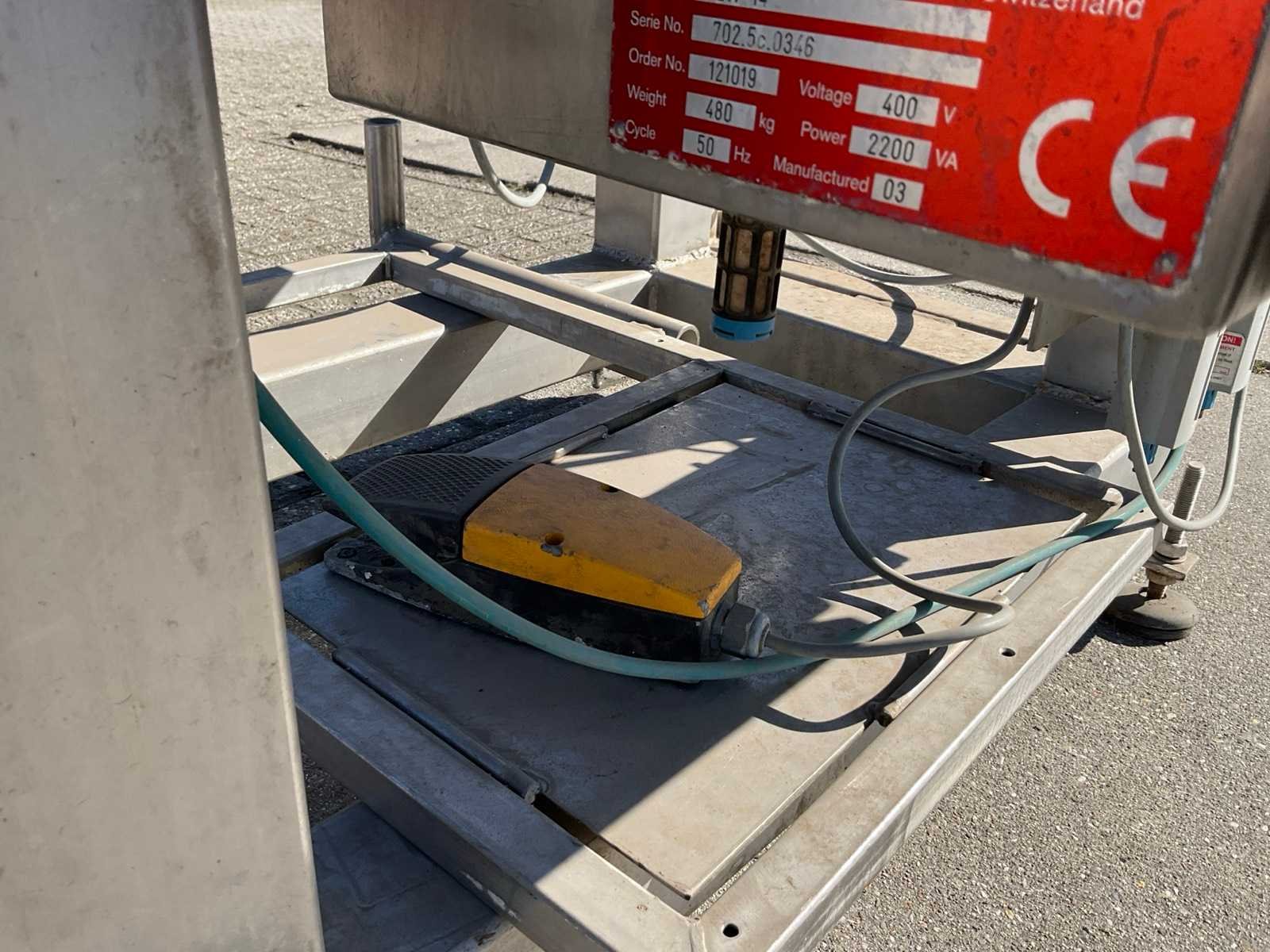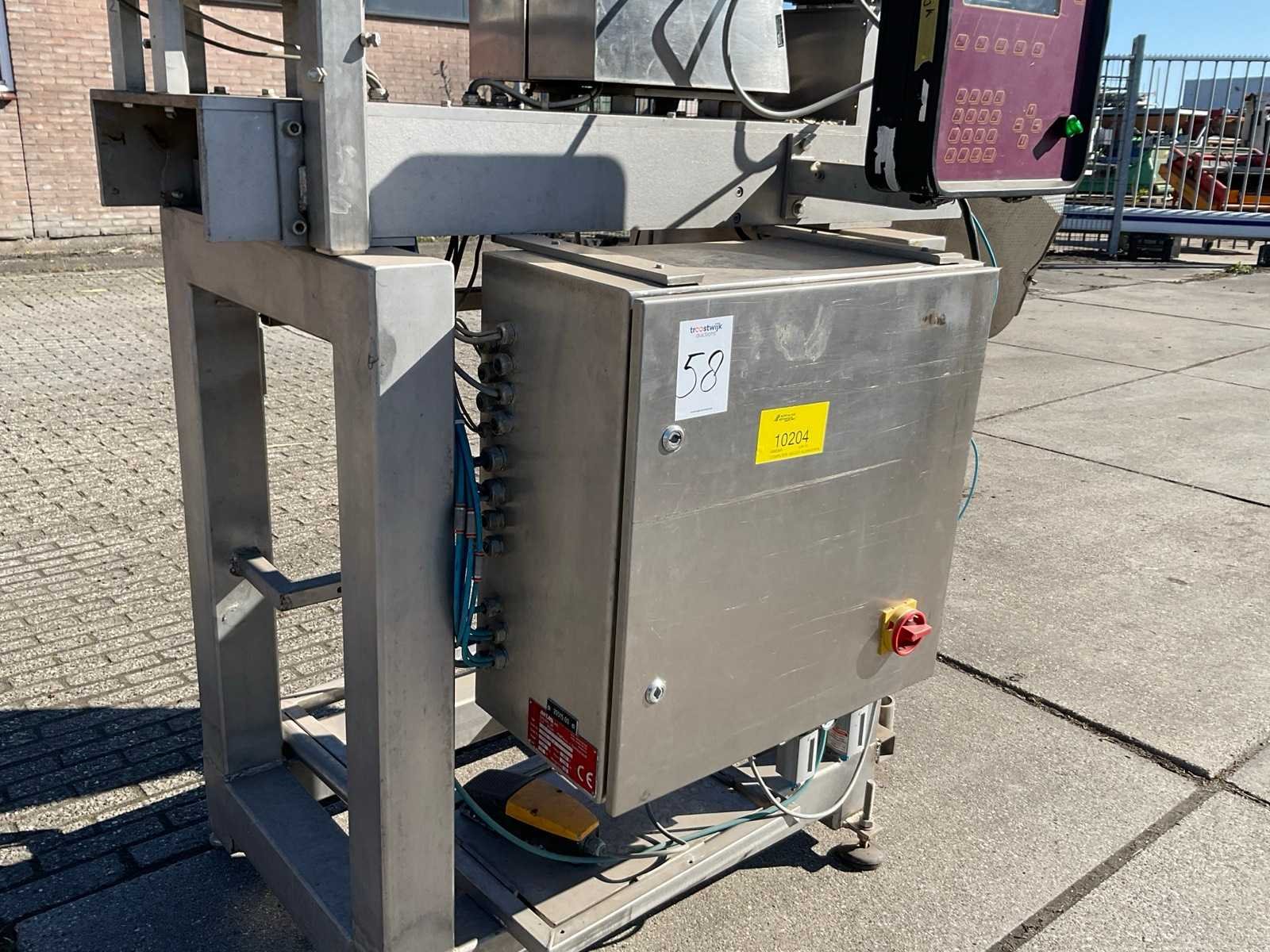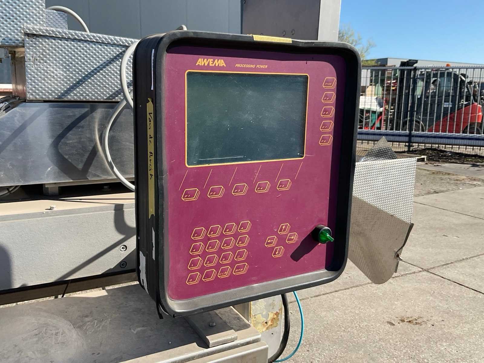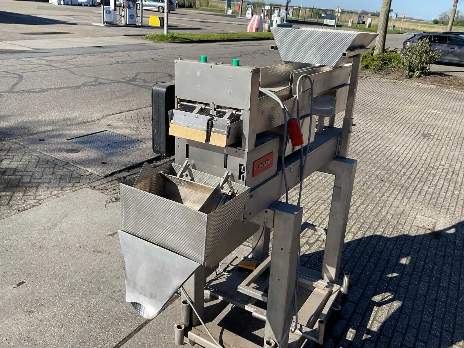 Rvs; kleinverpakker; cap. 1 - 5 kg; v.v. digitale uitlezing met tip-toetsbediening Merk: Awema Type: LW-14 Bouwjaar: 2003 Aansluiting: 400V Eigen gewicht: 480kg Totale afmeting L: 1800mm Totale afmeting Breedte: 900mm Totale afmeting Hoogte: 1900mm