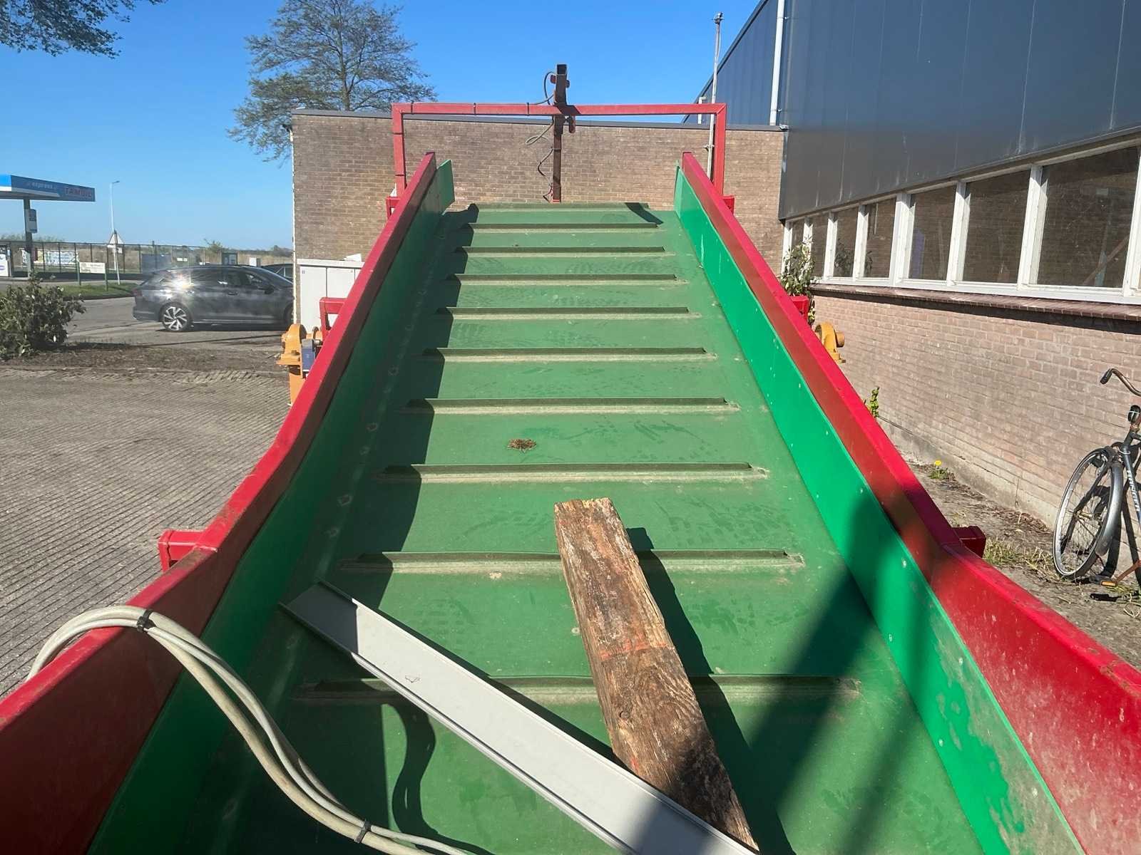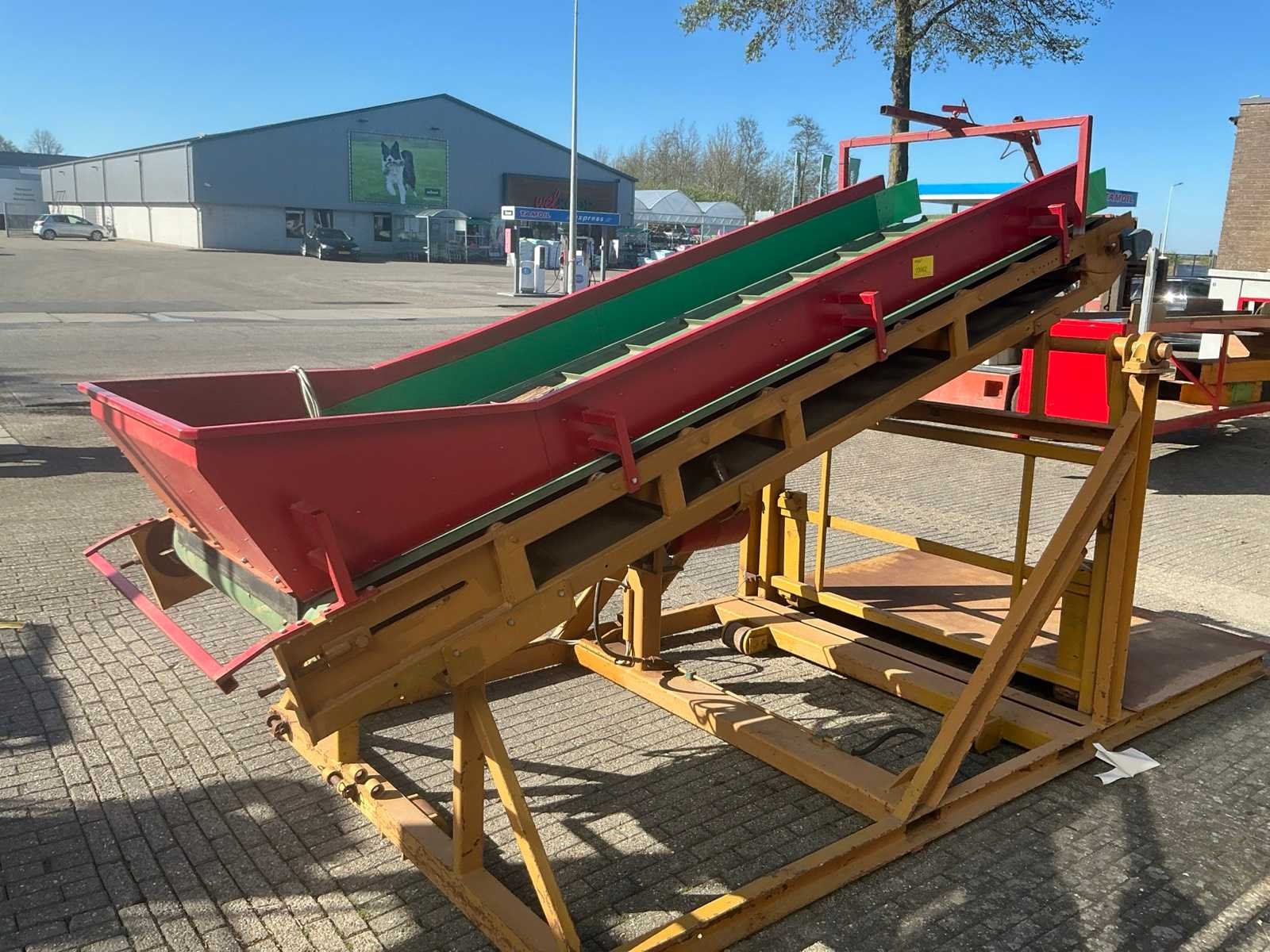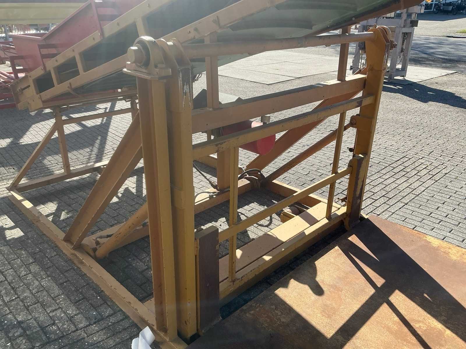 Hydraulische kistenkantel functie. Merk: Breston Transportband afm. l: 3100mm Transportband afm. b: 810mm Totale afmeting L: 4200mm Totale afmeting Breedte: 1820mm Totale afmeting Hoogte: 2250mm