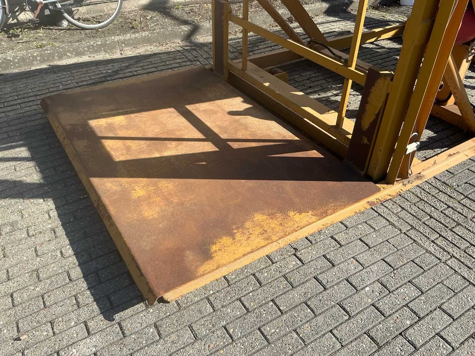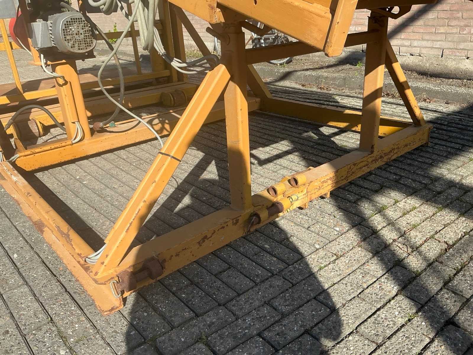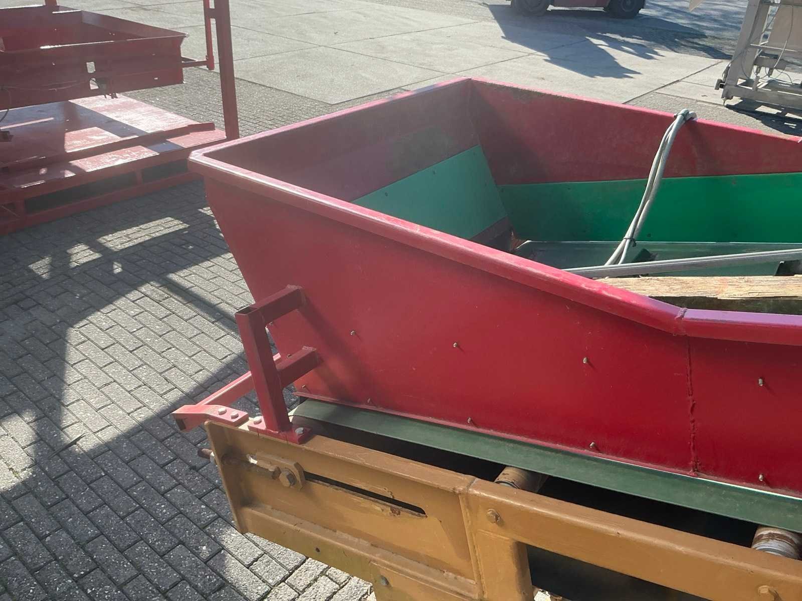 Hydraulische kistenkantel functie. Merk: Breston Transportband afm. l: 3100mm Transportband afm. b: 810mm Totale afmeting L: 4200mm Totale afmeting Breedte: 1820mm Totale afmeting Hoogte: 2250mm