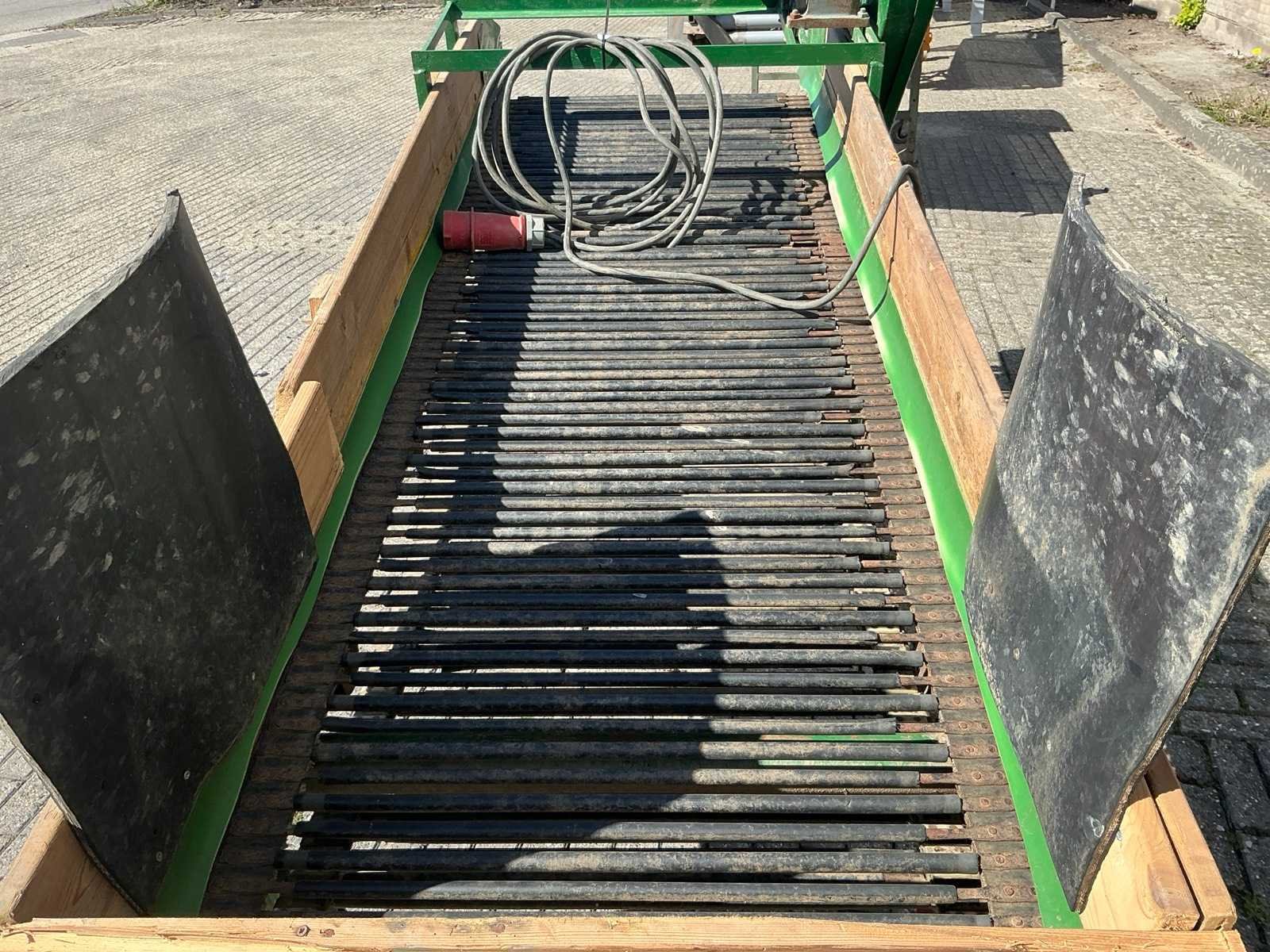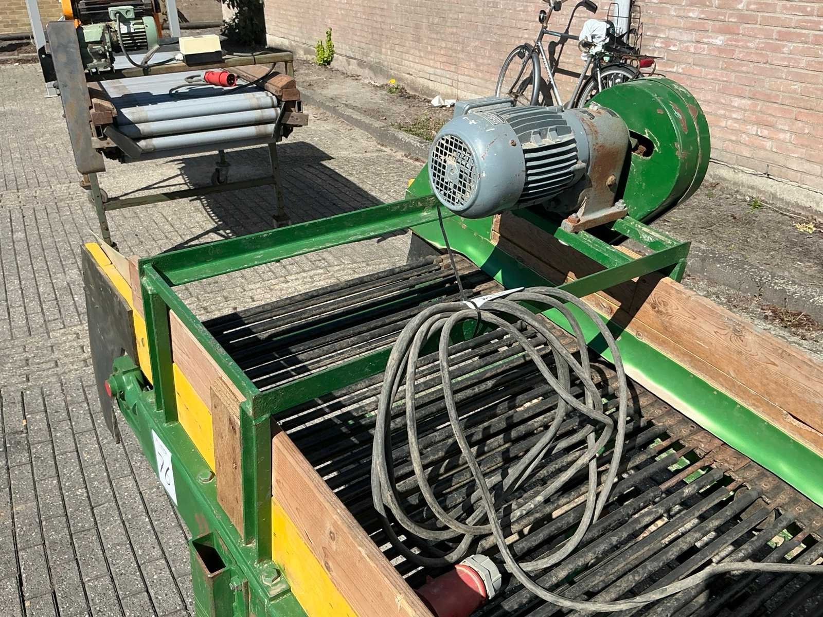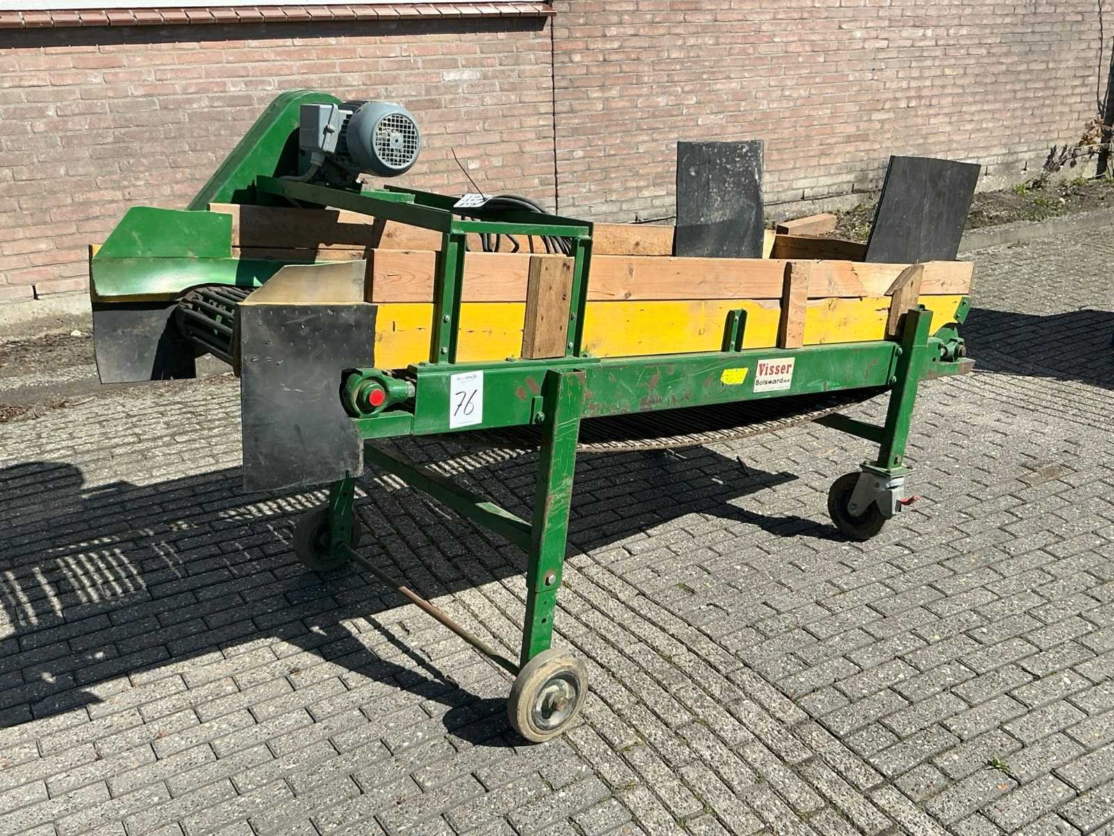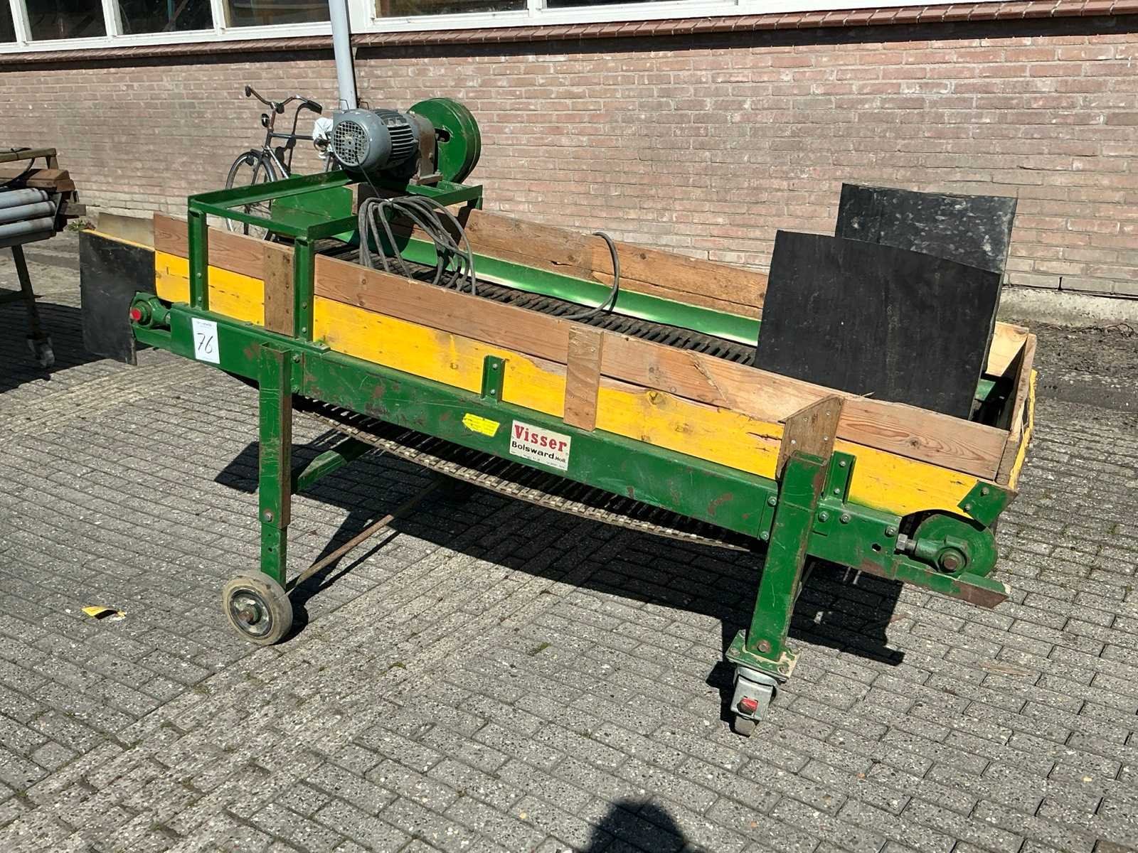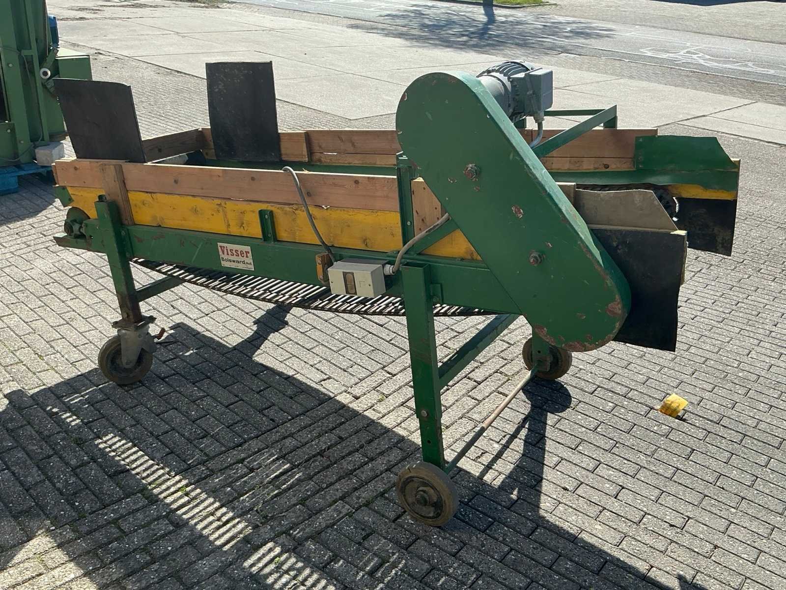 Maas spijlen circa 13mm. Merk: Visser Band afm. b: 680mm Band afm. l: 2100mm Elektrisch aangedreven: true Aansluiting: 400V Totale afmeting L: 2300mm Totale afmeting Breedte: 900mm Totale afmeting Hoogte: 1290mm