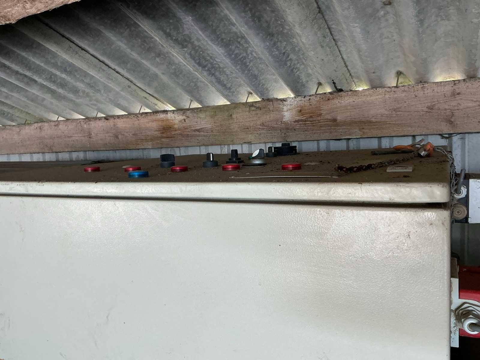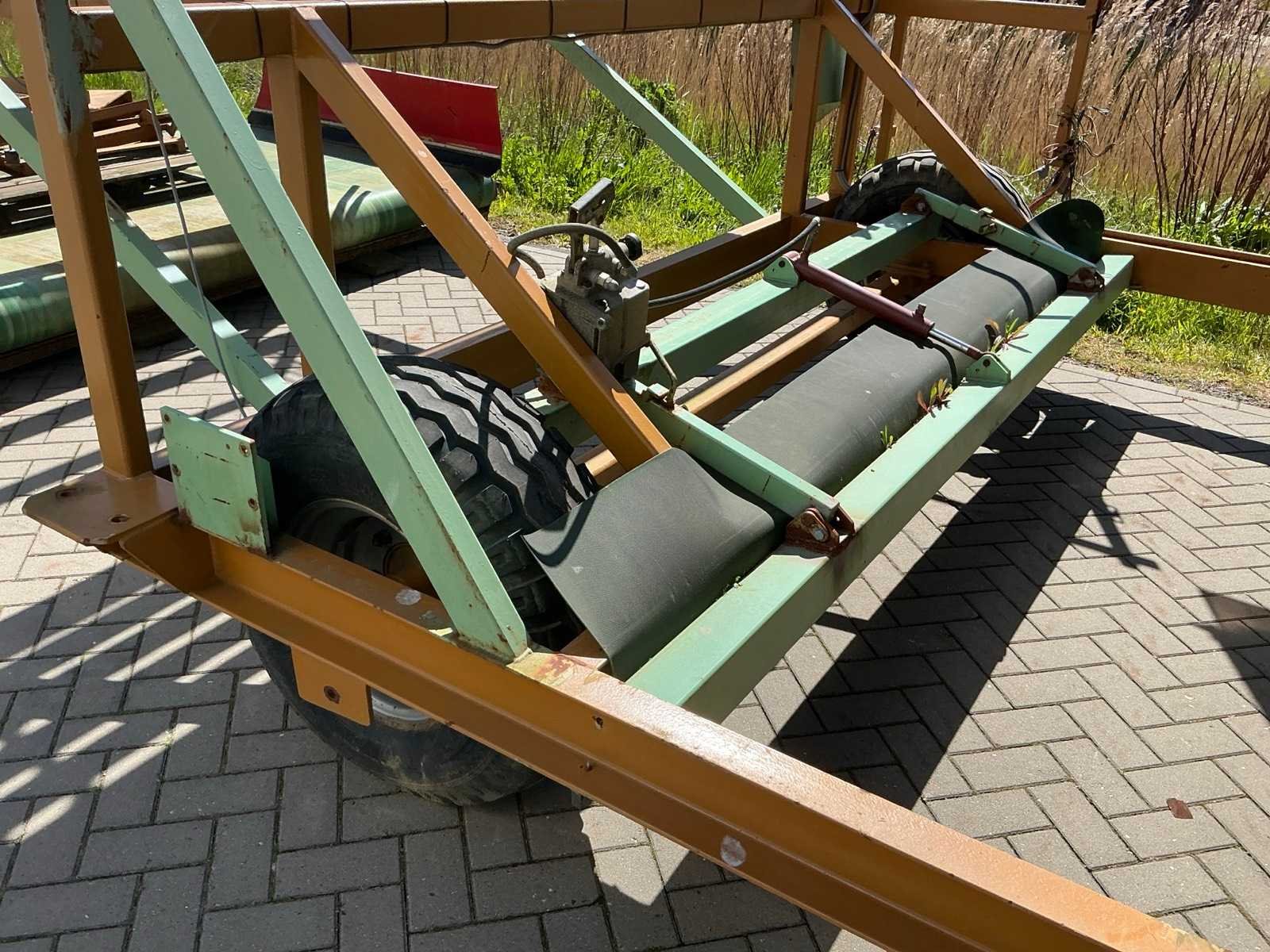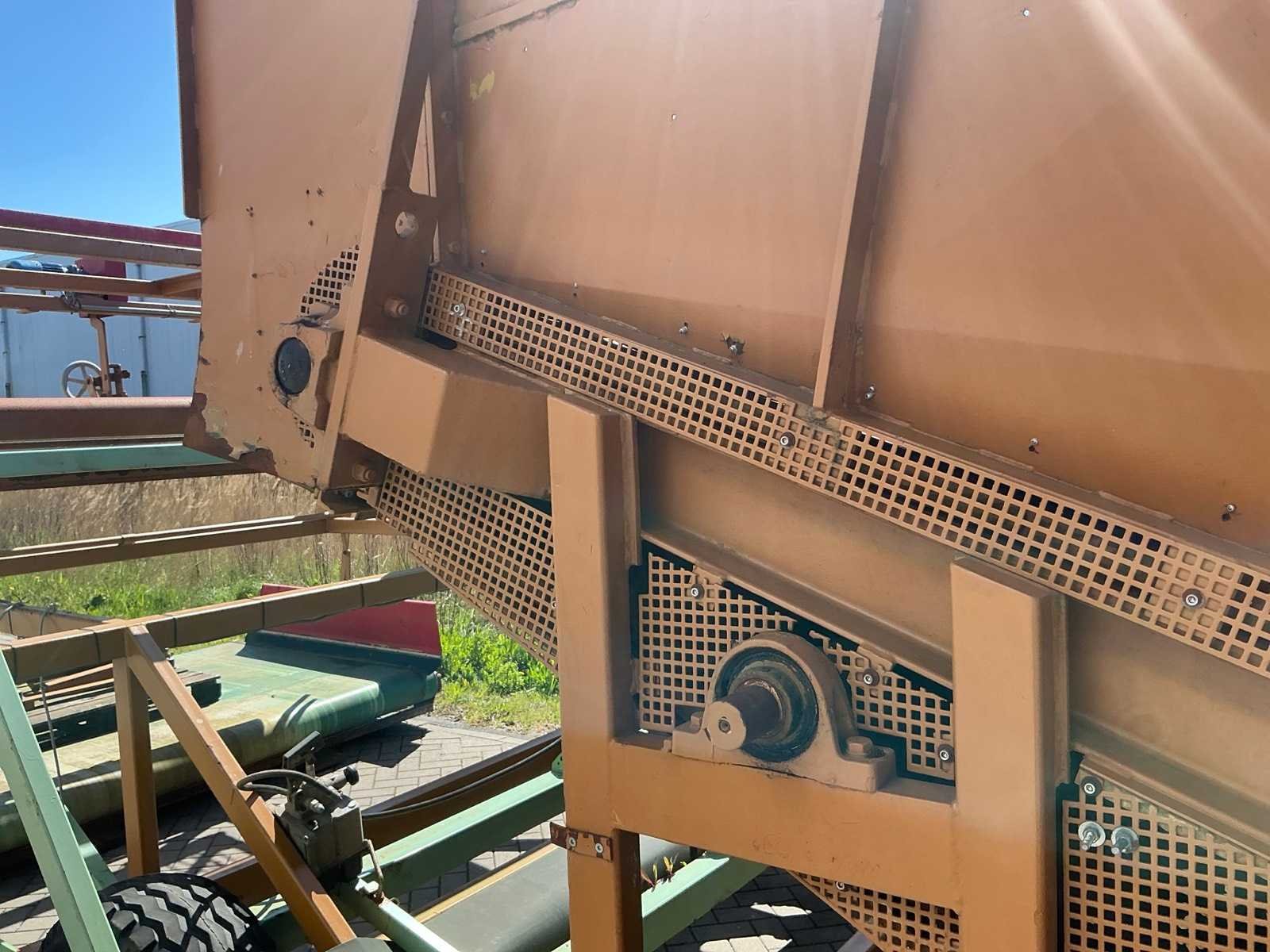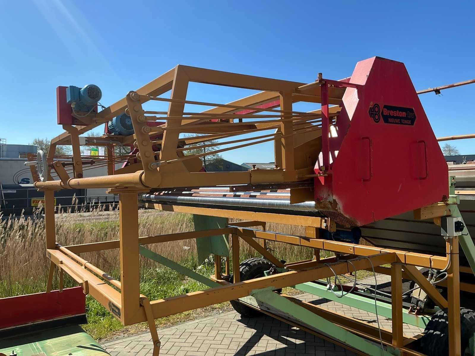 Breedte bunker: 3200mm. Voorzien van 8 rollen Ø 90mm. 1x Band van (LxB:1780x2980mm) en 1x breedte band: 640mm, lengte: 375mm. Met besturingskast. Merk: Breston Transportband afm. b: 2900mm Totale afmeting L: 8800mm Totale afmeting Breedte: 3550mm Totale afmeting Hoogte: 3350mm