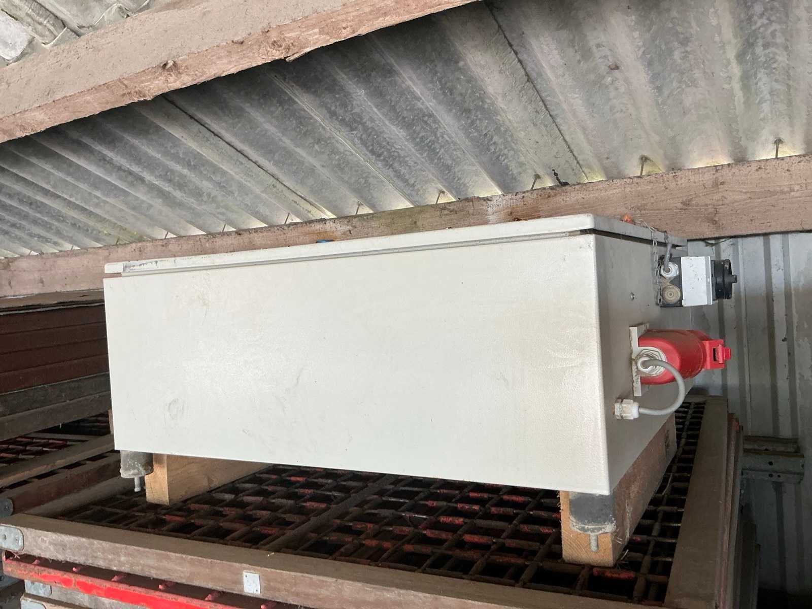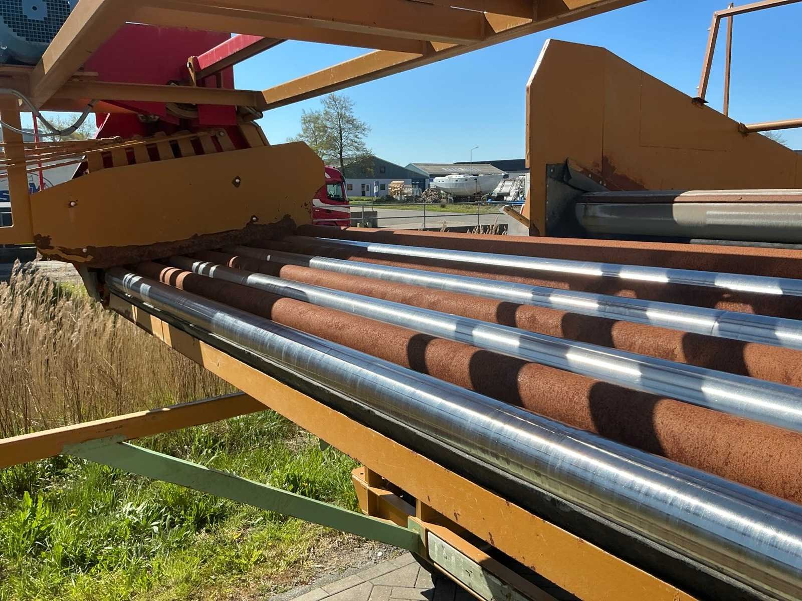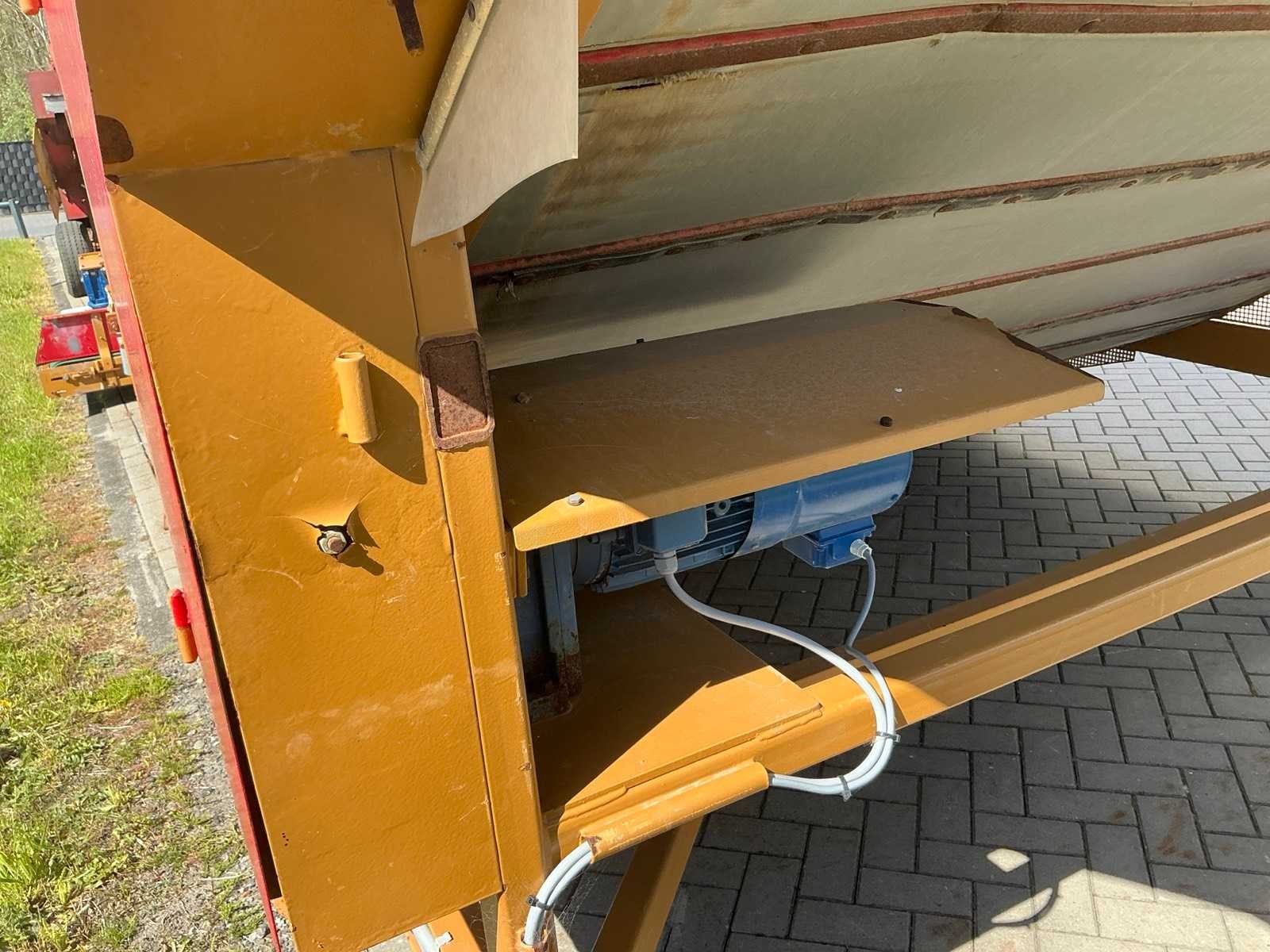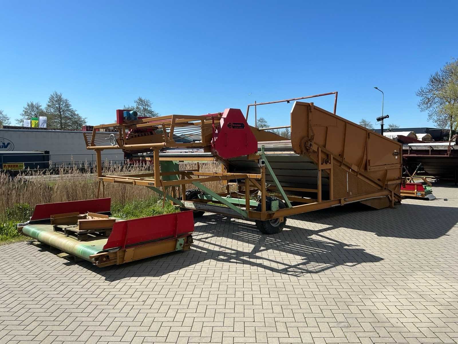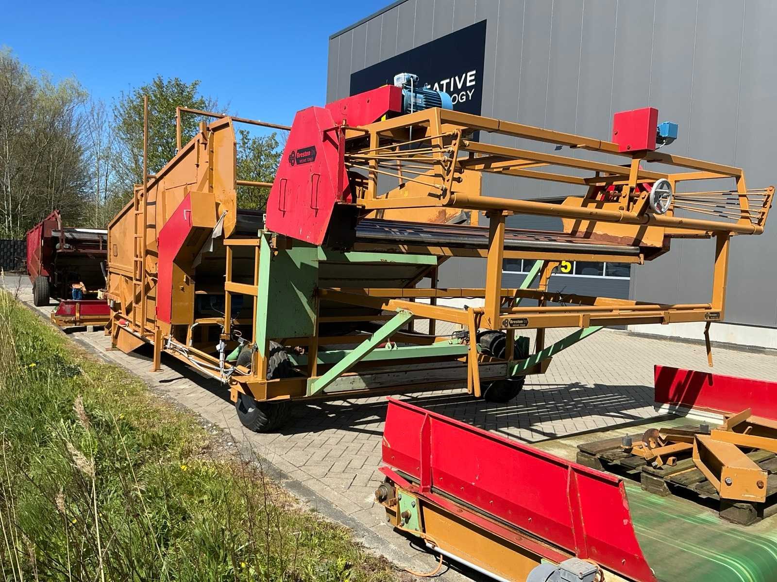 Breedte bunker: 3200mm. Voorzien van 8 rollen Ø 90mm. 1x Band van (LxB:1780x2980mm) en 1x breedte band: 640mm, lengte: 375mm. Met besturingskast. Merk: Breston Transportband afm. b: 2900mm Totale afmeting L: 8800mm Totale afmeting Breedte: 3550mm Totale afmeting Hoogte: 3350mm