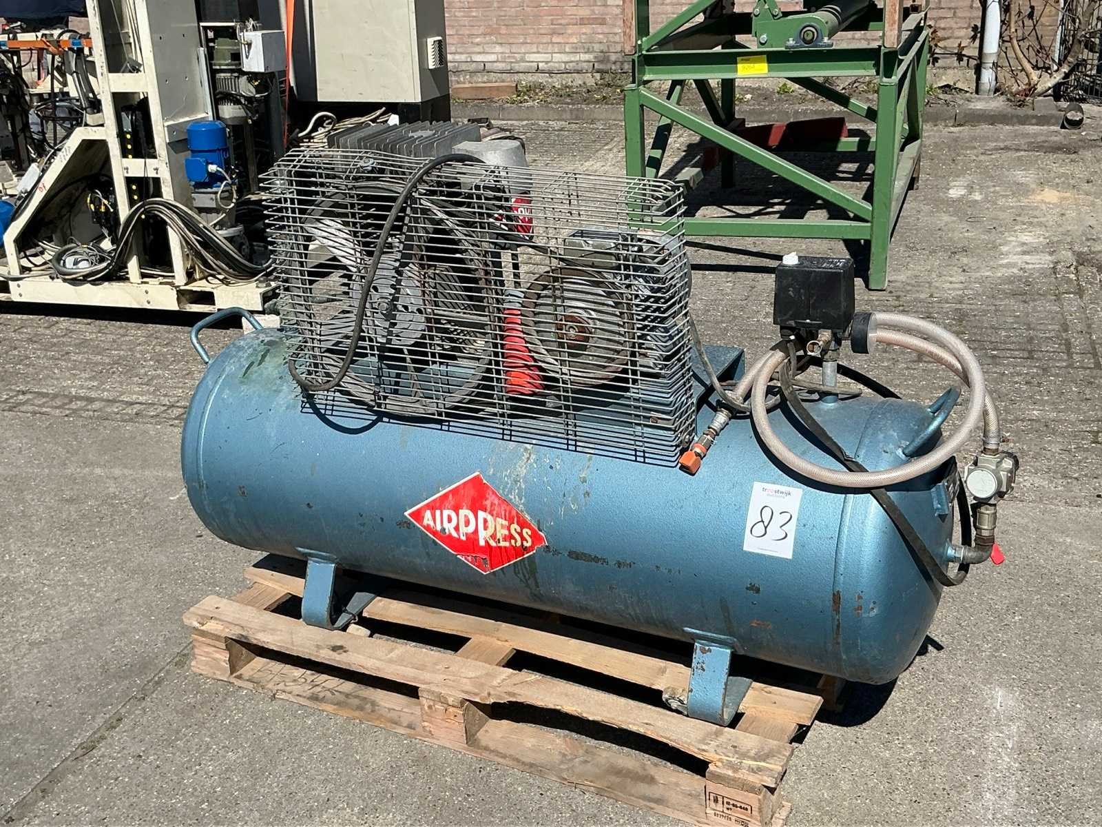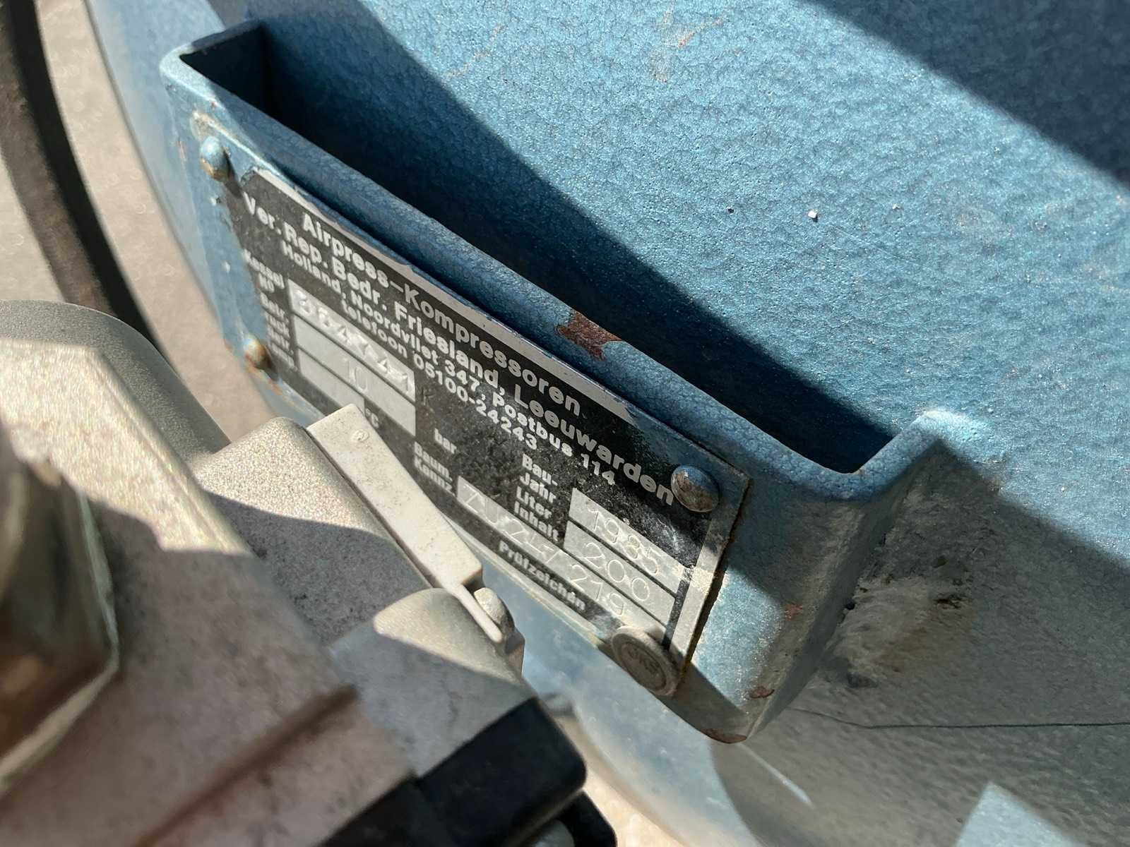 Merk: Airpress Bouwjaar: 1985 Serienummer: 364741 Buffertank inhoud: 200l Aansluiting: 400V Totale afmeting L: 1520mm Totale afmeting Breedte: 580mm Totale afmeting Hoogte: 900mm