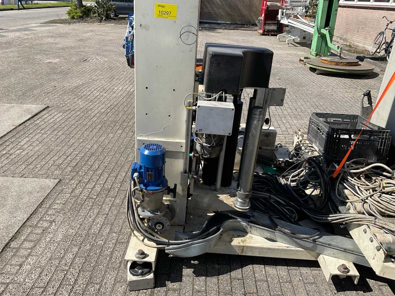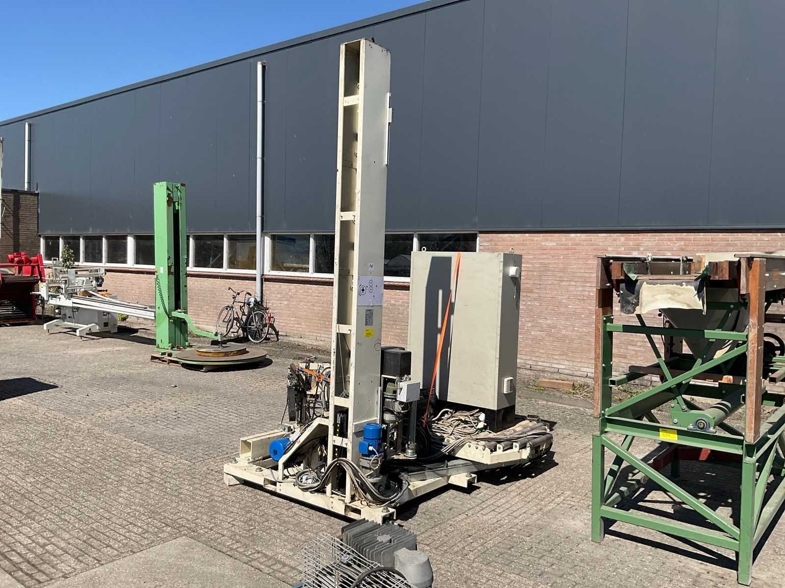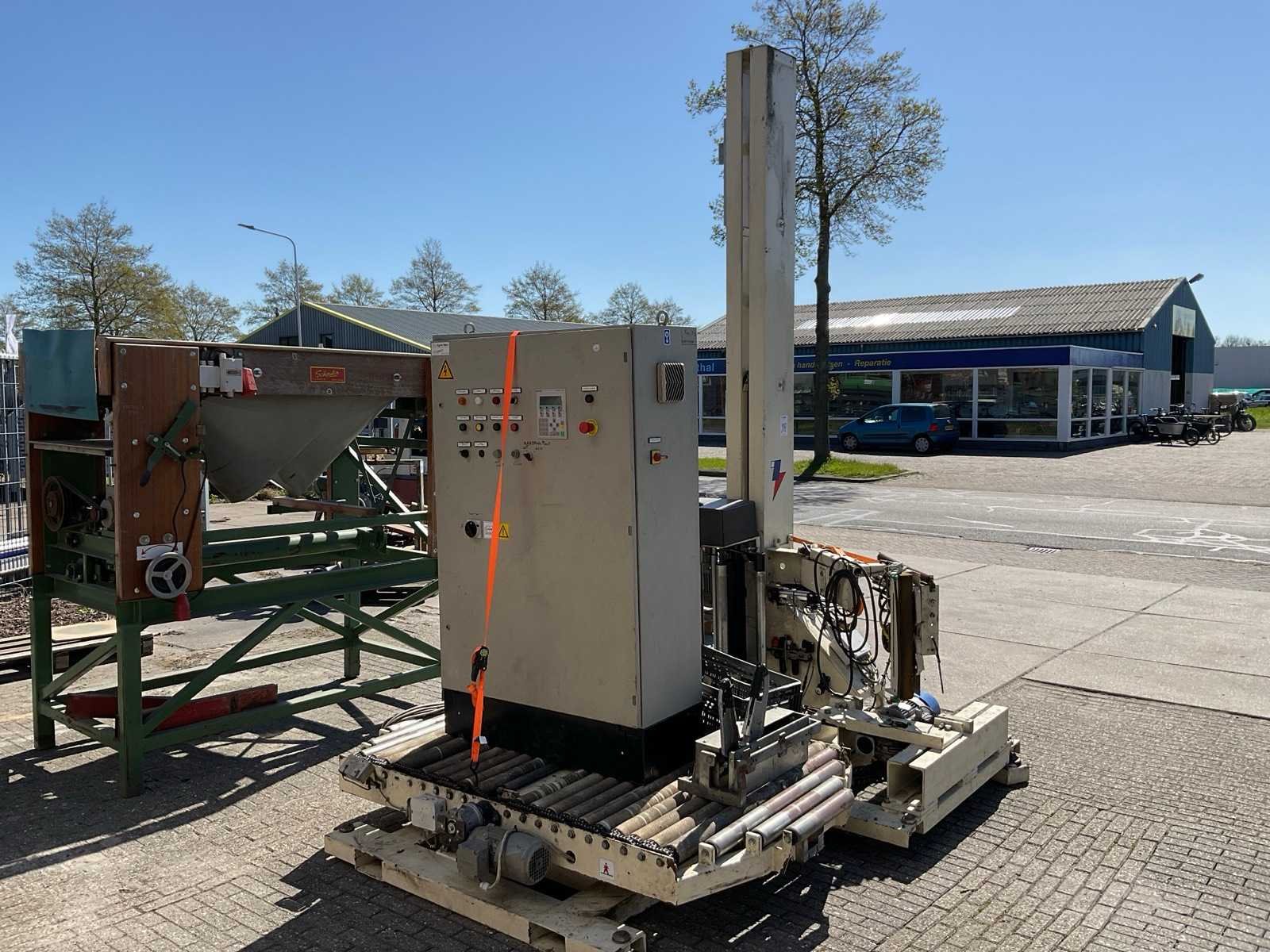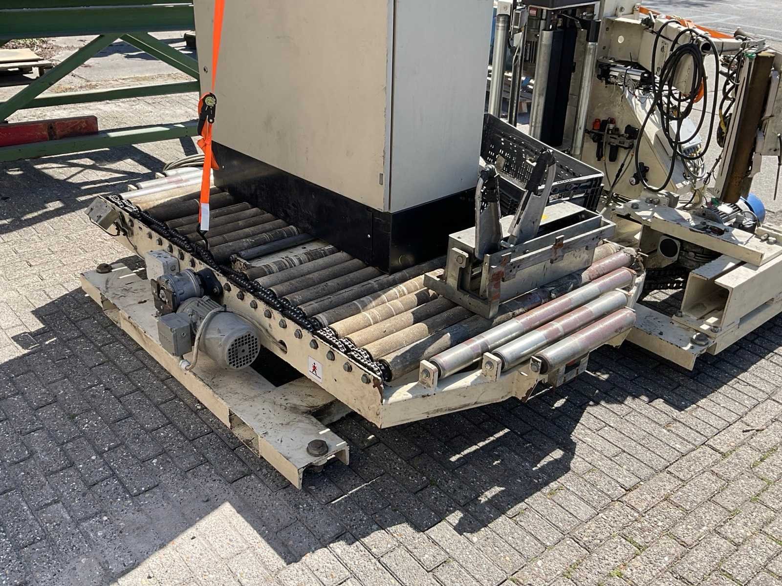 Automaat; v.v. rollenbaan; baan afm. ca. 1500x1100 mm; incl. schakelkast en divers Merk: Robopac Type: Rotoplat 2000A Bouwjaar: 2002 Aansluiting: 400V Eigen gewicht: 1600kg Totale afmeting L: 1750mm Totale afmeting Breedte: 2500mm Totale afmeting Hoogte: 3450mm