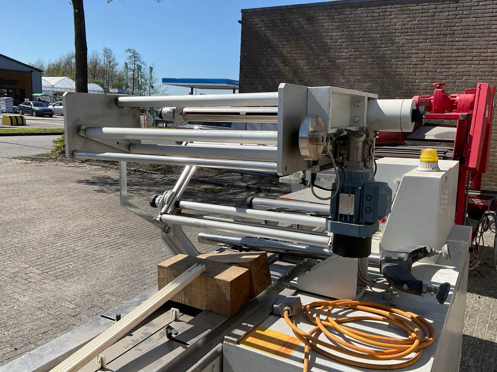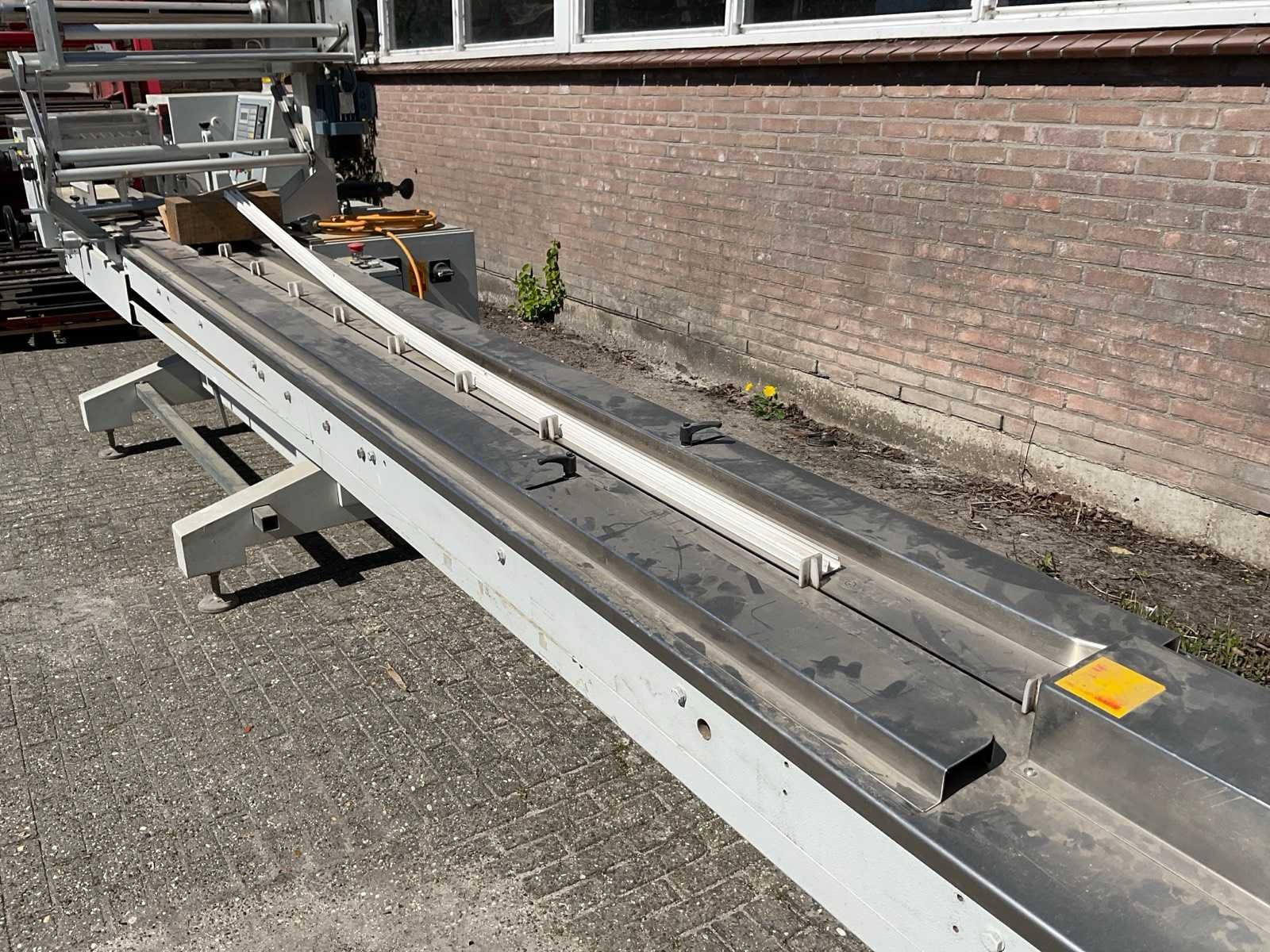 Max. product formaat 480 x 200 x 120 mm; min. product formaat 50 x 5 x 1 mm; foliebreedte 500 mm Merk: Schib Packaging Type: CO50 Bouwjaar: 2009 Aansluiting: 380V Totale afmeting L: 5000mm Totale afmeting Breedte: 1200mm Totale afmeting Hoogte: 1600mm
