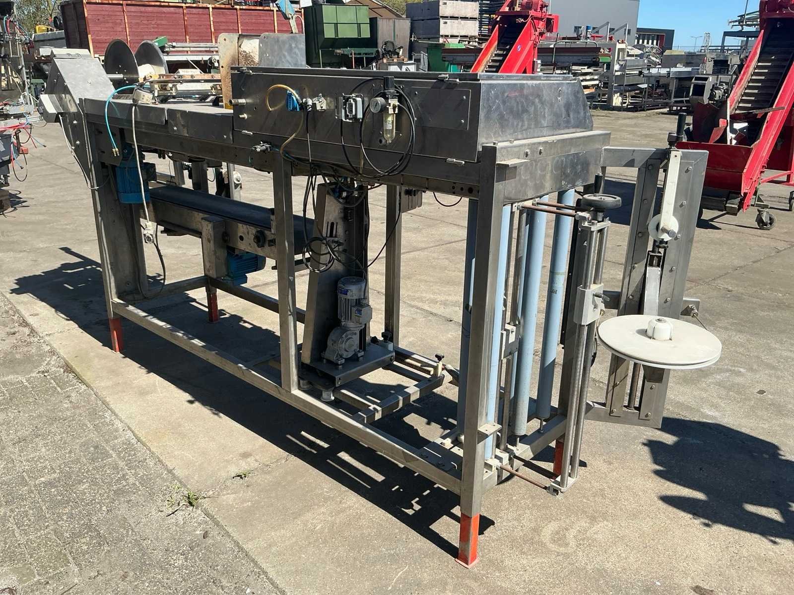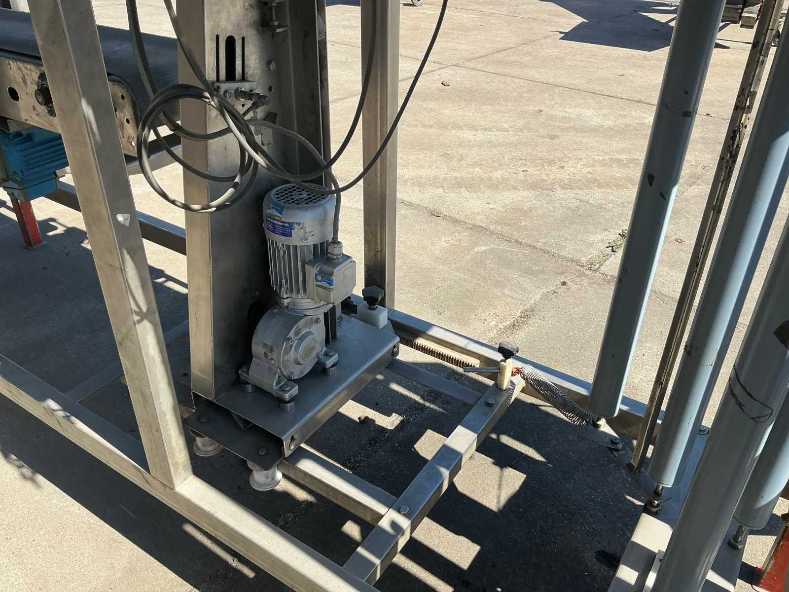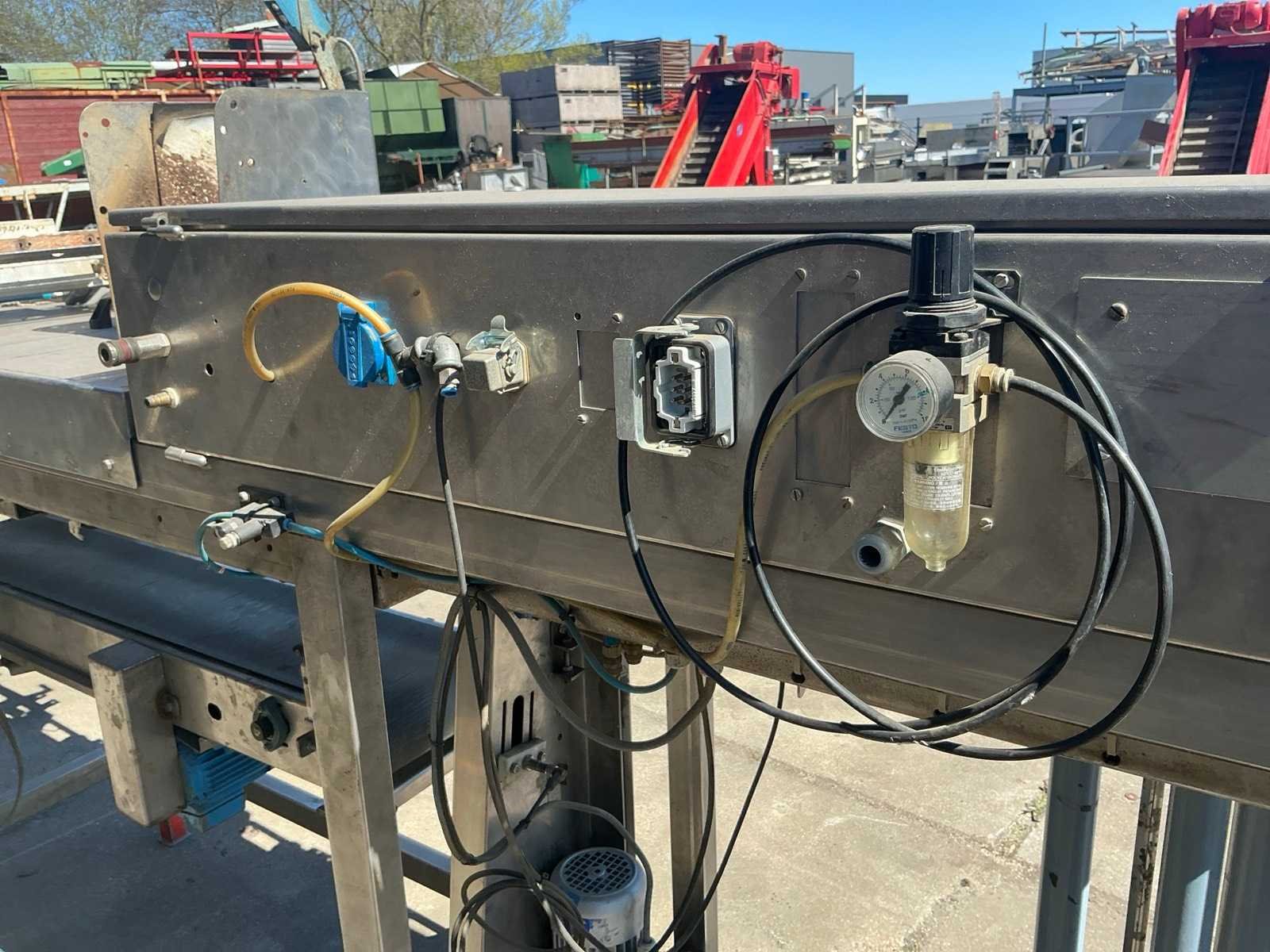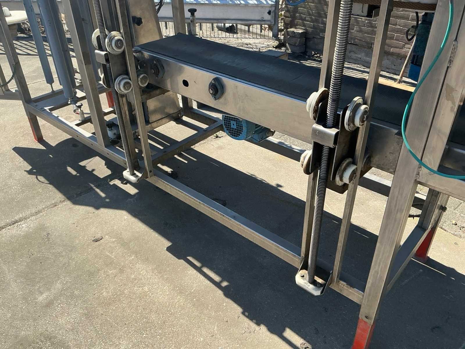 RVS, breedte band: 250mm. Merk: Gillenkirch Serienummer: 673/00 Totale afmeting L: 3500mm Totale afmeting Breedte: 850mm Totale afmeting Hoogte: 1800mm