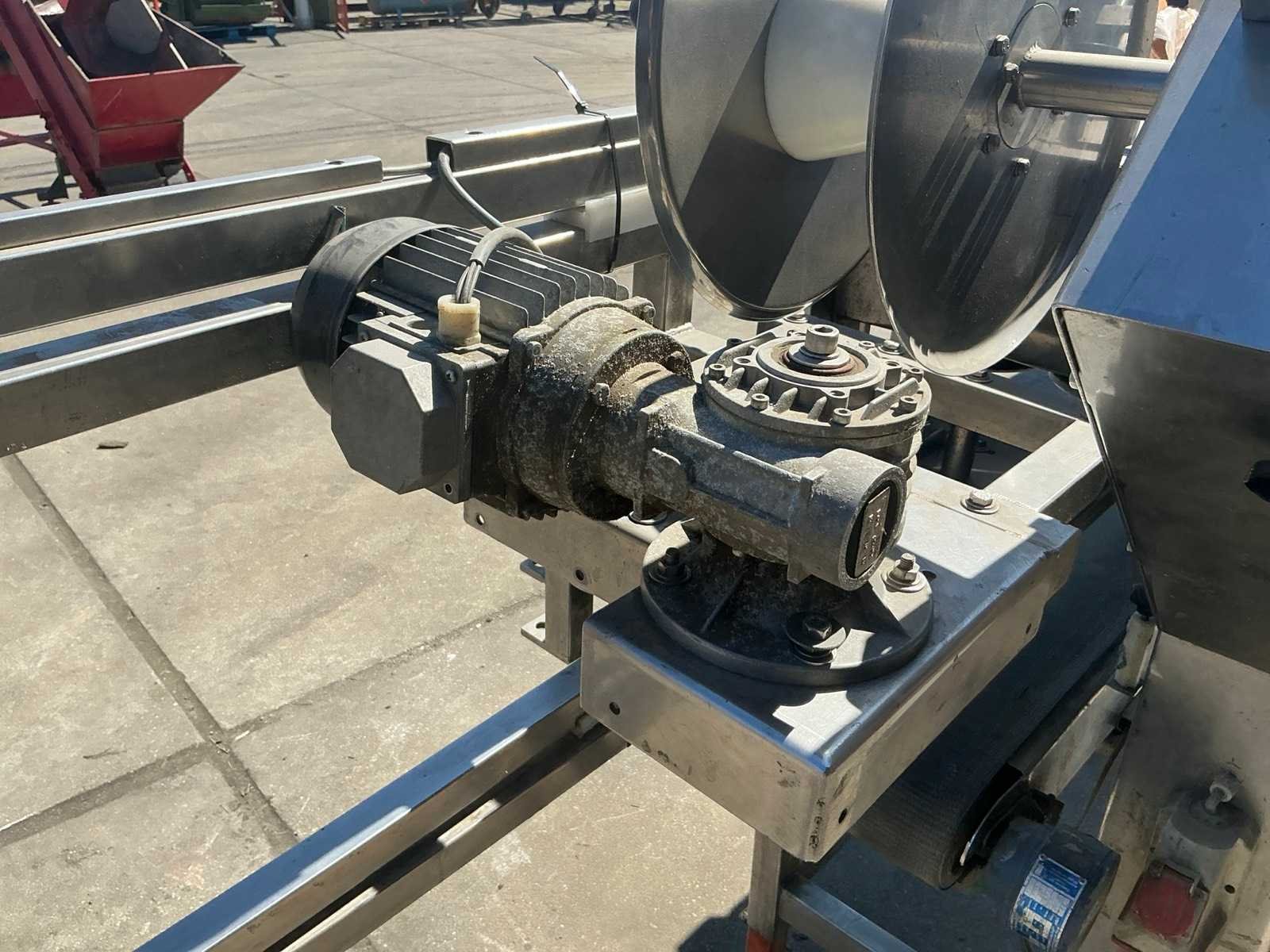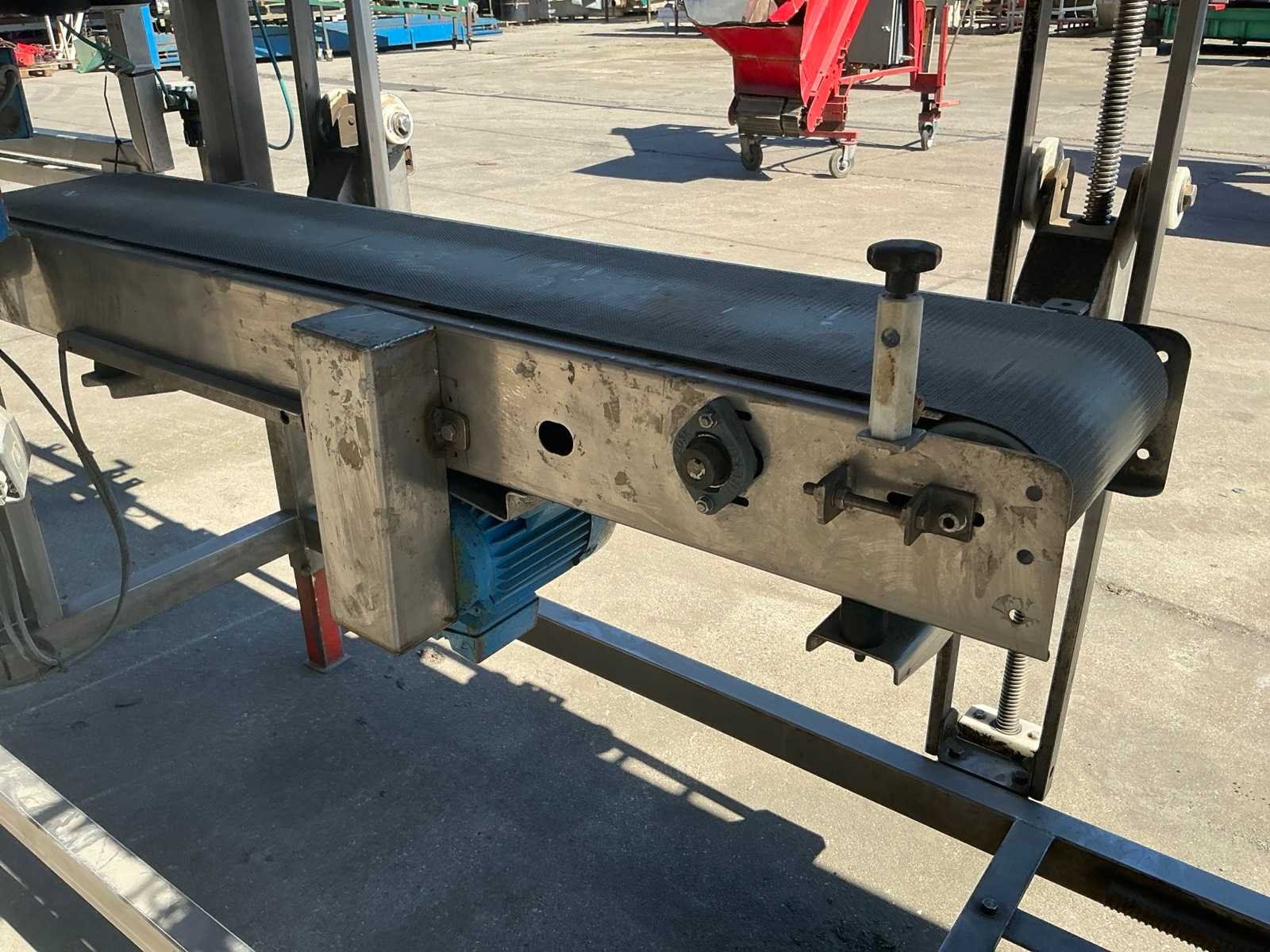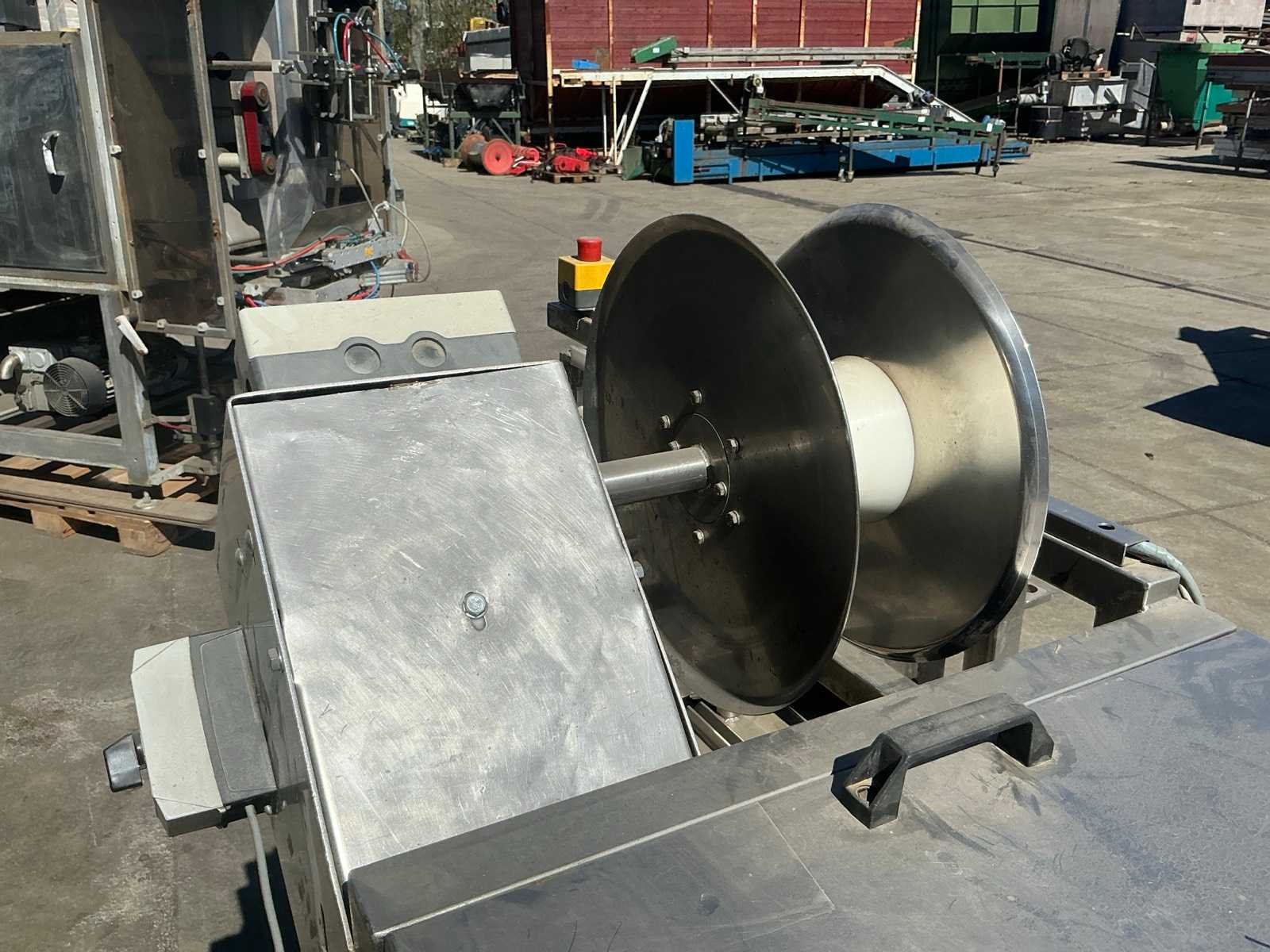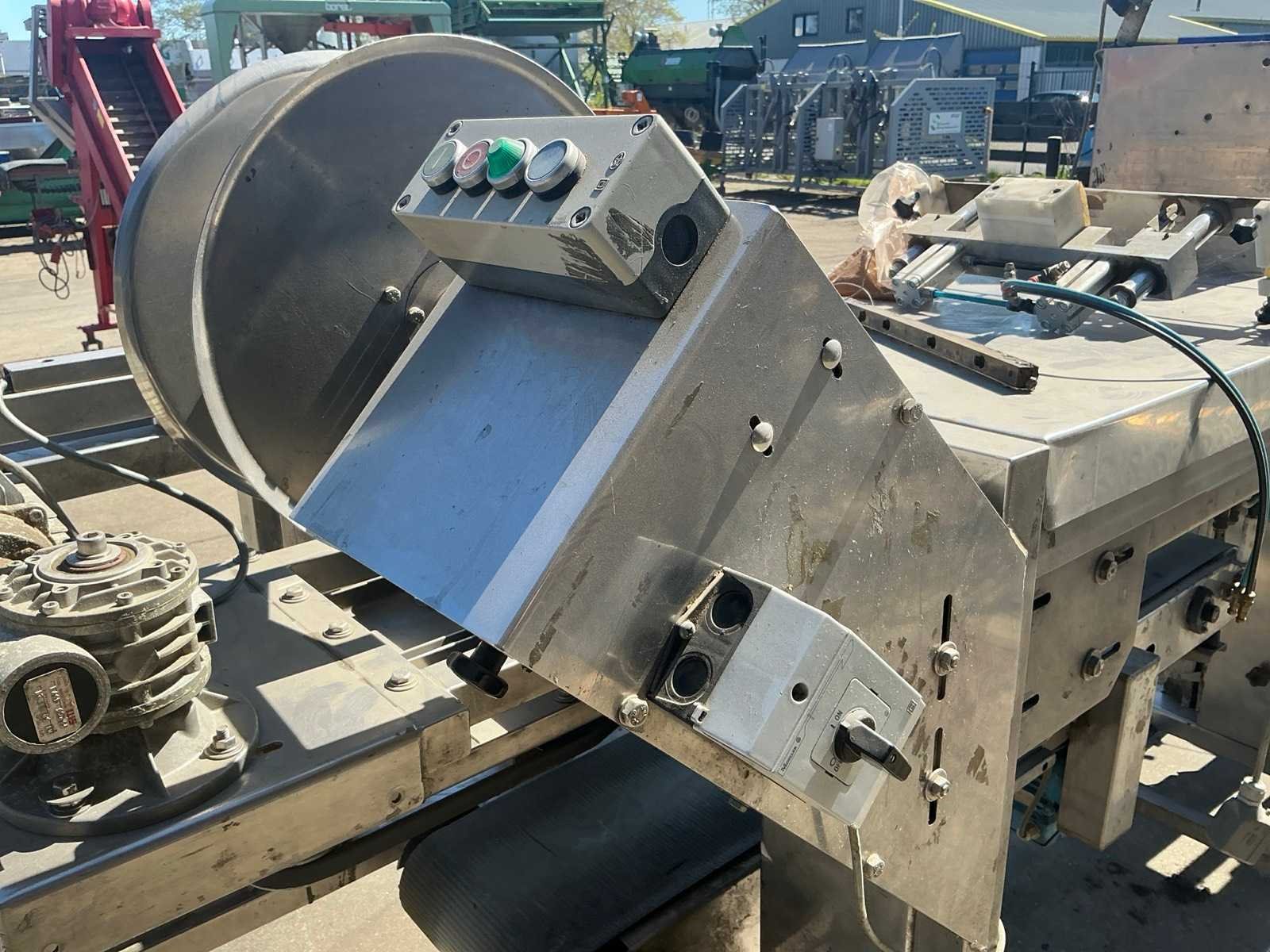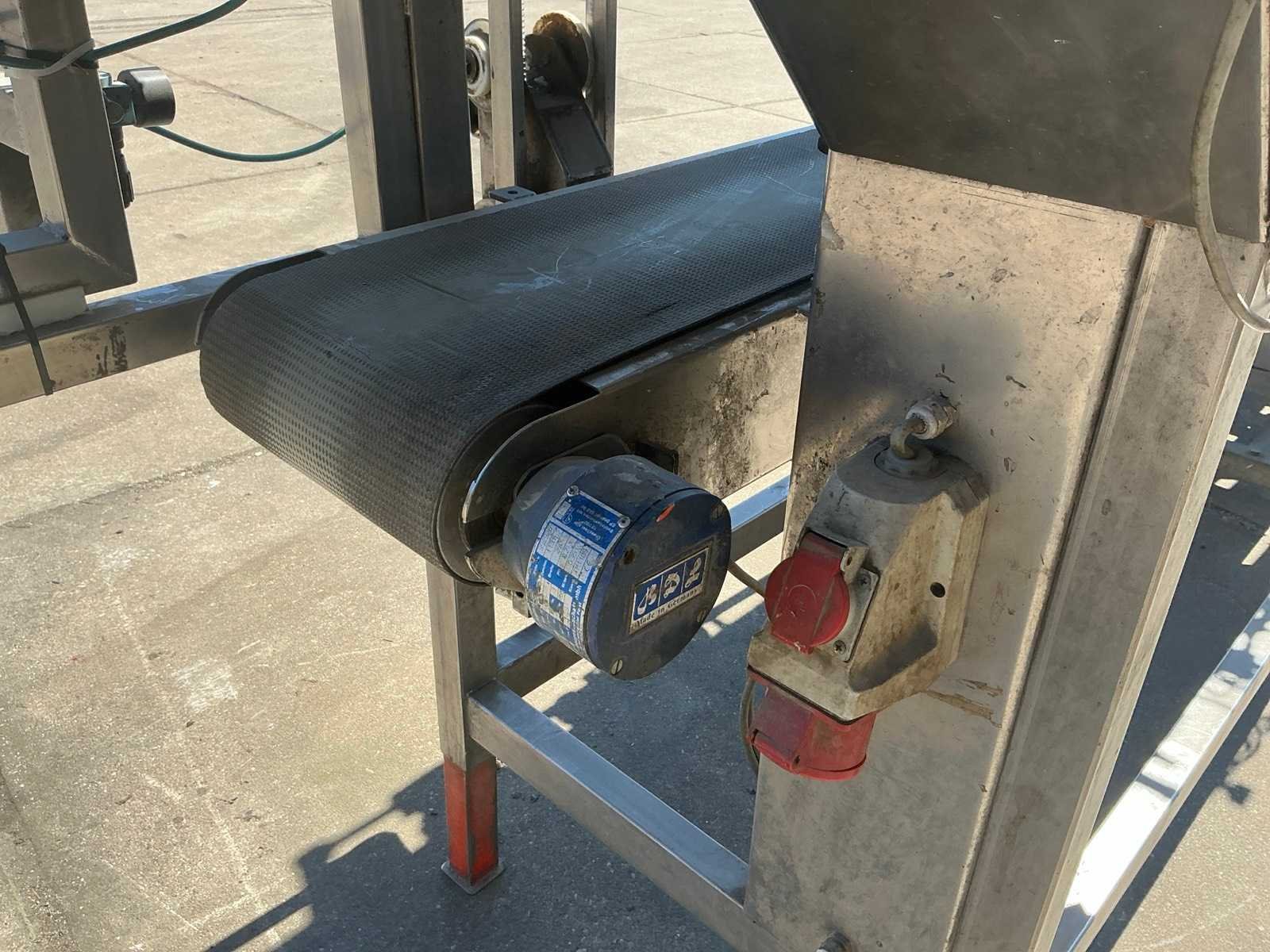 RVS, breedte band: 250mm. Merk: Gillenkirch Serienummer: 673/00 Totale afmeting L: 3500mm Totale afmeting Breedte: 850mm Totale afmeting Hoogte: 1800mm
