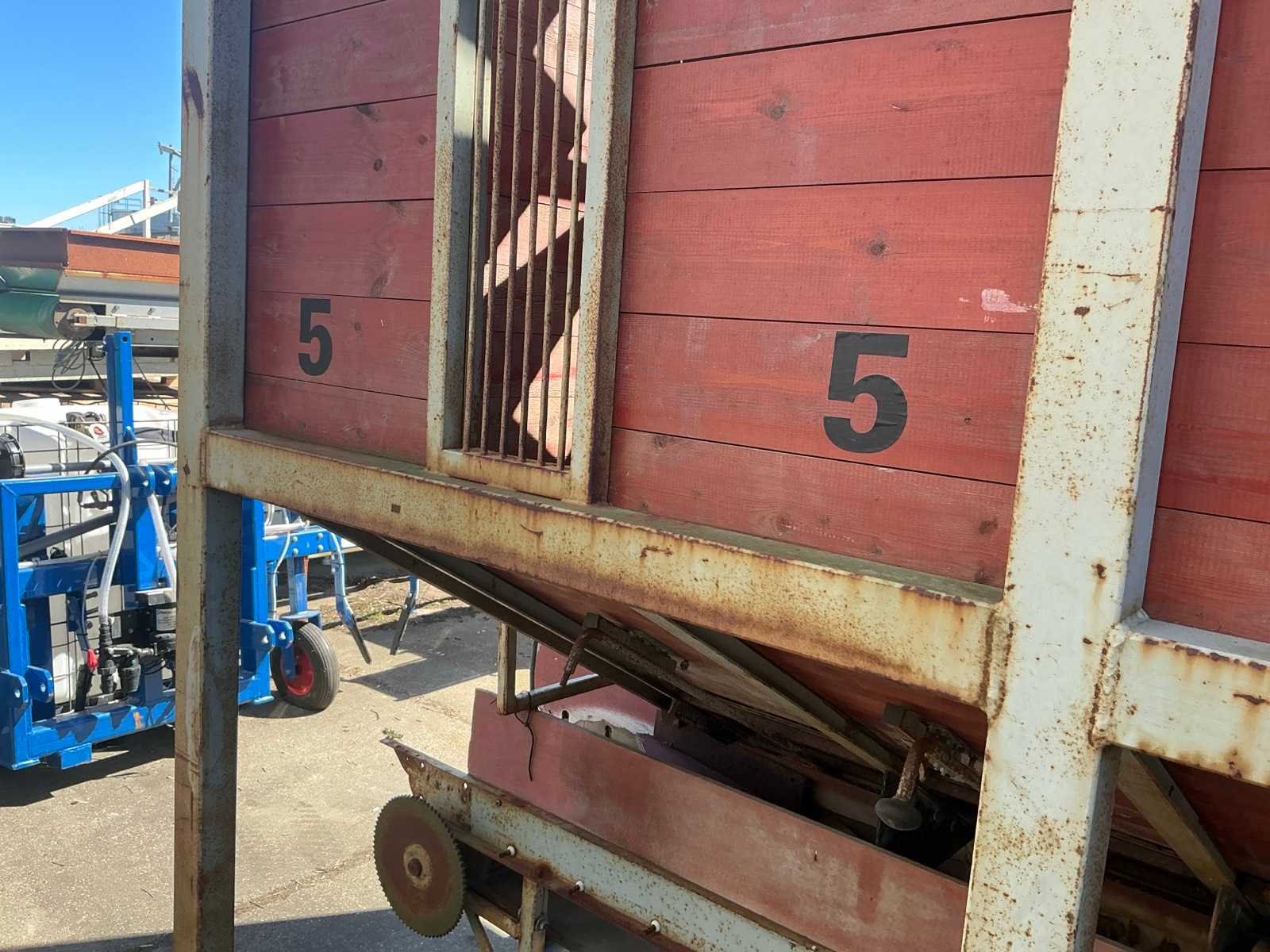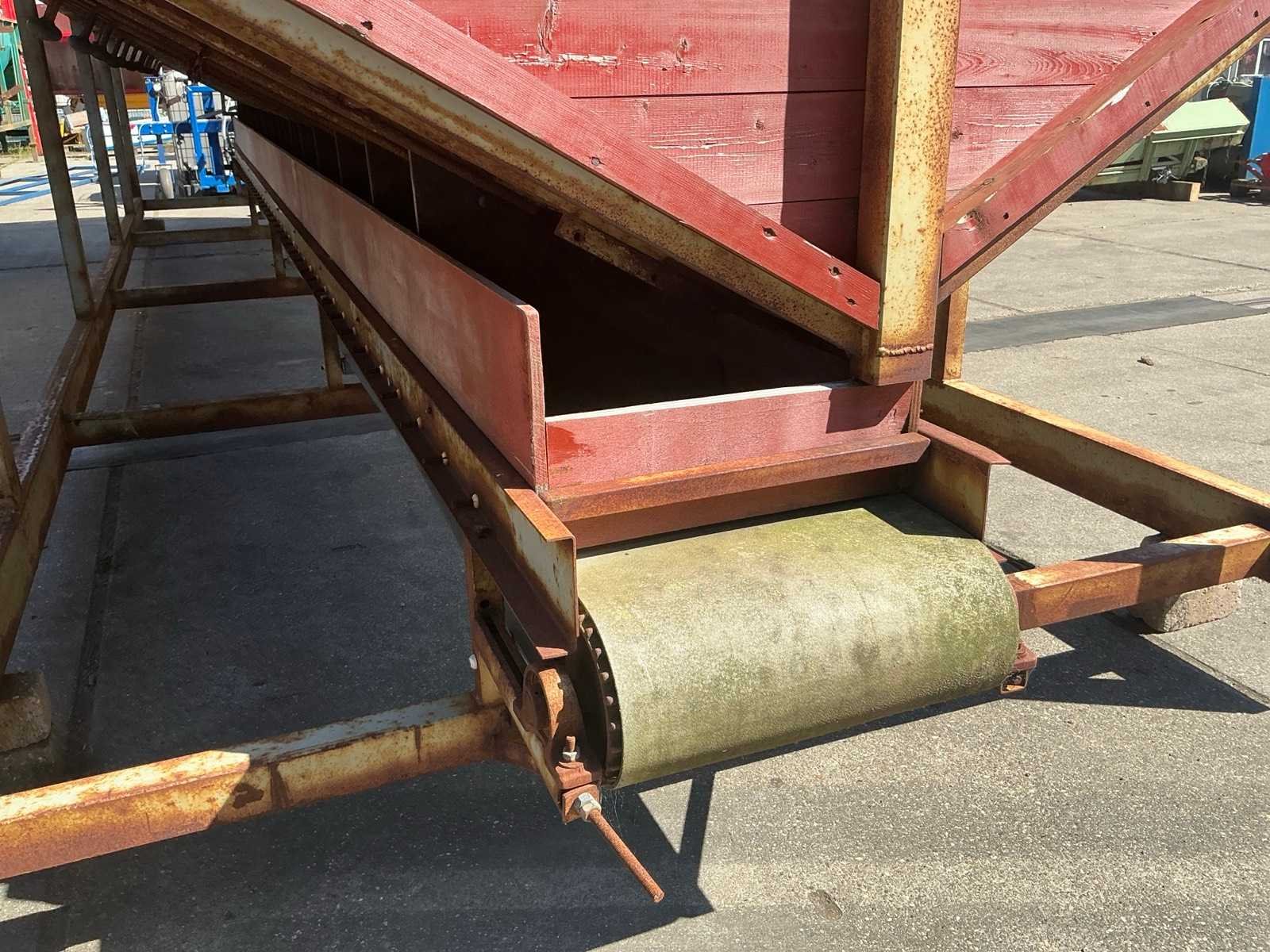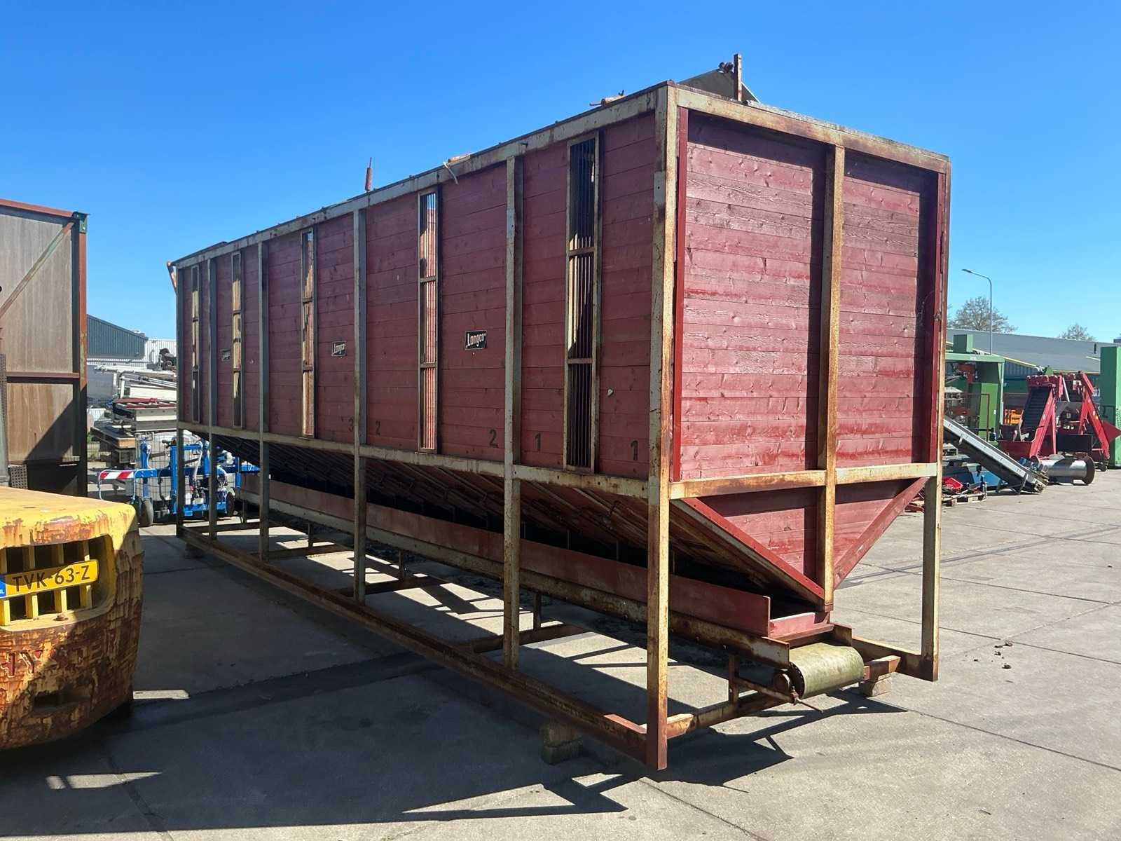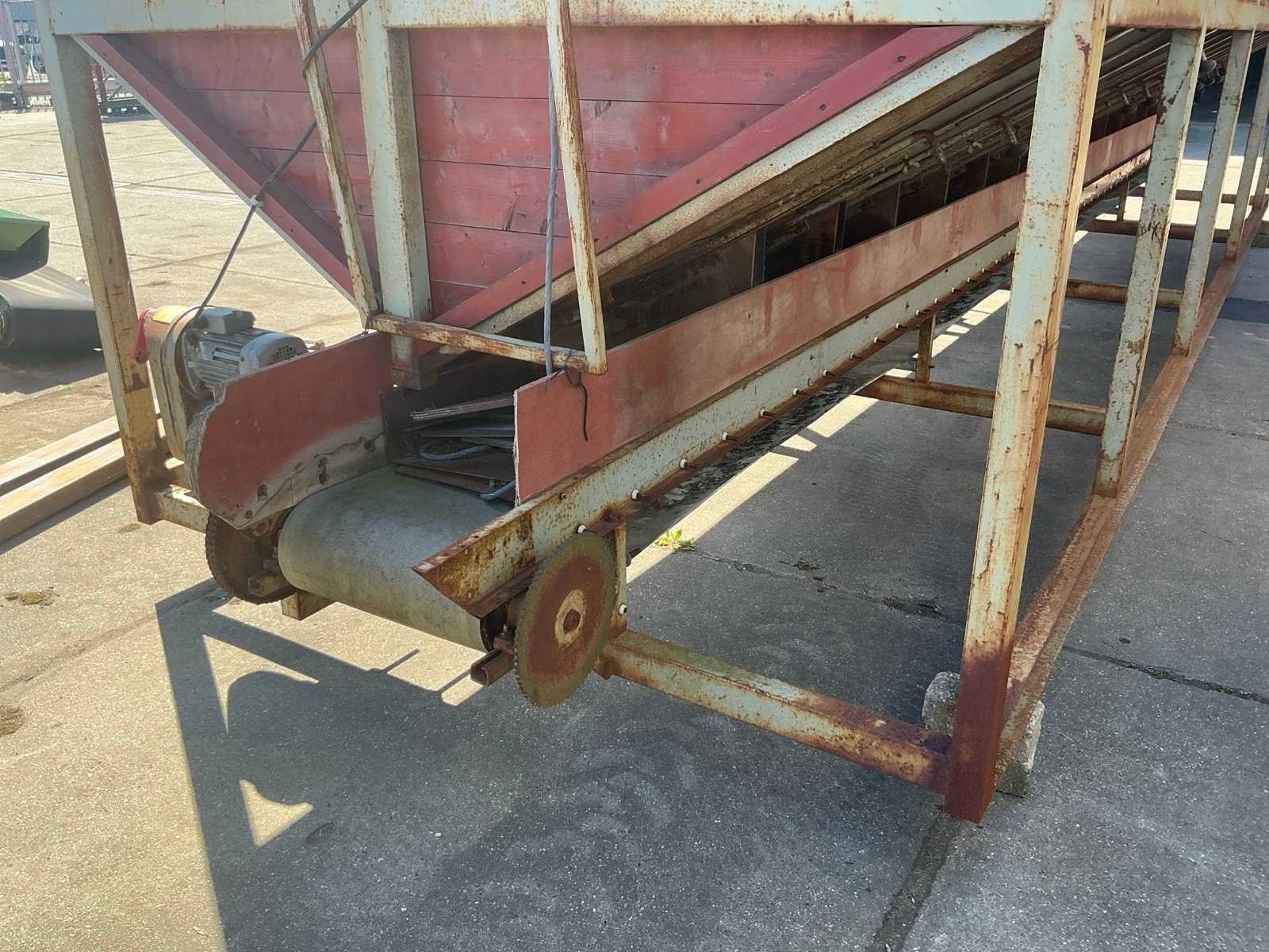 Voorzien van 5 vakken voorzien van valbreker torens, met 15 schuiven met transportband, band lengte 8800mm. Bunker 8000mm lang. Merk: Langco Totale afmeting L: 8800mm Totale afmeting Breedte: 2300mm Totale afmeting Hoogte: 3140mm