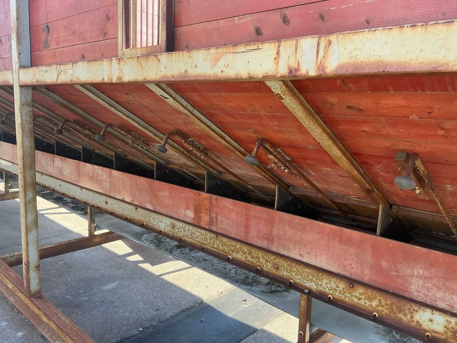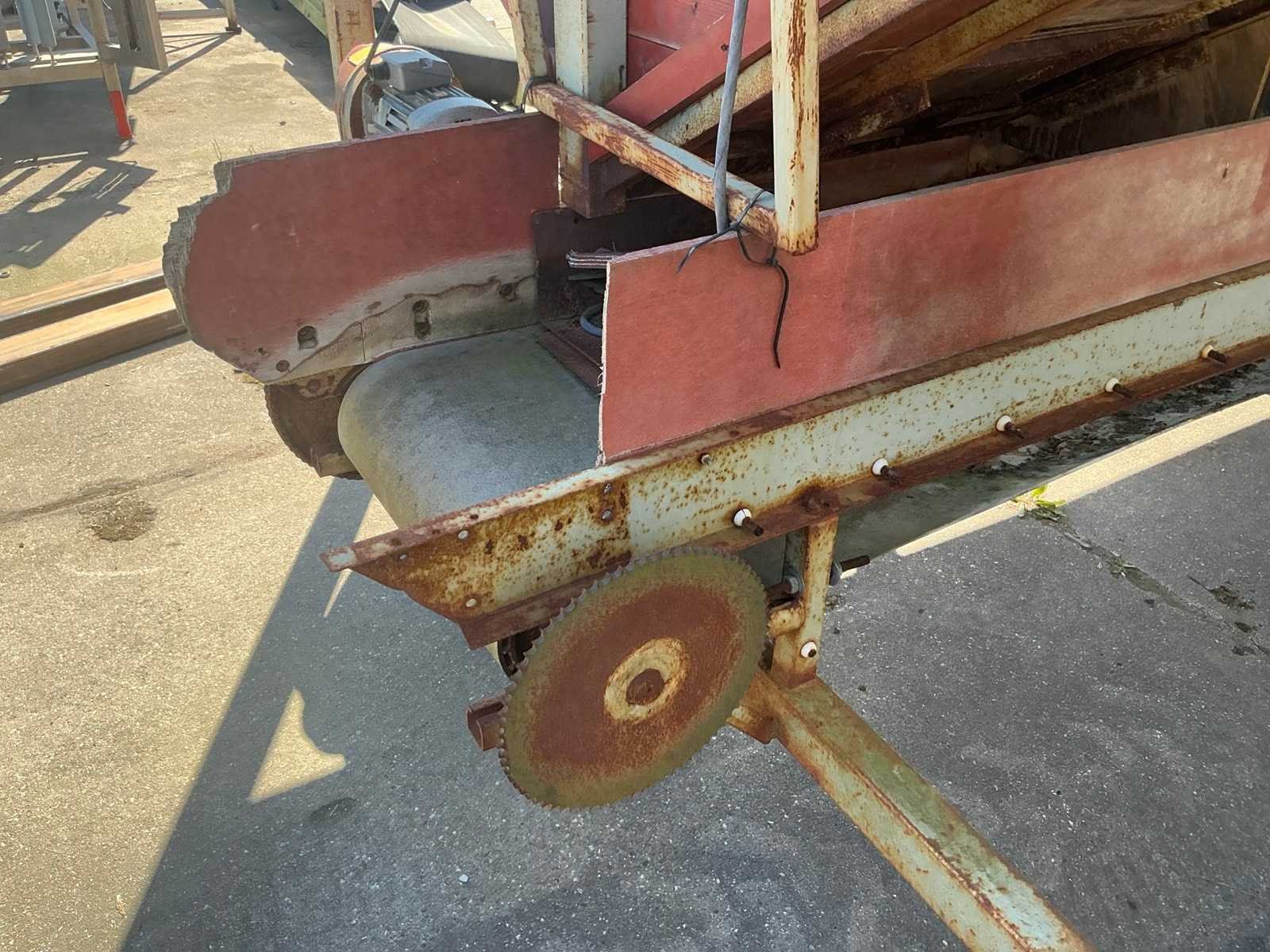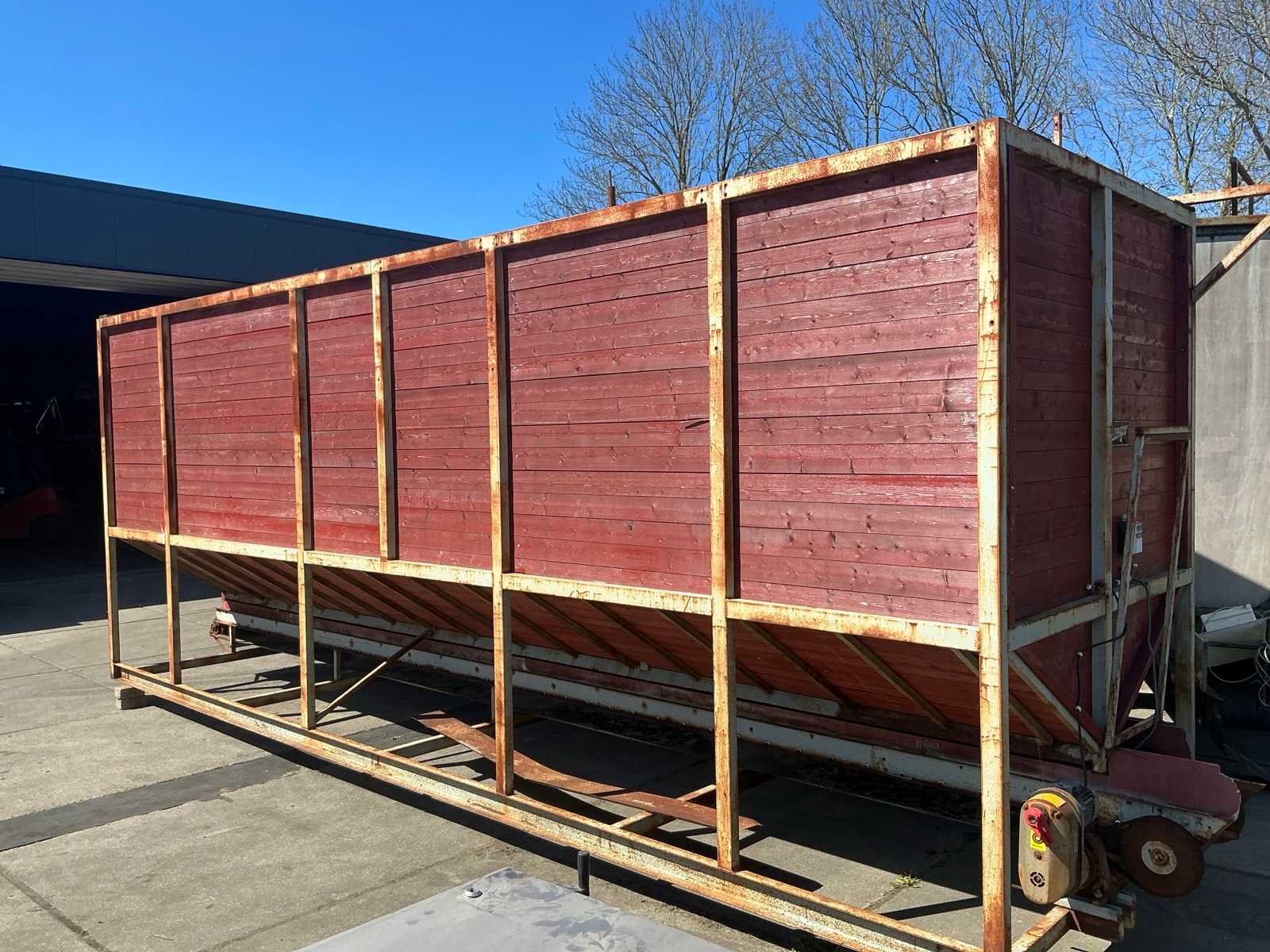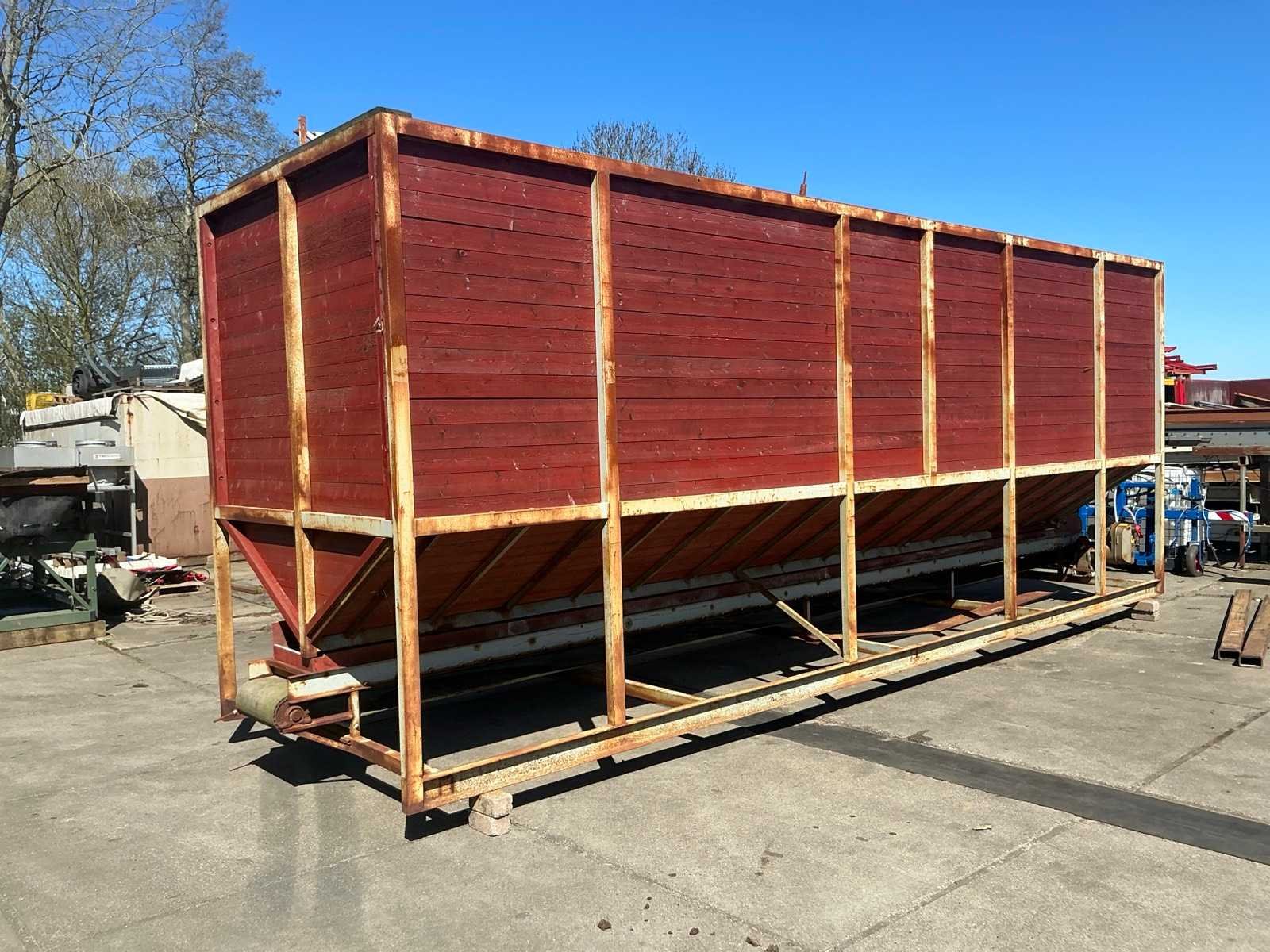 Voorzien van 5 vakken voorzien van valbreker torens, met 15 schuiven met transportband, band lengte 8800mm. Bunker 8000mm lang. Merk: Langco Totale afmeting L: 8800mm Totale afmeting Breedte: 2300mm Totale afmeting Hoogte: 3140mm