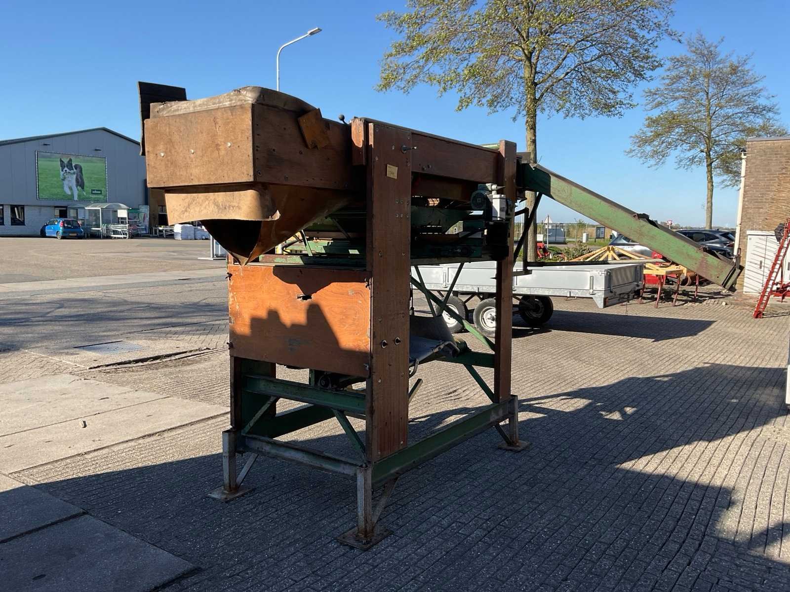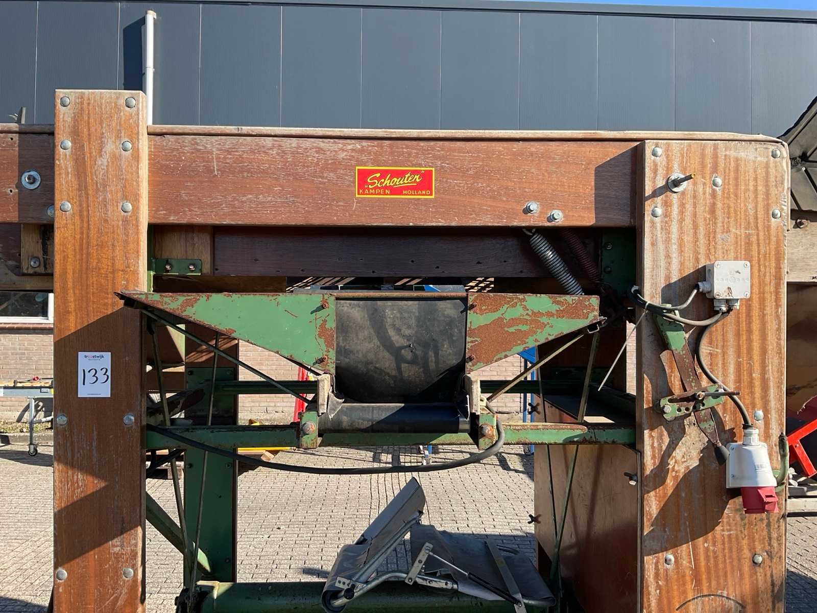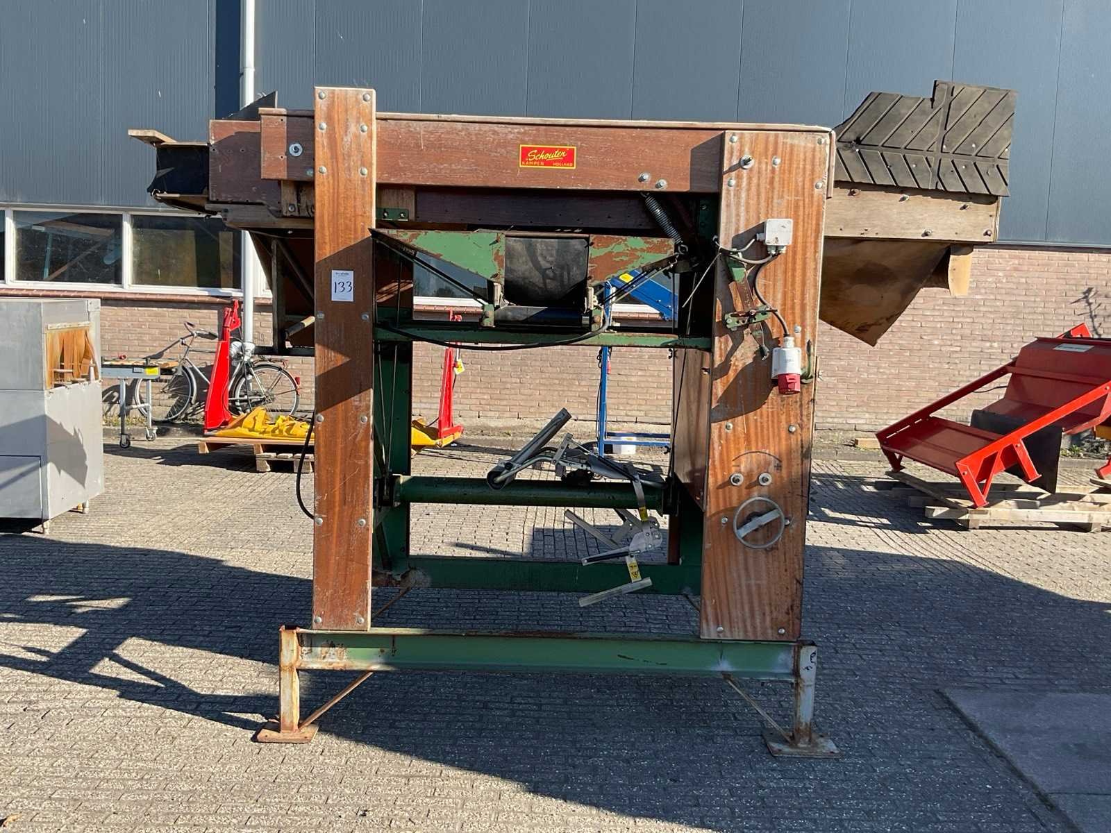 2-plaats; 800x1000 mm; v.v. dwarsgelegen transportband; band afm. ca. 1500x300 mm; met valbreker; 380V Merk: Schouten Totale afmeting L: 3000mm Totale afmeting Breedte: 2800mm Totale afmeting Hoogte: 2300mm