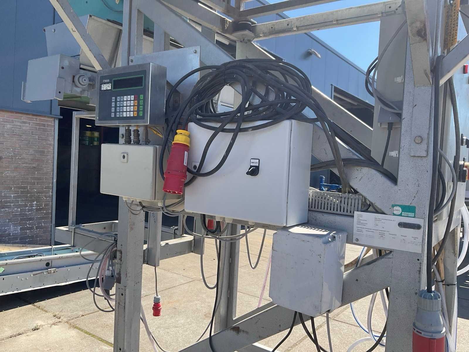 Aardappelen 25-100 mm; cap. 10-20 kg; 20-50 kg; v.v. “Systec” digitale uitlezing; type IT9000 Merk: Pro-Pak Type: EW2000TP Bouwjaar: 1997 Aansluiting: 400V Totale afmeting L: 2500mm Totale afmeting Breedte: 2000mm Totale afmeting Hoogte: 4000mm