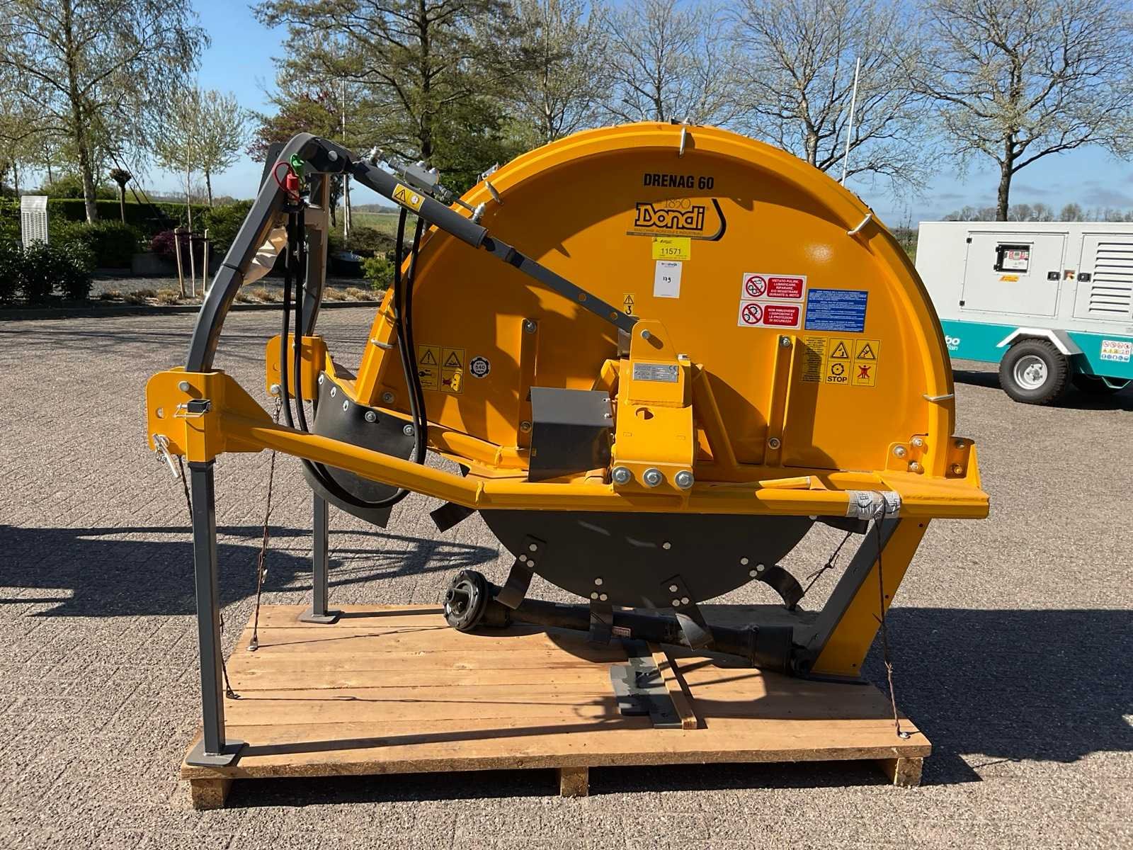 Aftakas toerental 540 RPM; v.v. driepunt aansluiting; incl. aftakas Merk: Dondi Type: Drenag 60 Bouwjaar: 2018 Serienummer: 0968 Werkbreedte: 140mm Werkdiepte: 600mm Eigen gewicht: 510kg Totale afmeting L: 2300mm Totale afmeting Breedte: 1300mm Totale afmeting Hoogte: 1700mm