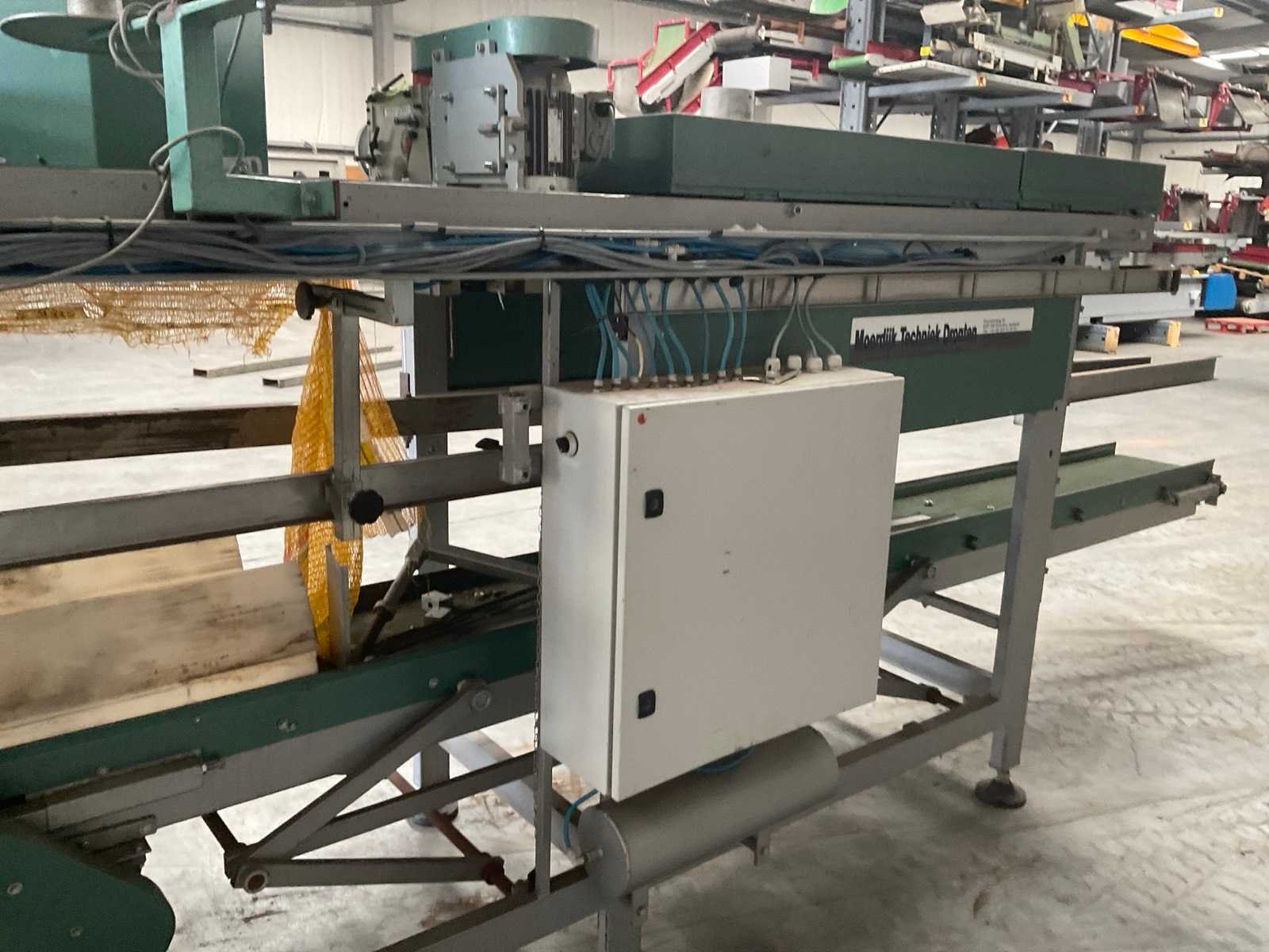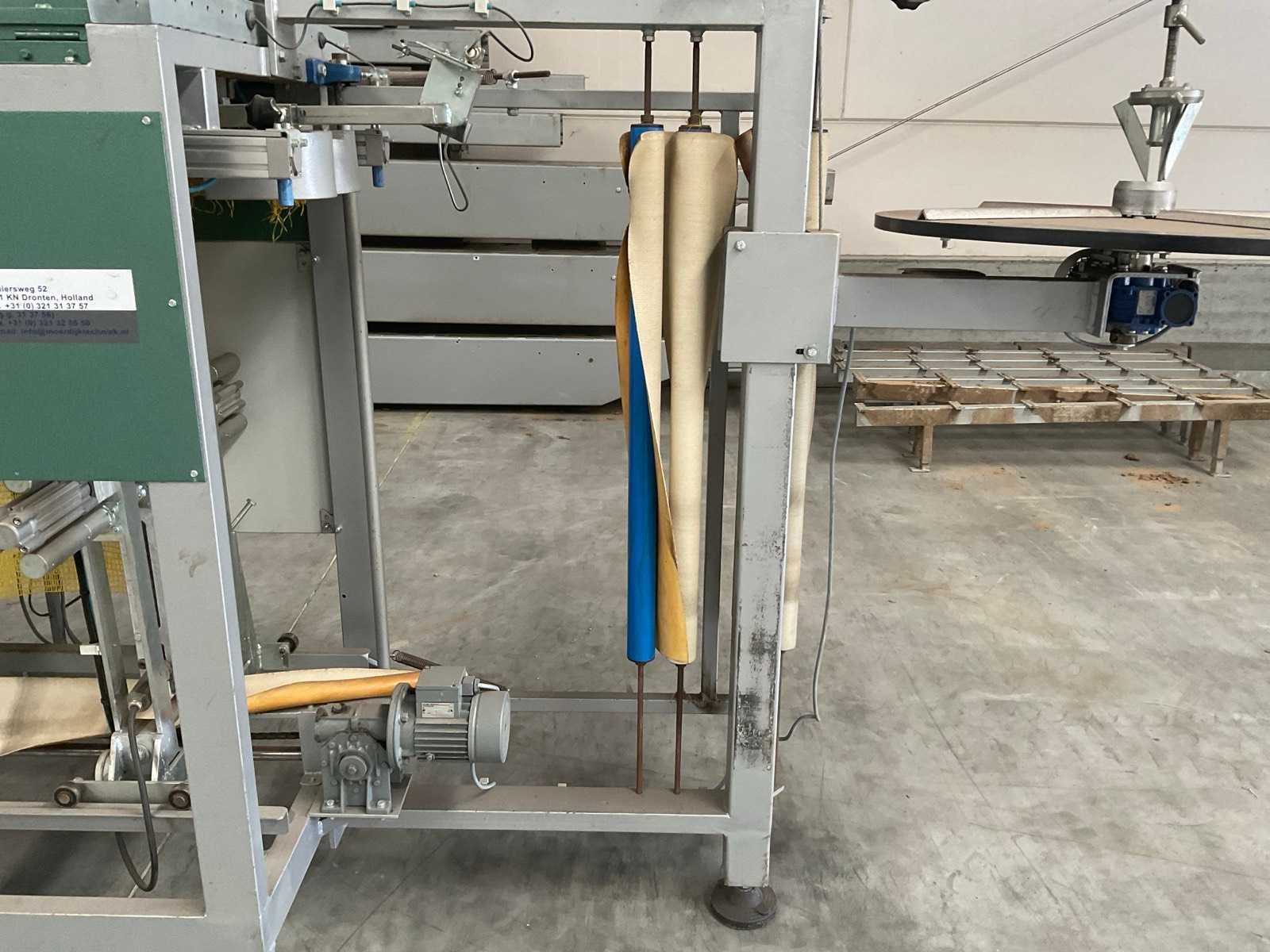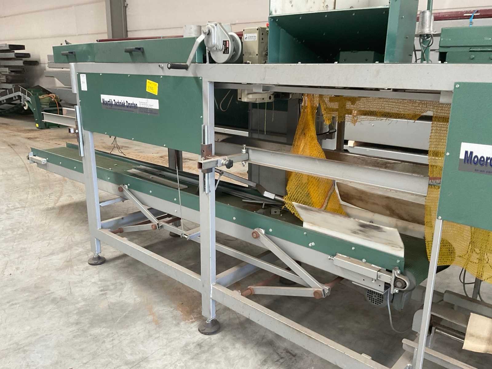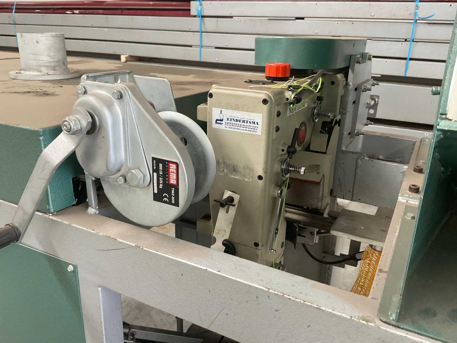 Netverpakkingsmachine; v.v. “New Long” industriële naaikop; type DS-9P; bandlengte ca. 3500 mm; bandbreedte ca. 325 mm; v.v. beweegbare vulopening Merk: Pro-Pak Type: BSM-1 Aansluiting: 400V Totale afmeting L: 6500mm Totale afmeting Breedte: 1300mm Totale afmeting Hoogte: 2100mm