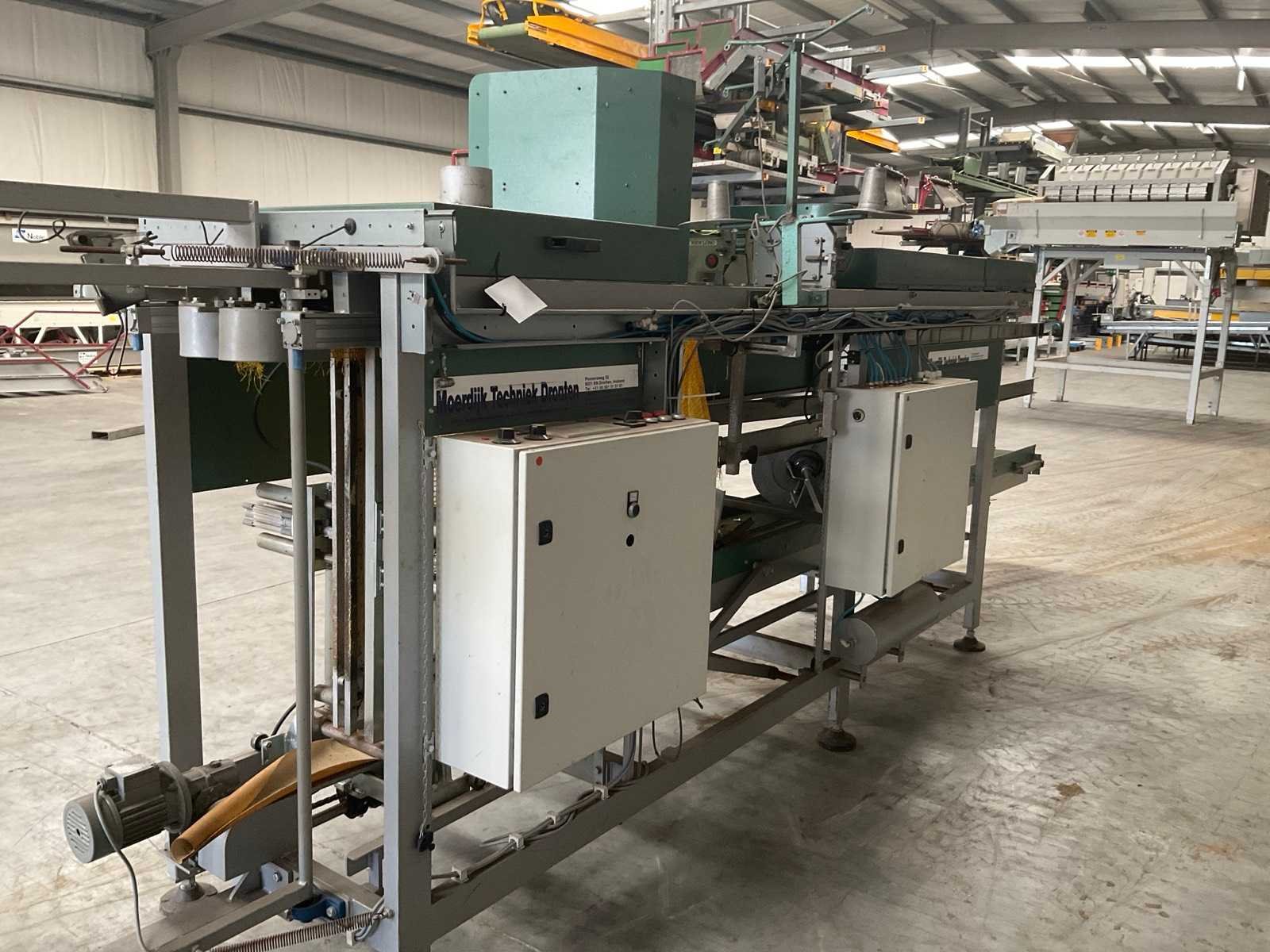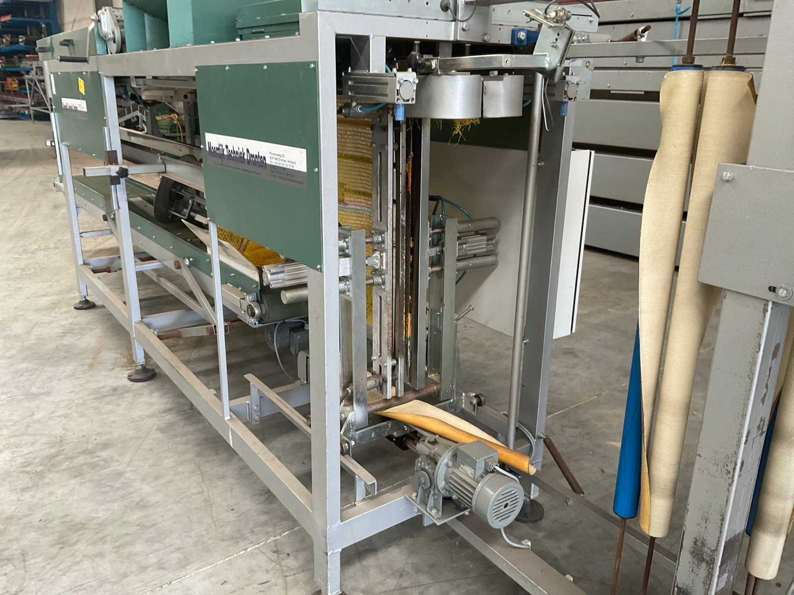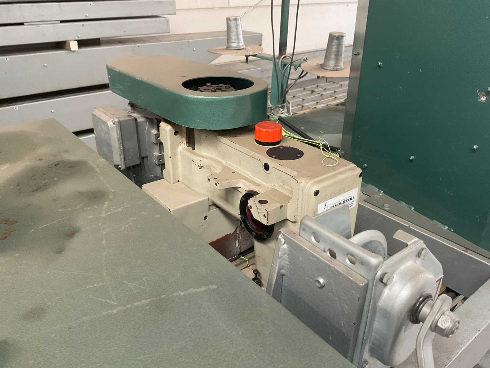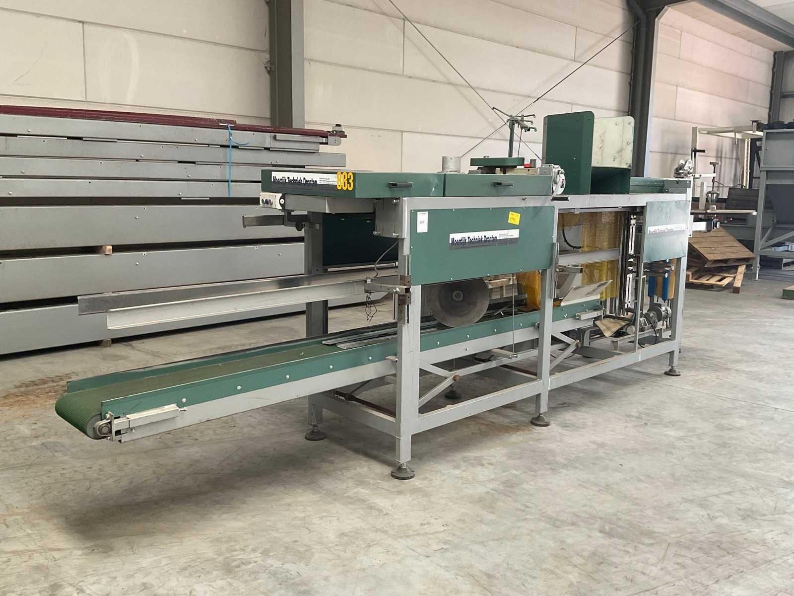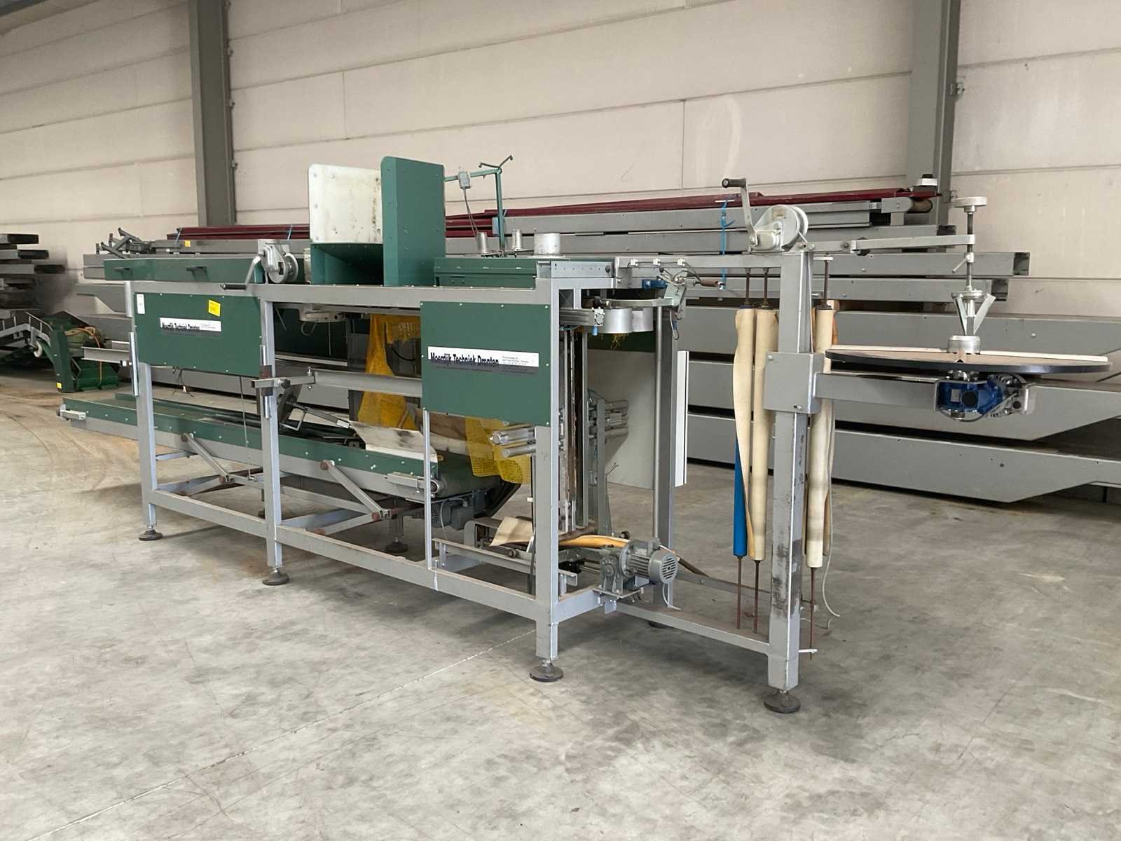 Netverpakkingsmachine; v.v. “New Long” industriële naaikop; type DS-9P; bandlengte ca. 3500 mm; bandbreedte ca. 325 mm; v.v. beweegbare vulopening Merk: Pro-Pak Type: BSM-1 Aansluiting: 400V Totale afmeting L: 6500mm Totale afmeting Breedte: 1300mm Totale afmeting Hoogte: 2100mm